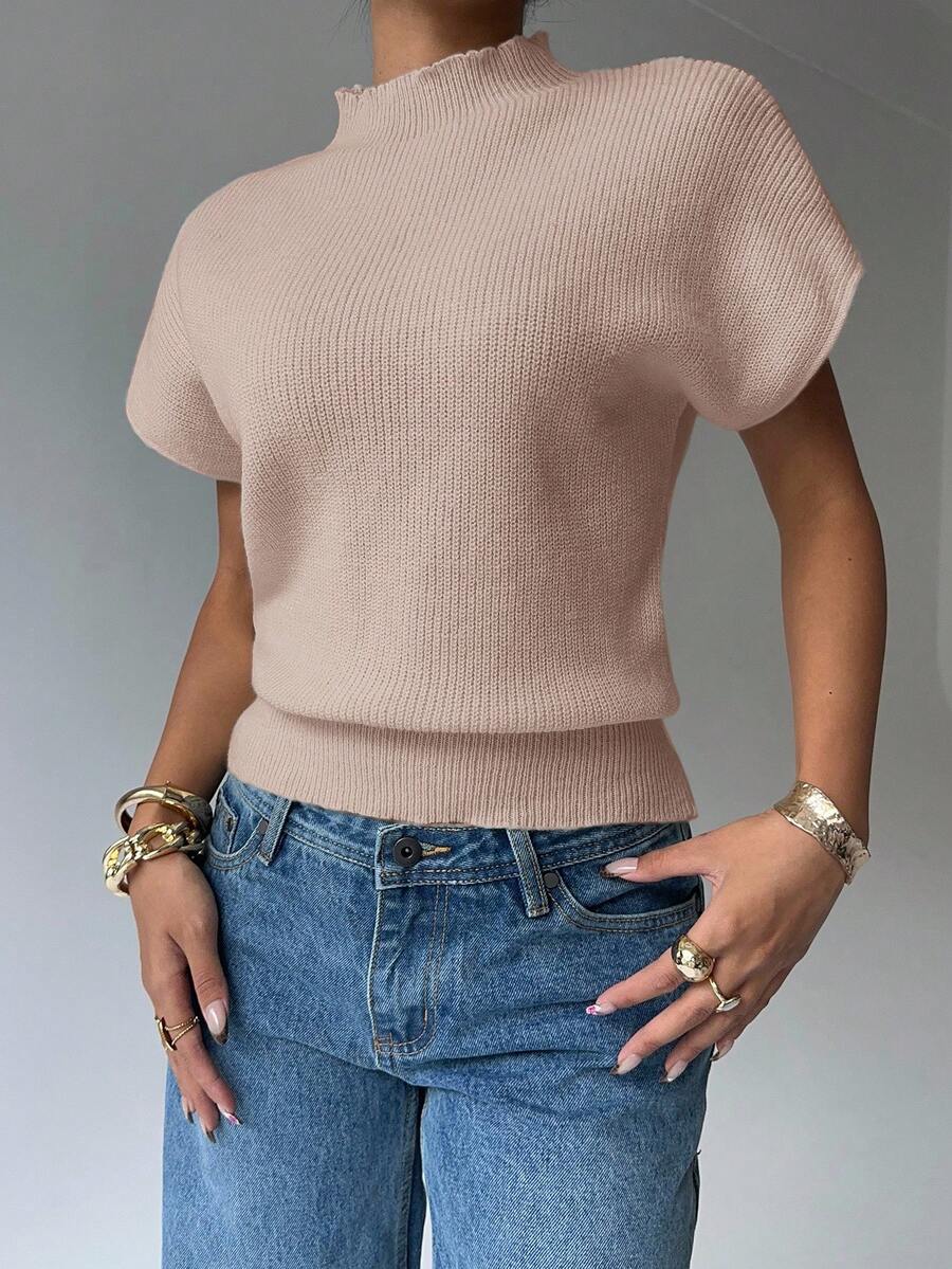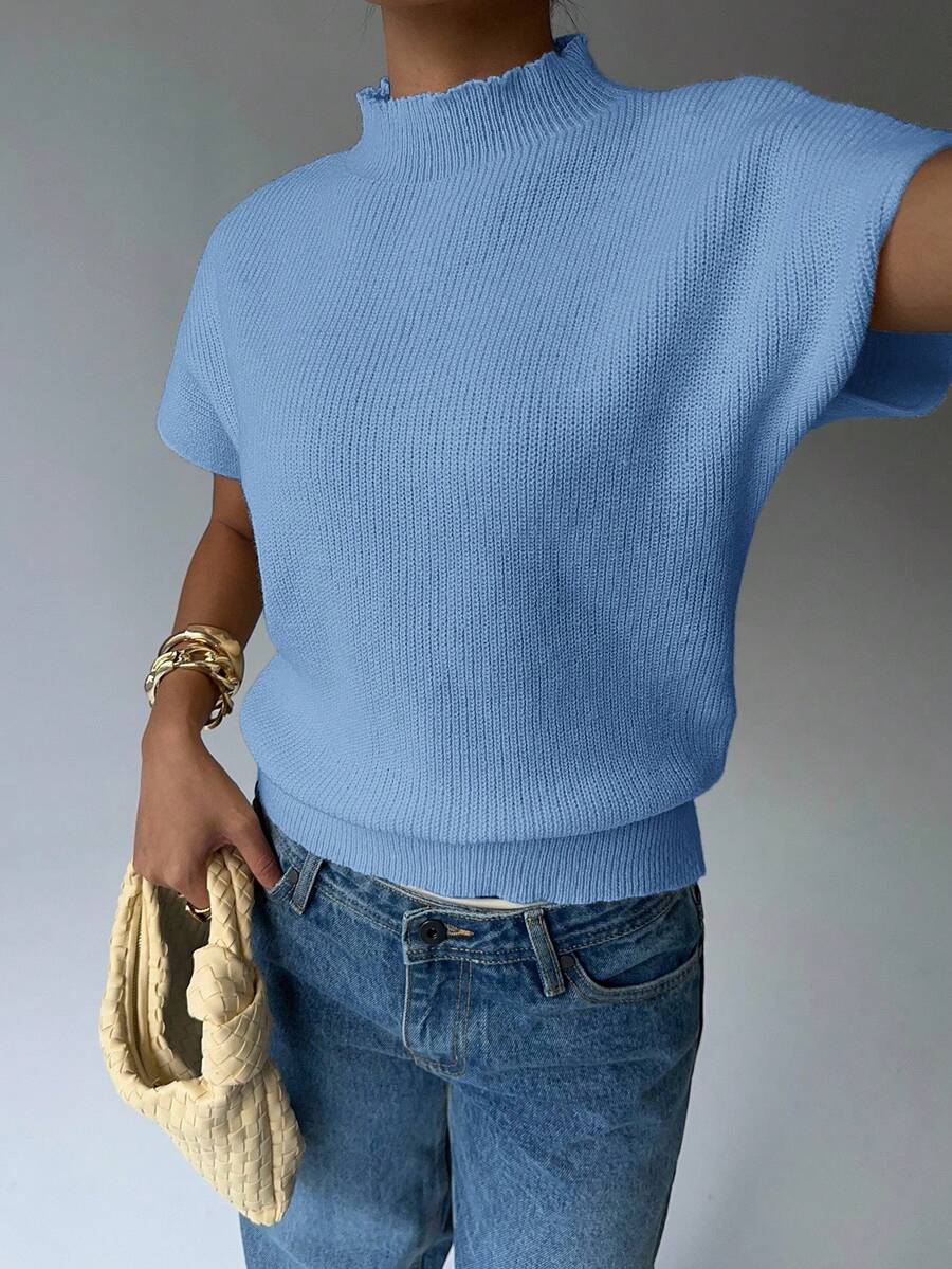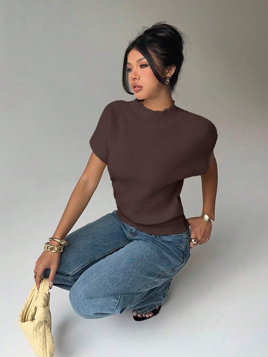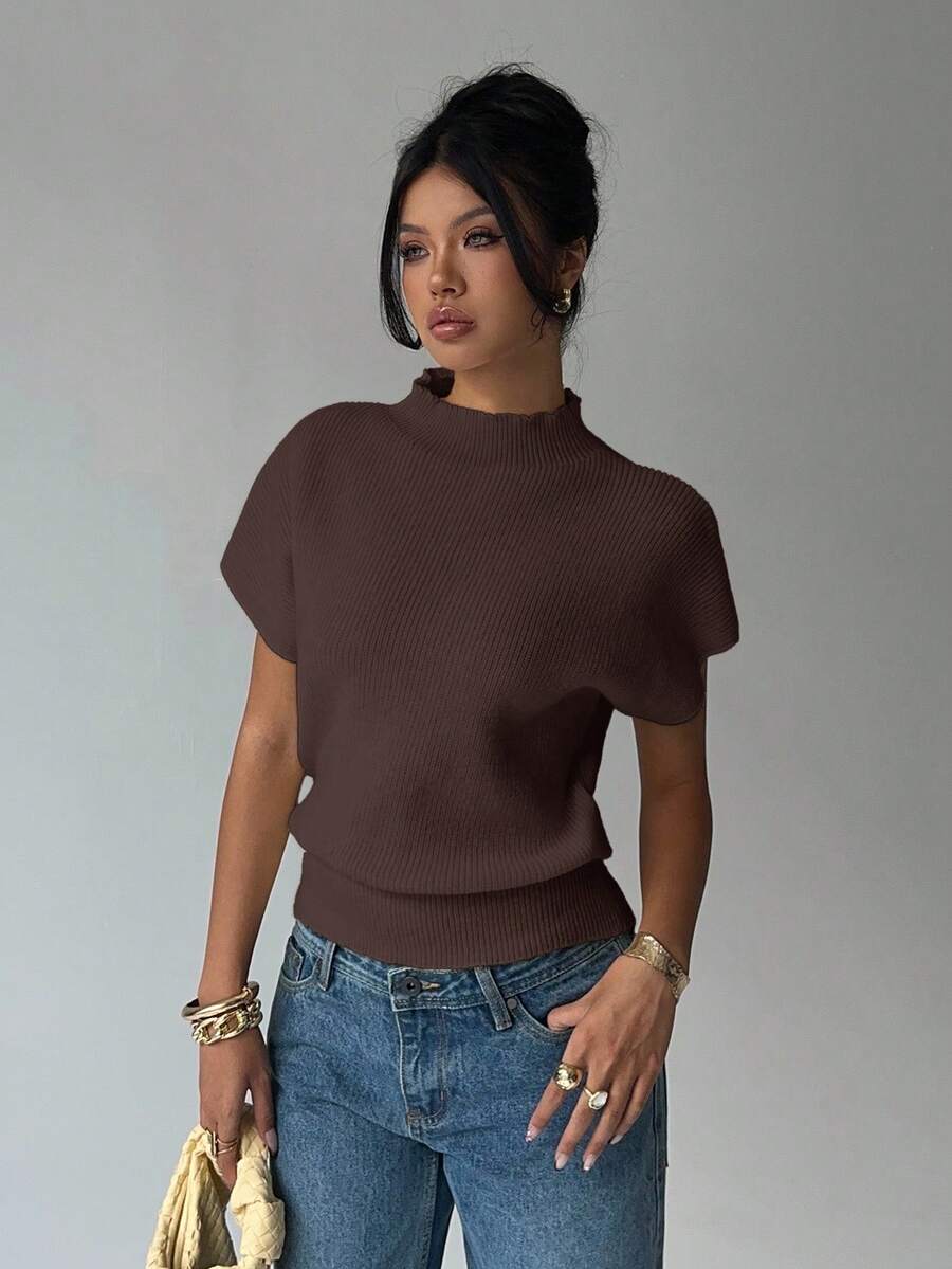 Aloruh Women's Fashion Casual Basic Crew Neck Short Sleeve Sweater,Fall