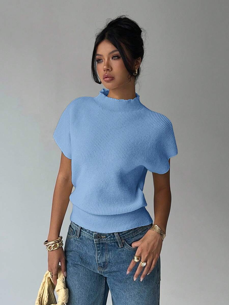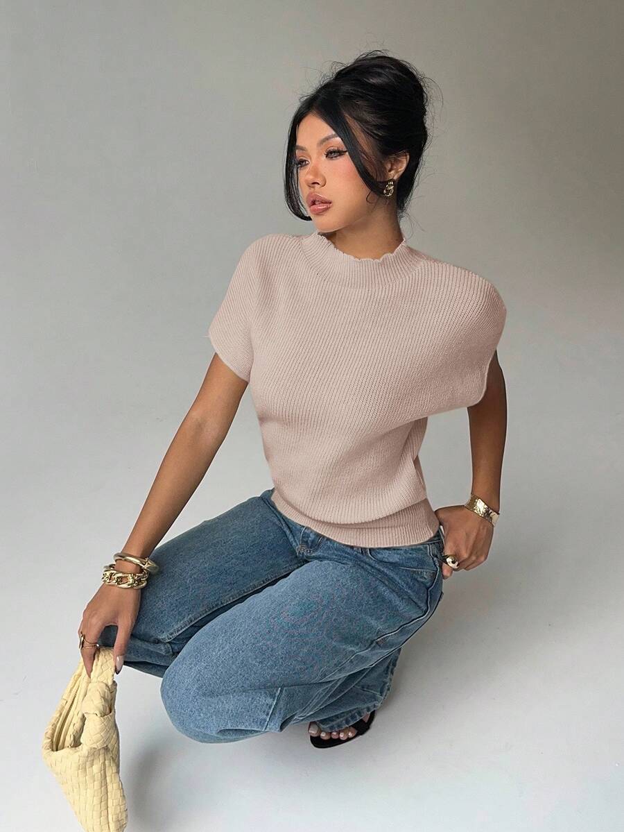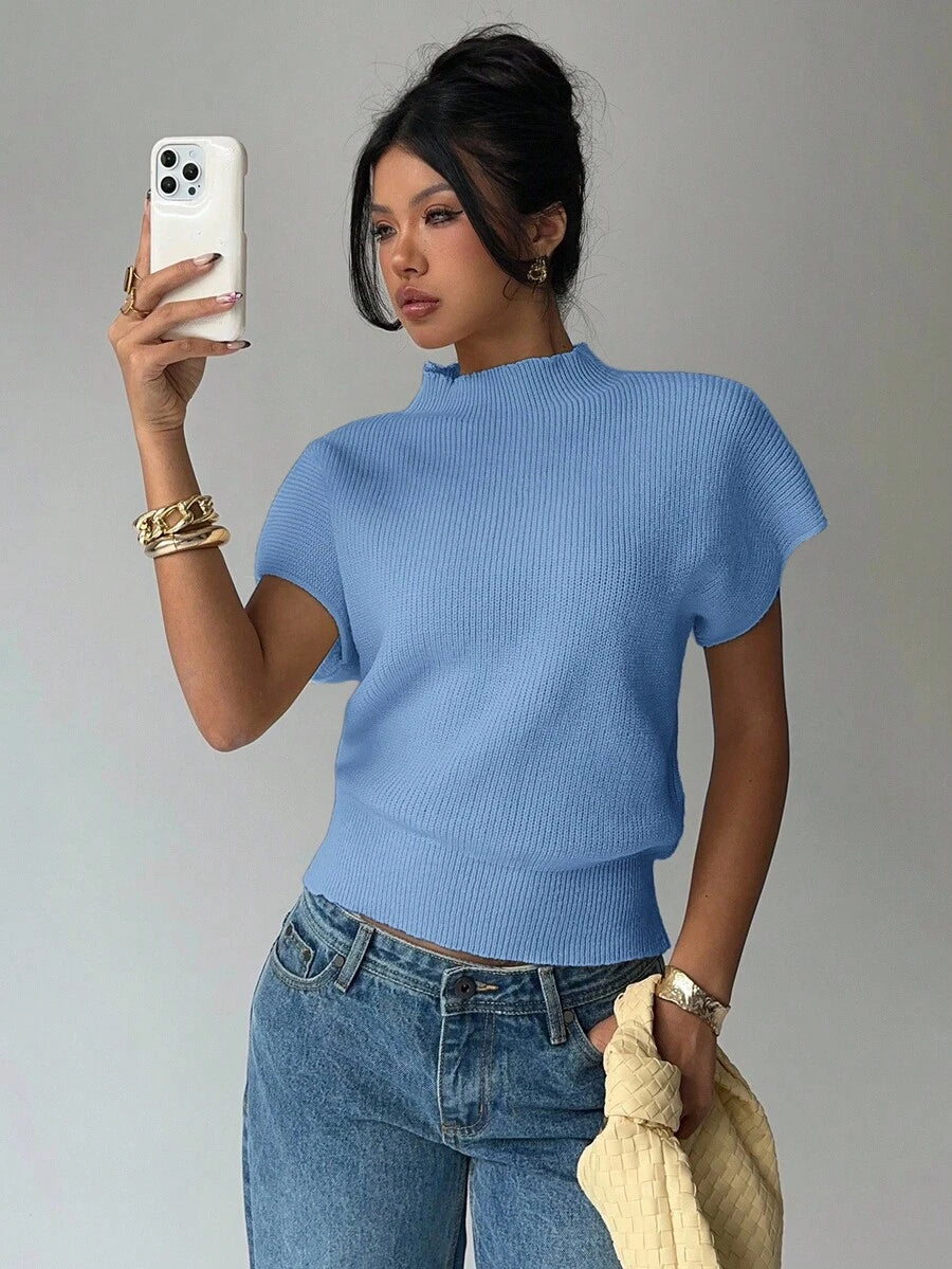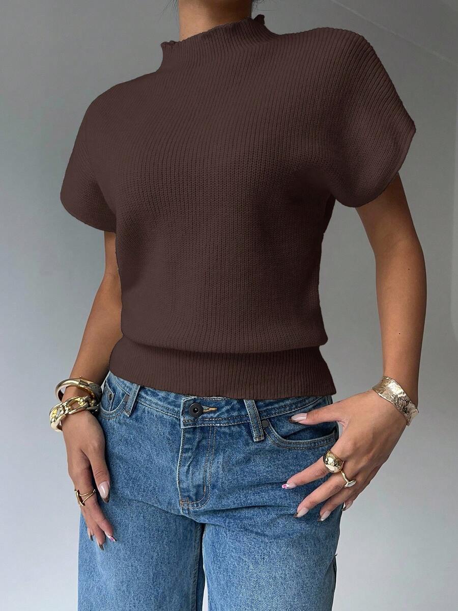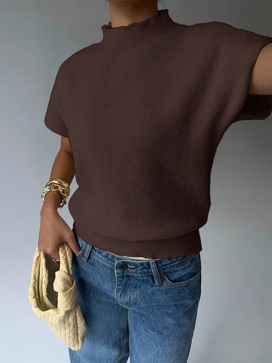 Aloruh Women's Fashion Casual Basic Crew Neck Short Sleeve Sweater,Fall