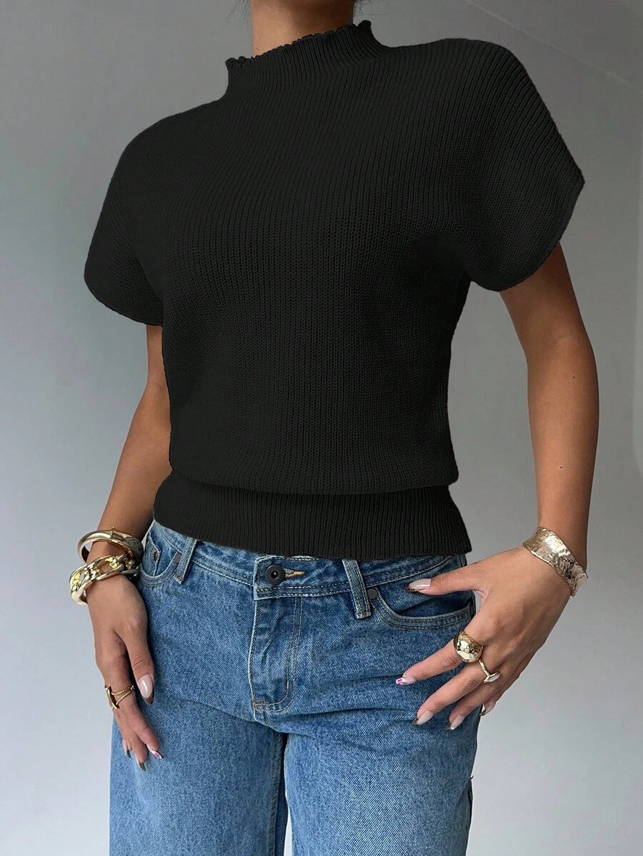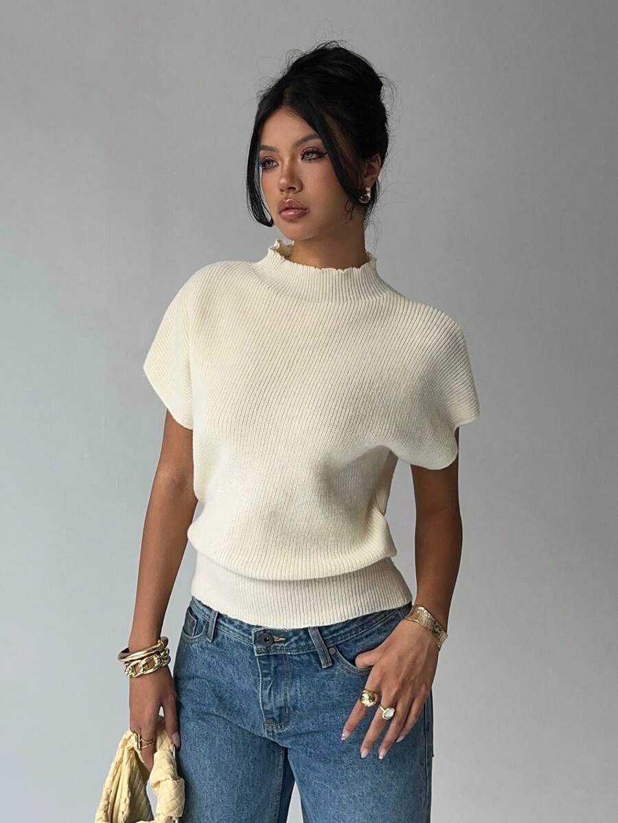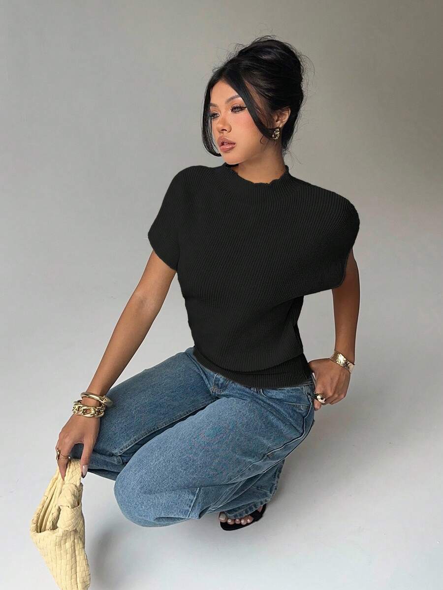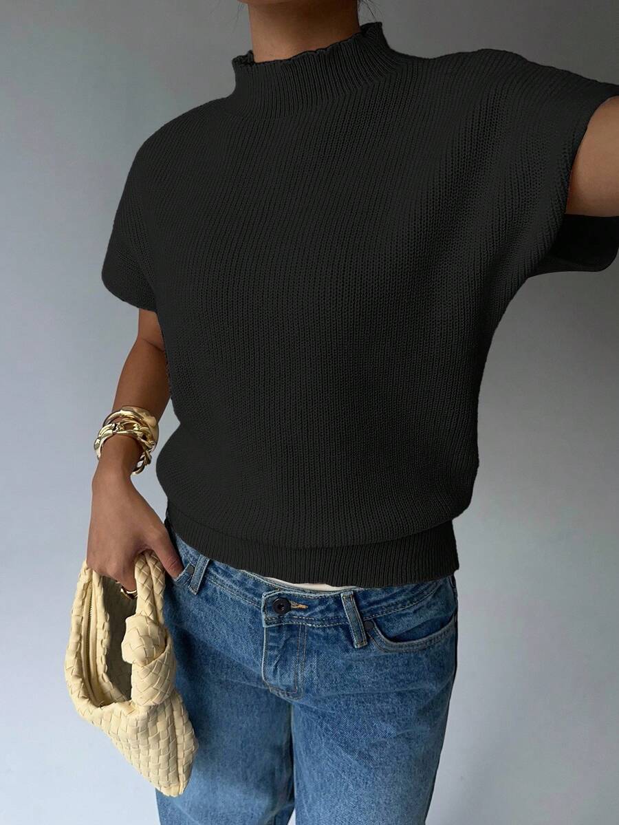 Aloruh Women's Fashion Casual Basic Crew Neck Short Sleeve Sweater,Fall