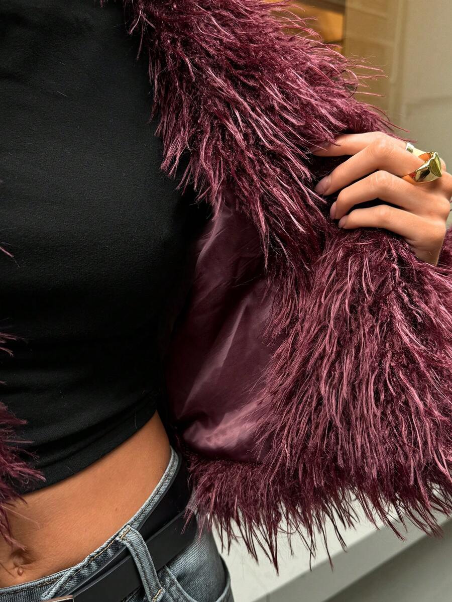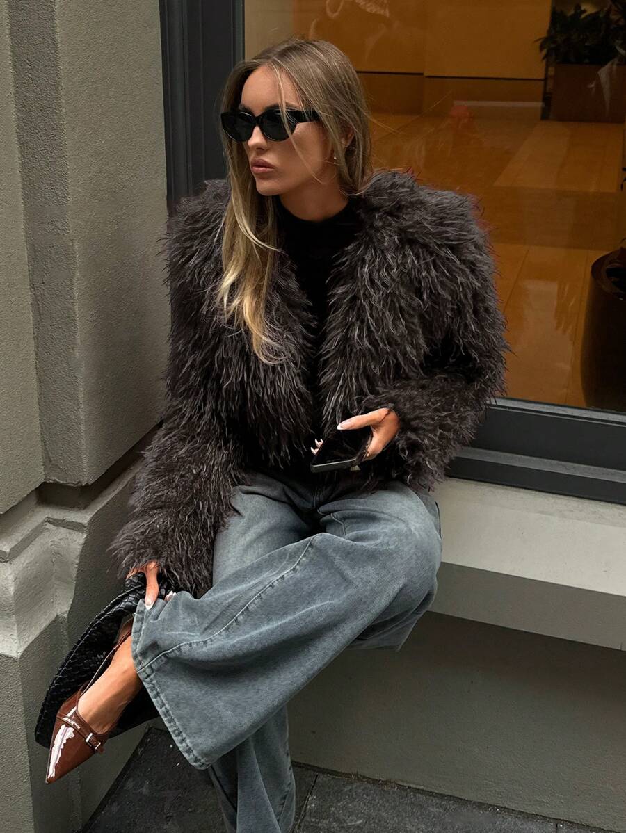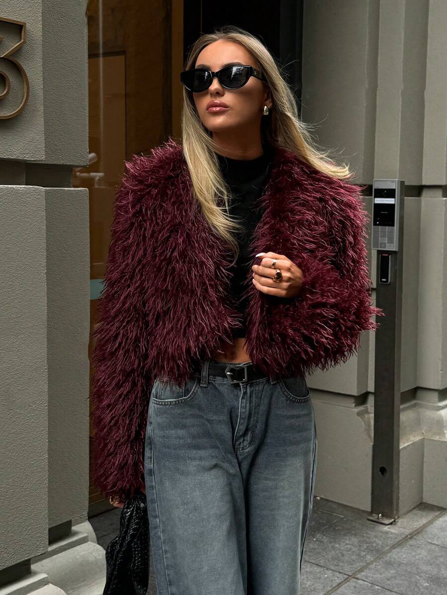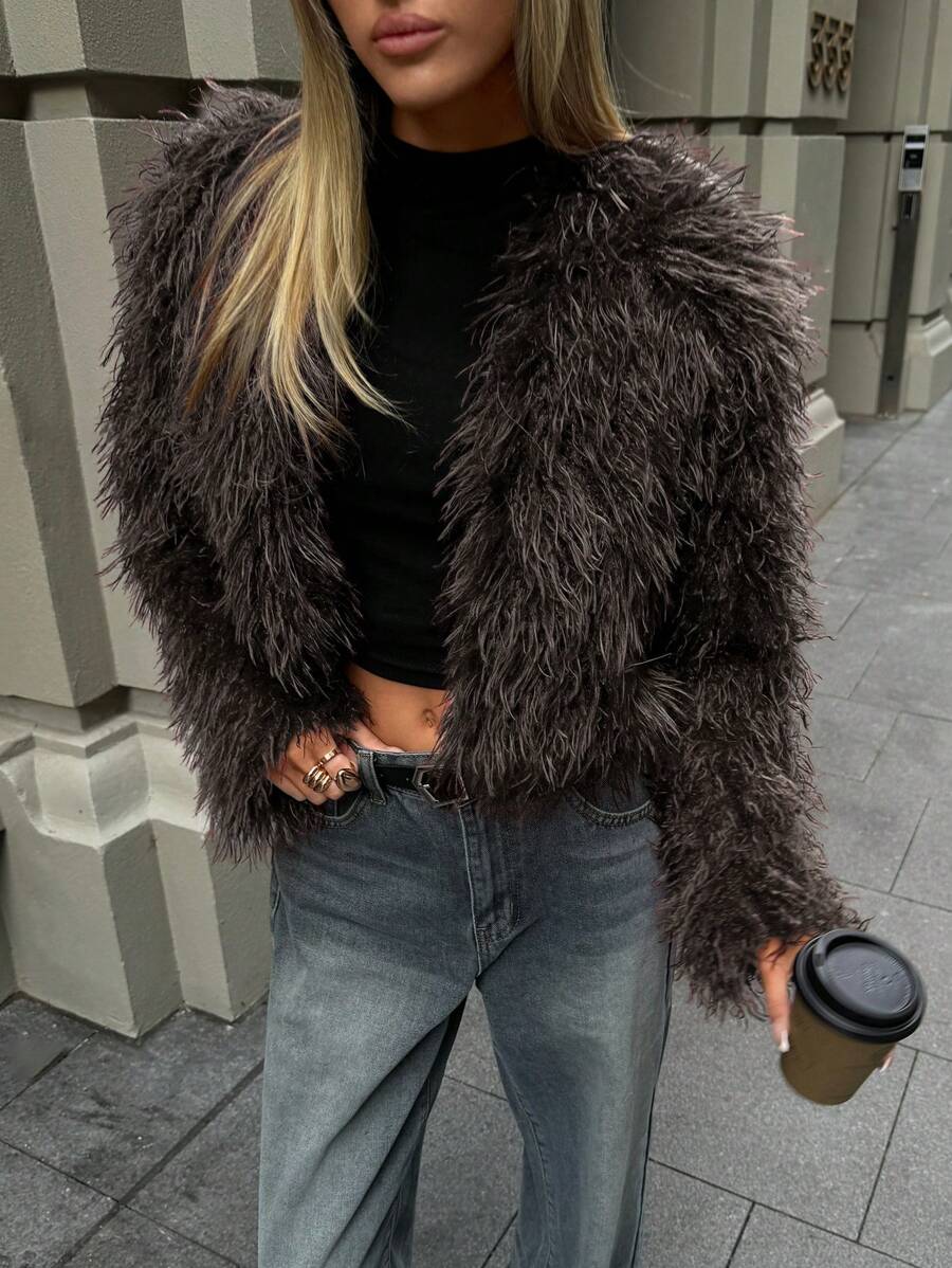 Aloruh moderna ženska kratka jakna od umjetnog krzna s dugim rukavima, dizajnirana u seksi i elegantnom stilu, idealna za jesen i zimu