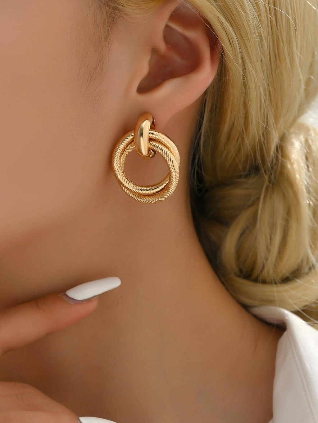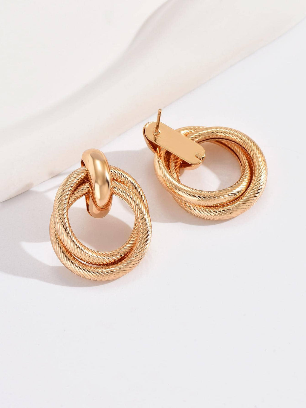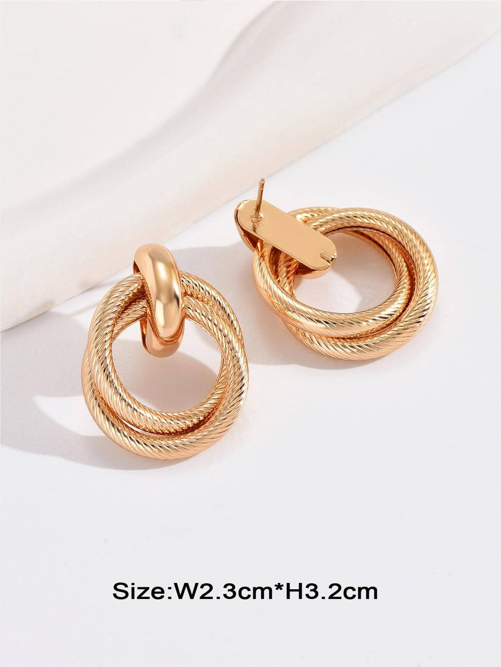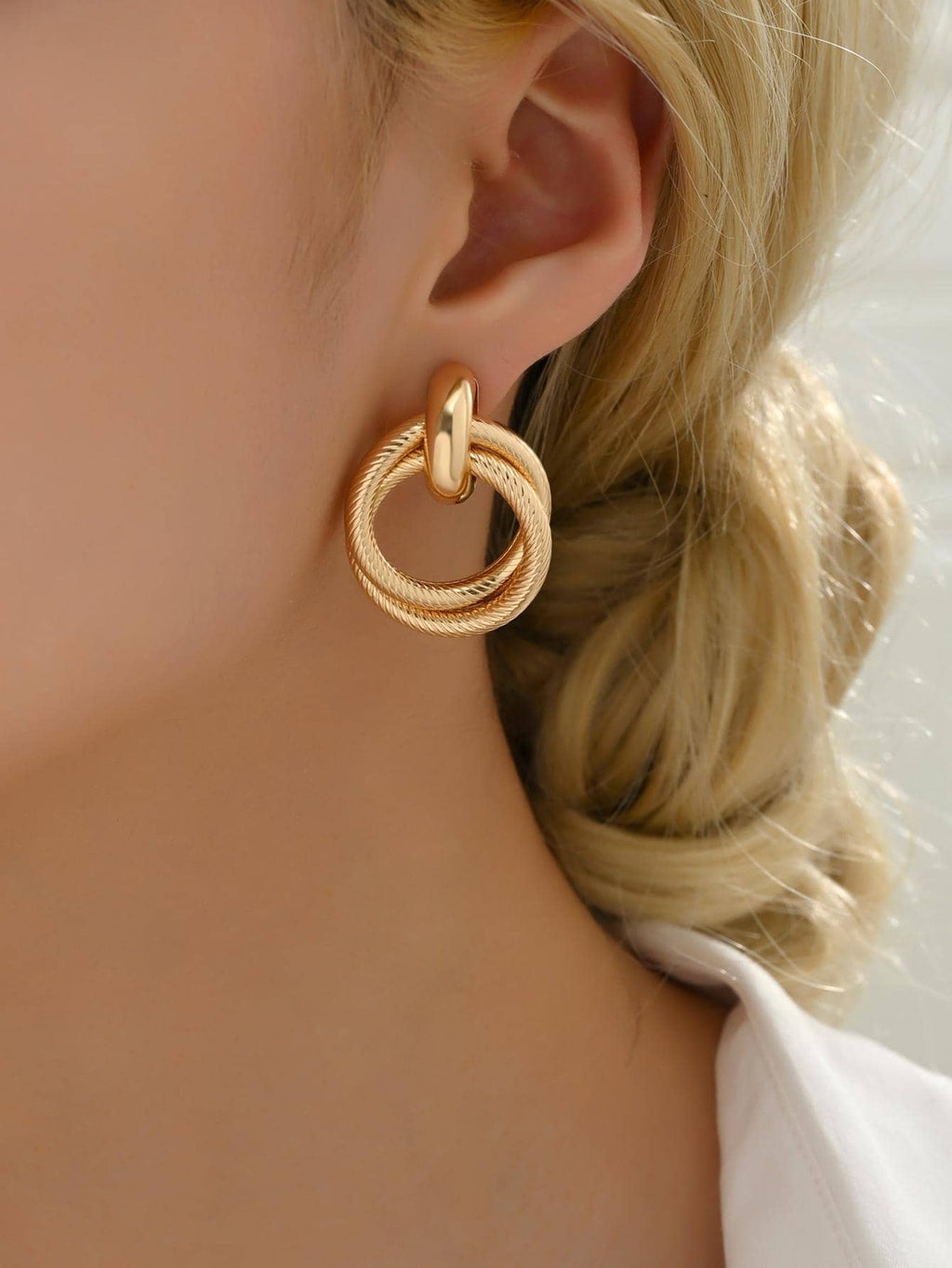 BELLAVOG 1pair Chunky Jewelry Thick Metal Double Circle Hoop Earrings, Twisted Alloy Texture