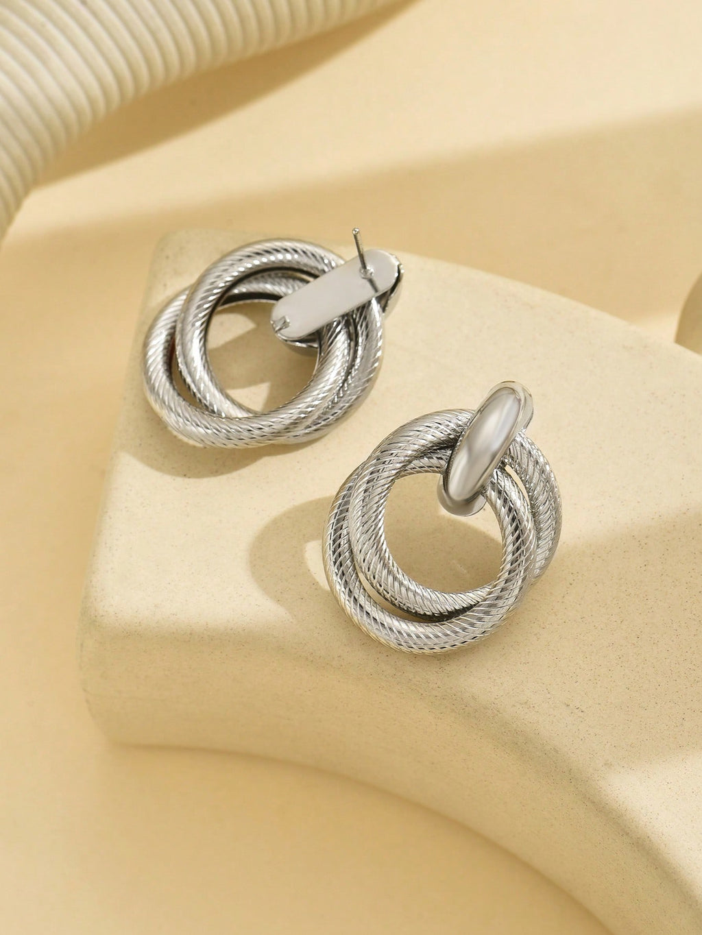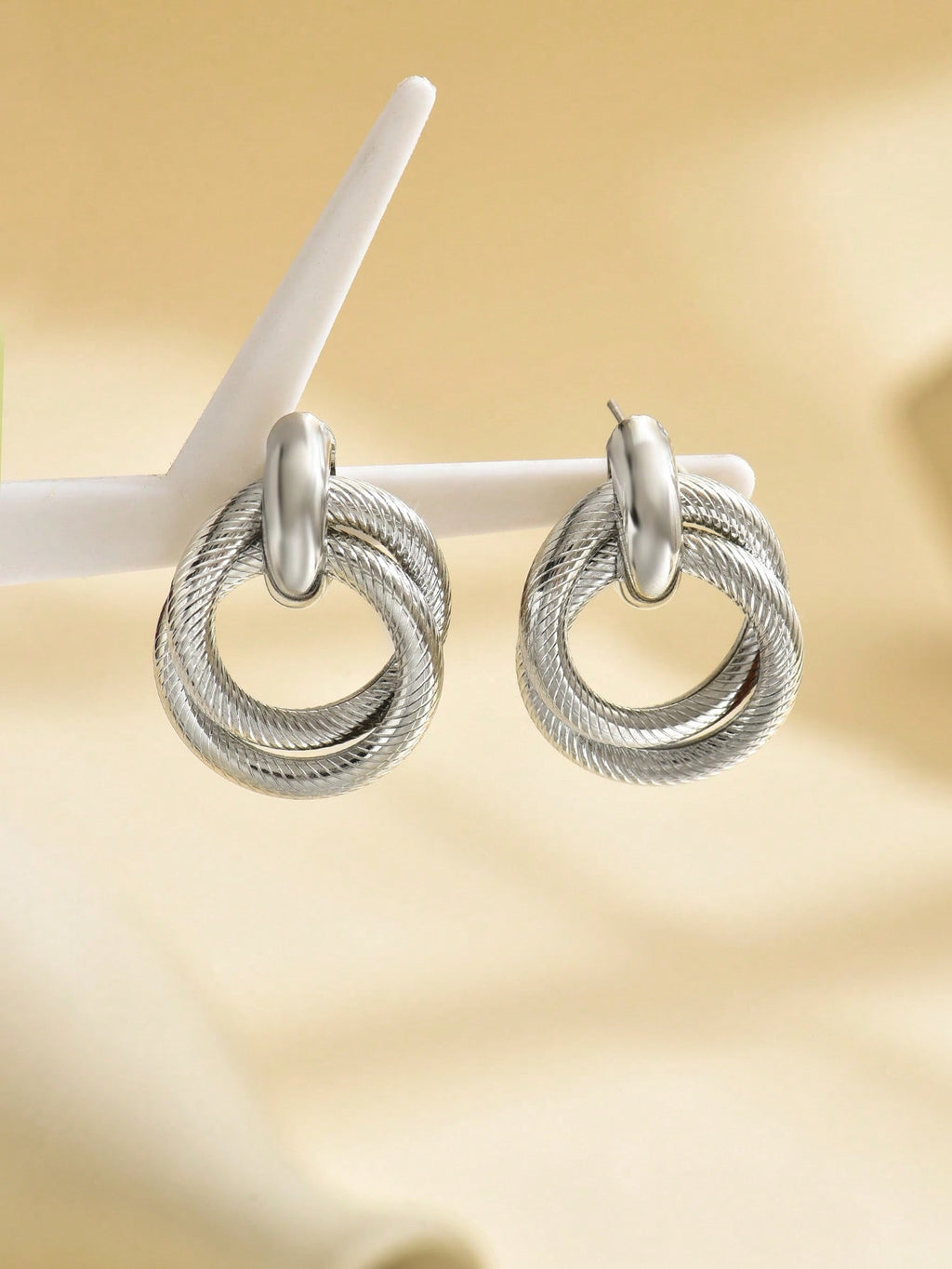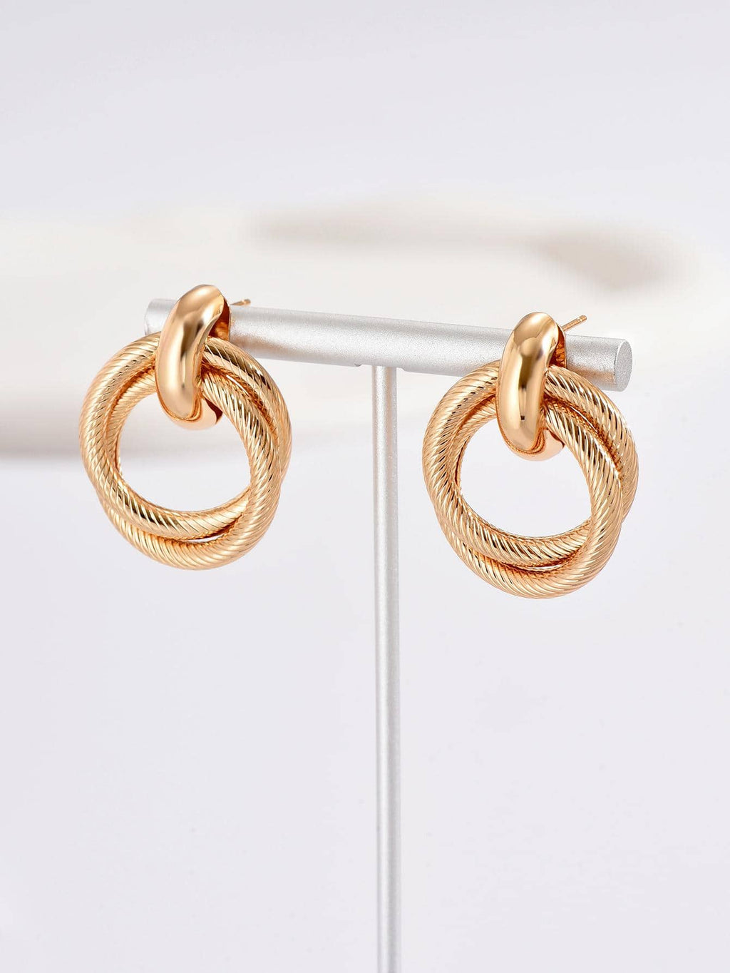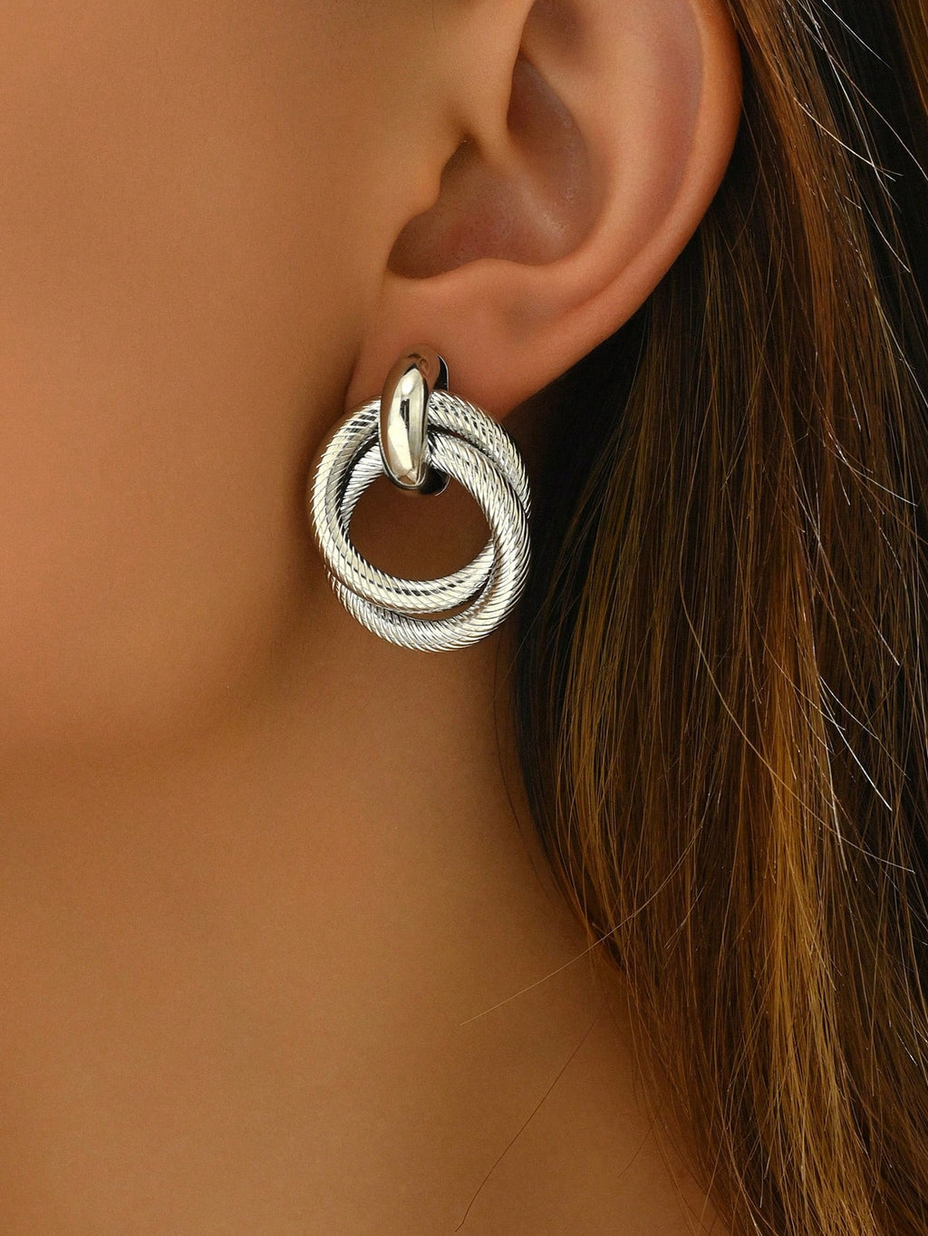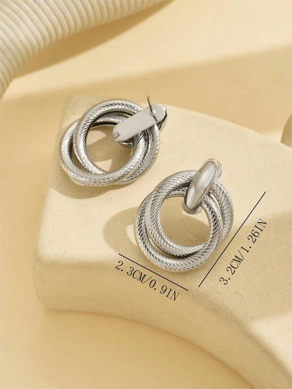 BELLAVOG 1pair Chunky Jewelry Thick Metal Double Circle Hoop Earrings, Twisted Alloy Texture