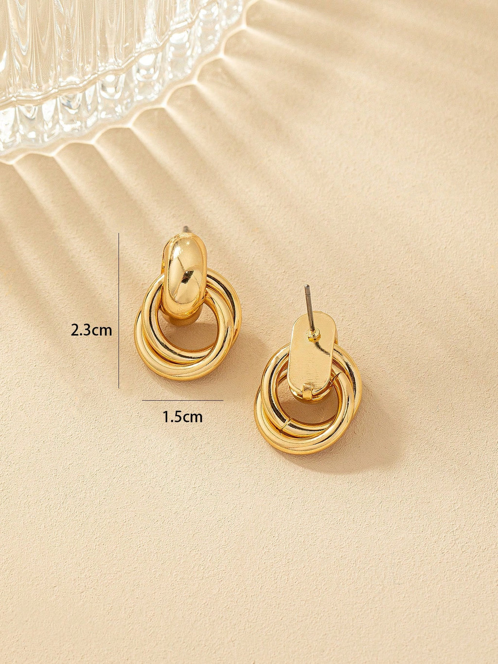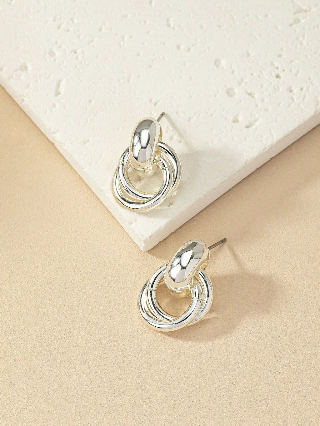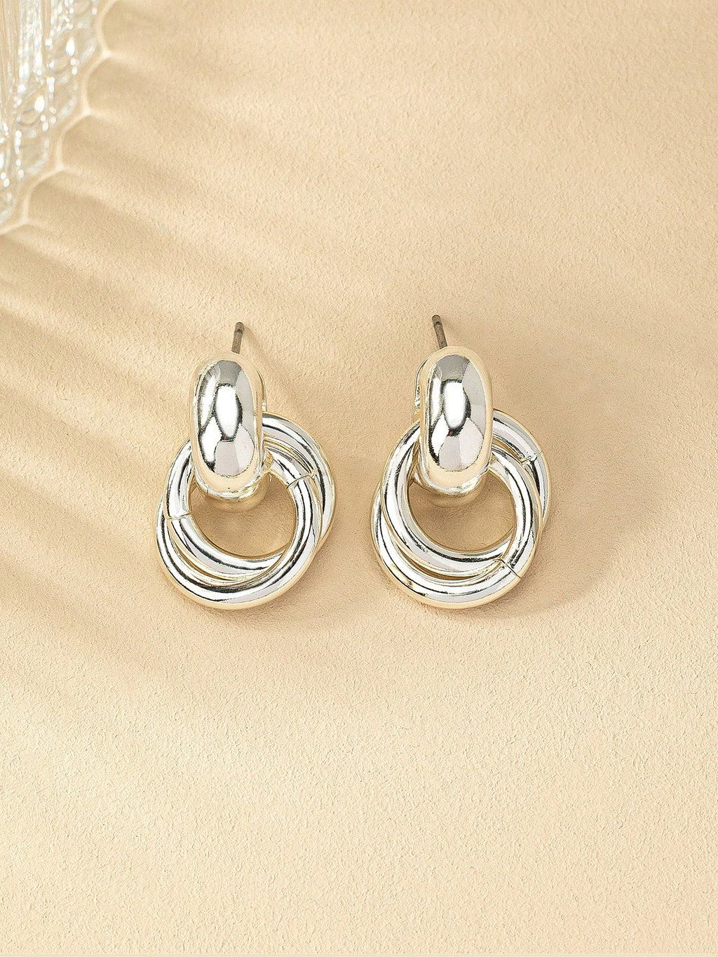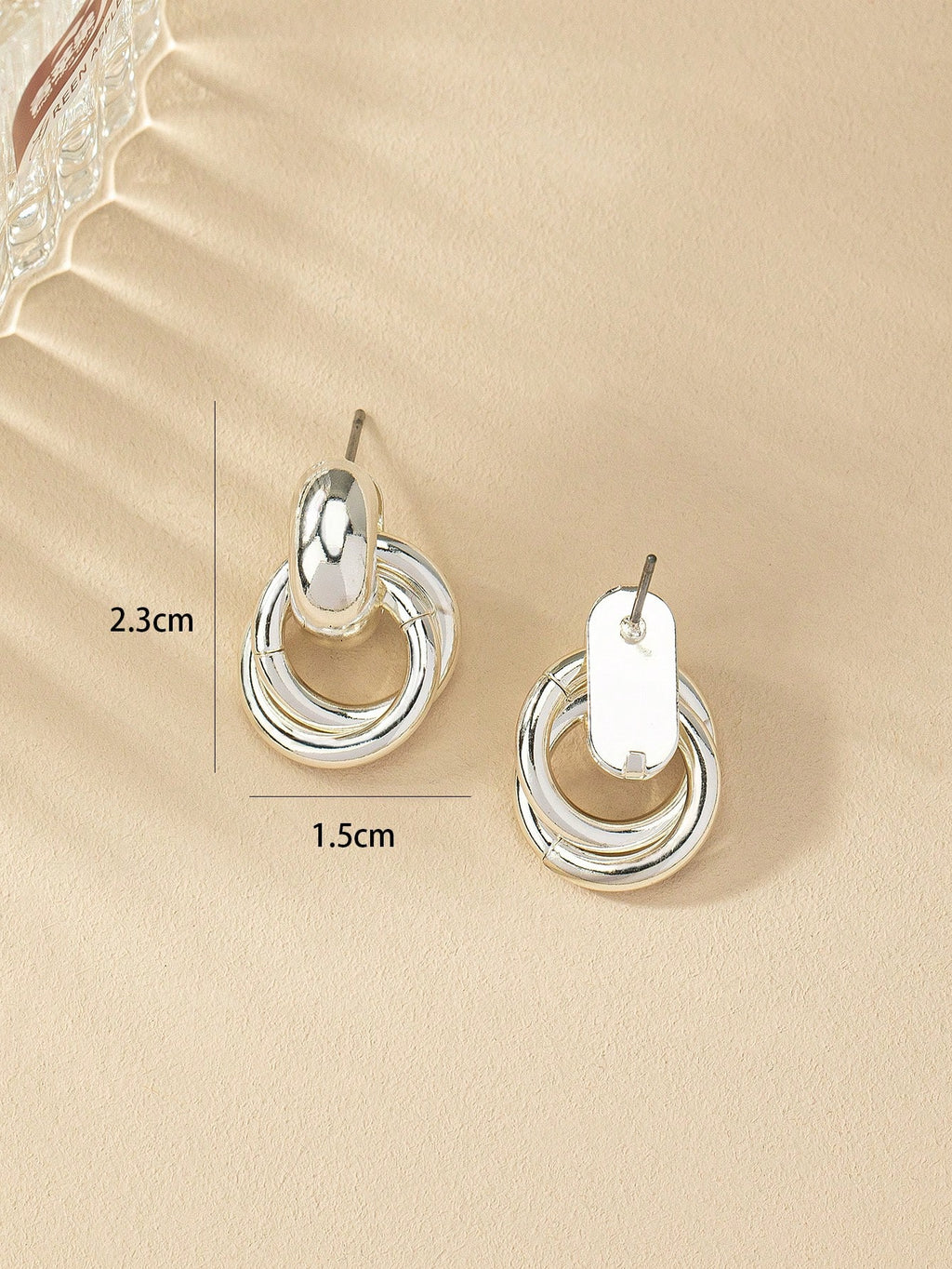 BELLAVOG 1pair Metallic Circle Button Drop Earrings For Women's Daily Wear