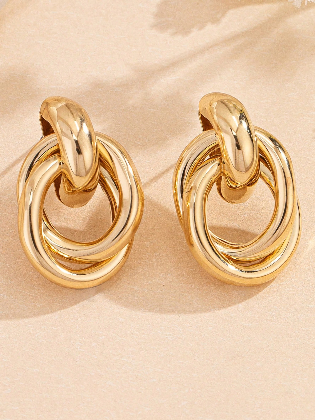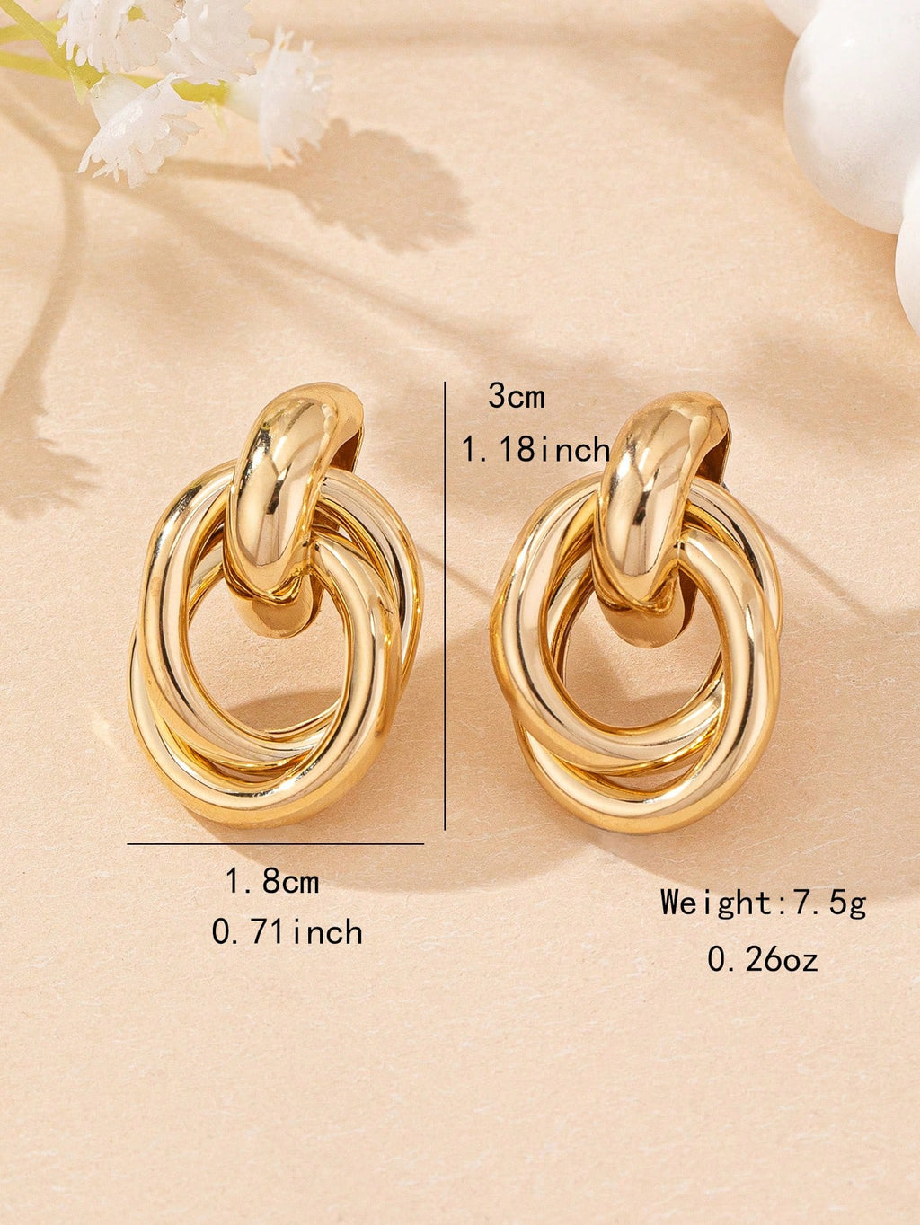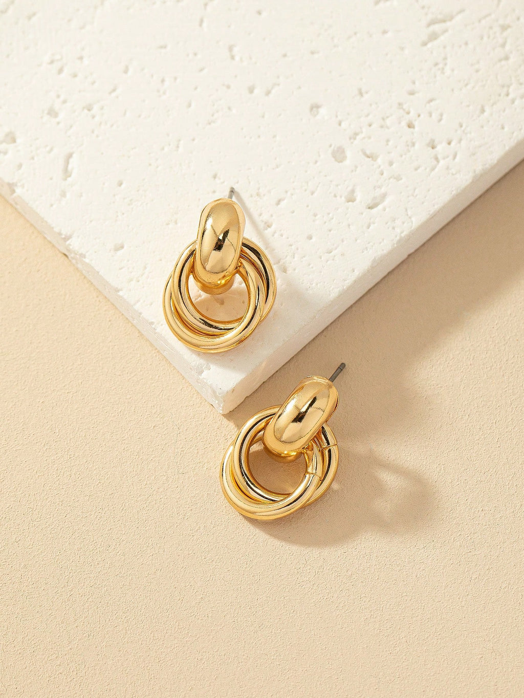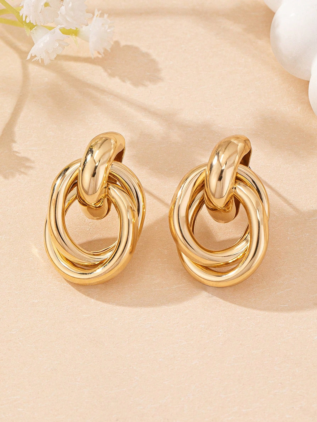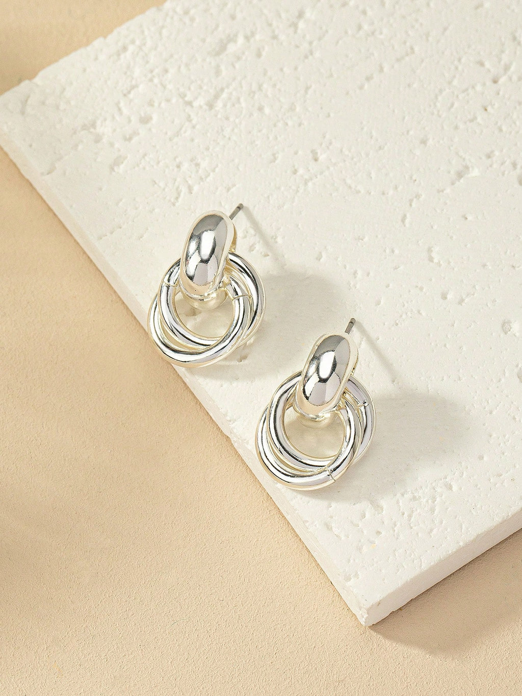 BELLAVOG 1pair Metallic Circle Button Drop Earrings For Women's Daily Wear