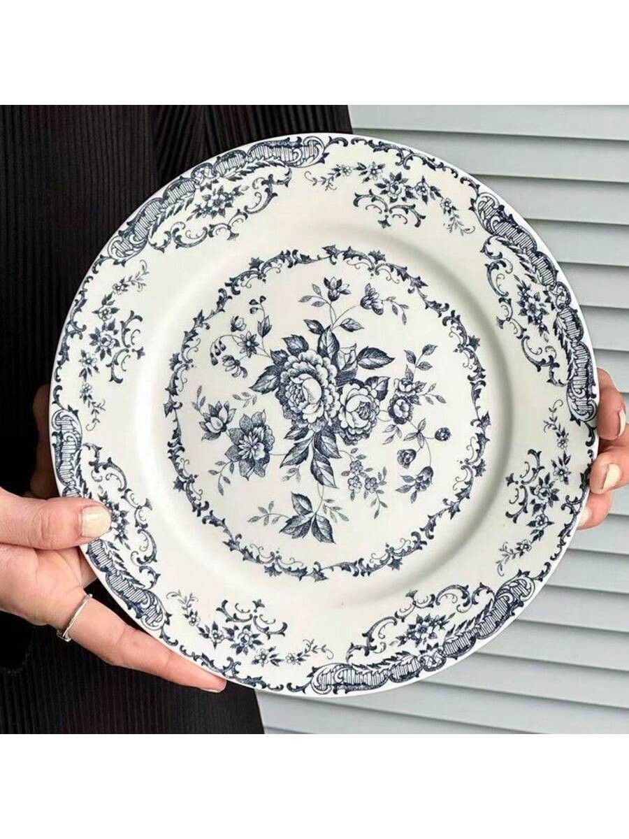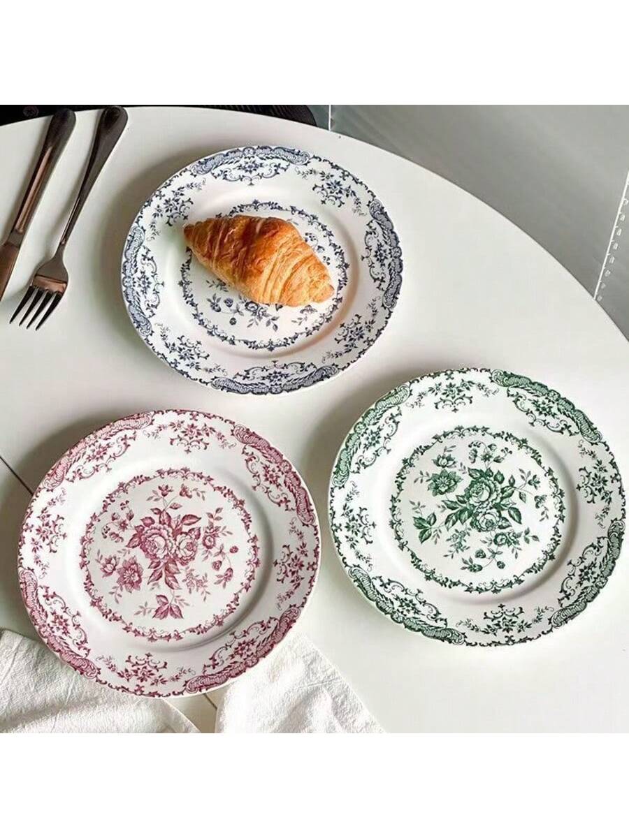 BELLAVOG 1pc 8-Inch French Rose Pattern Ceramic Dinner Plate, Home Use Dish, Classic Enamel-On-Glaze Pasta/Salad/Dessert Plate