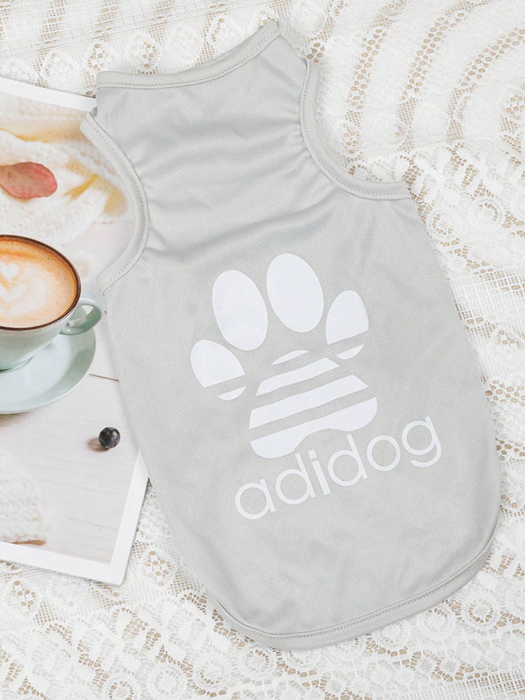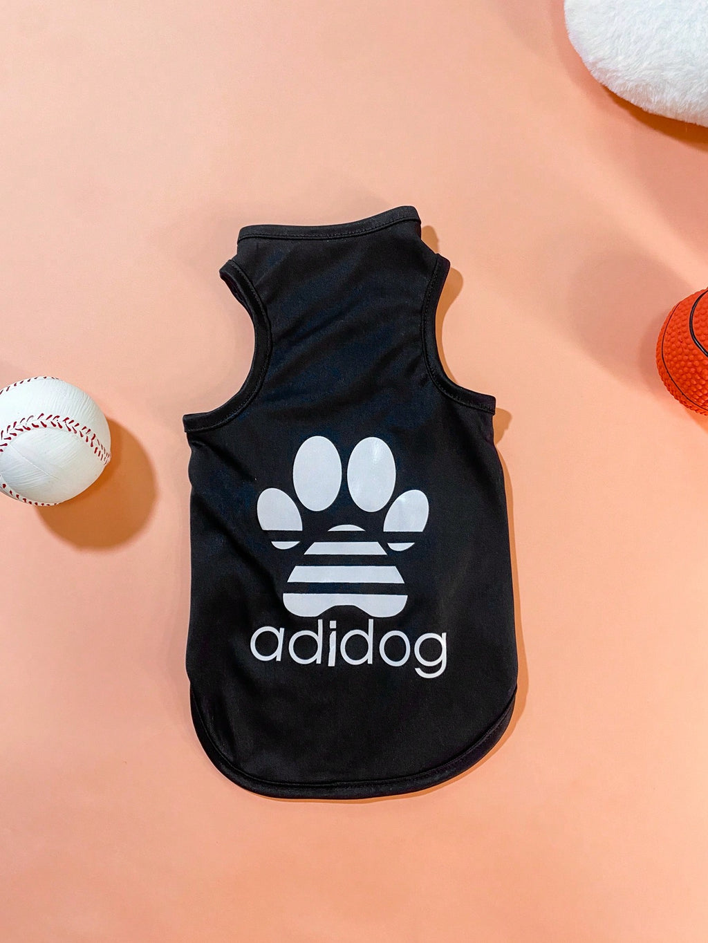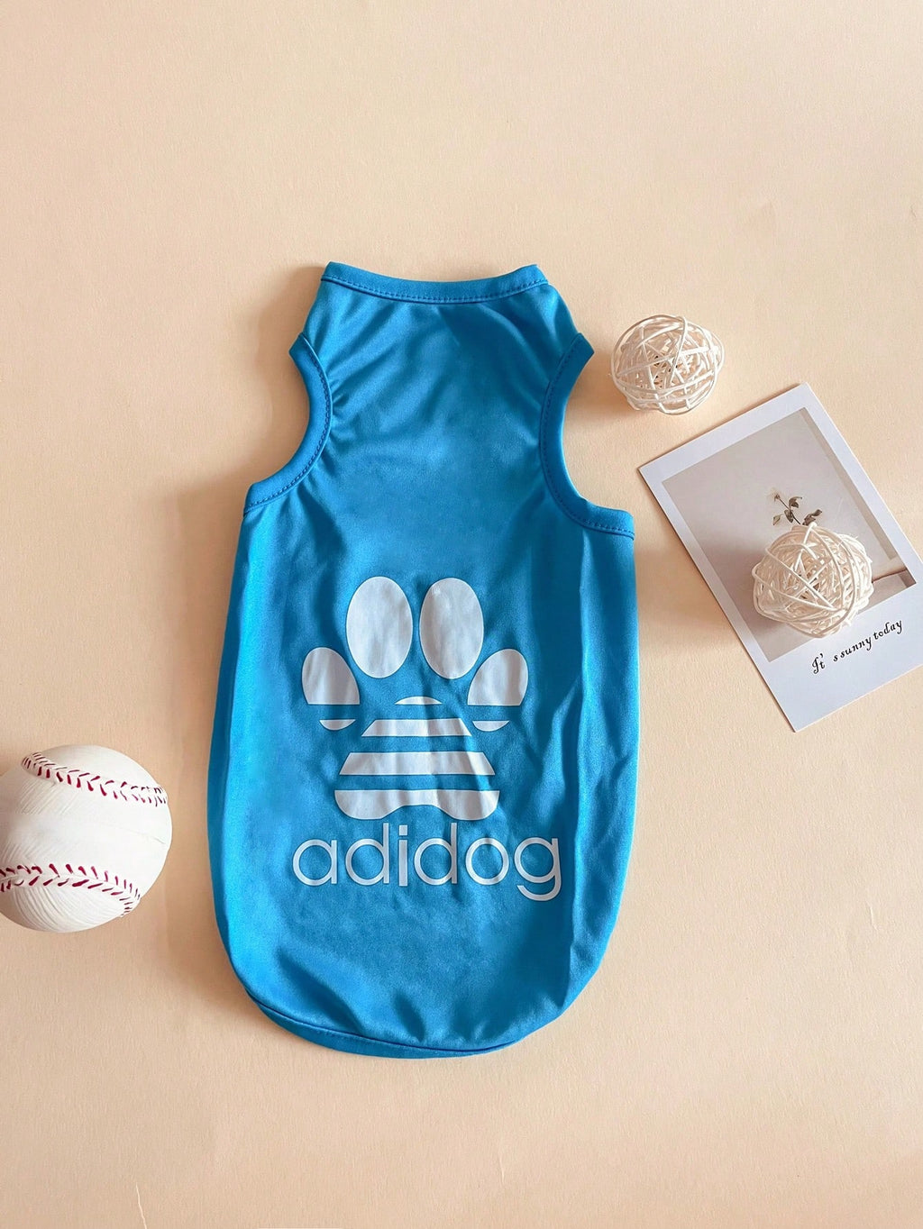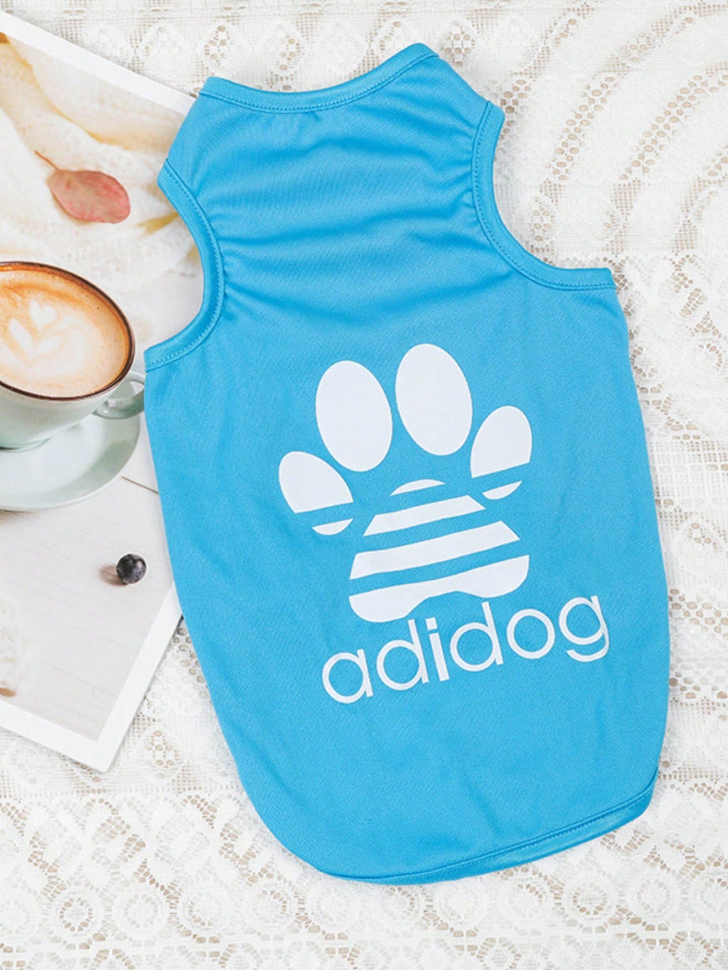 BELLAVOG 1pc Dog Footprint Printed Sports Style Cat And Dog Vest, T-Shirt, Shirt, Suitable For Cat And Small To Medium-Sized Dog Clothing