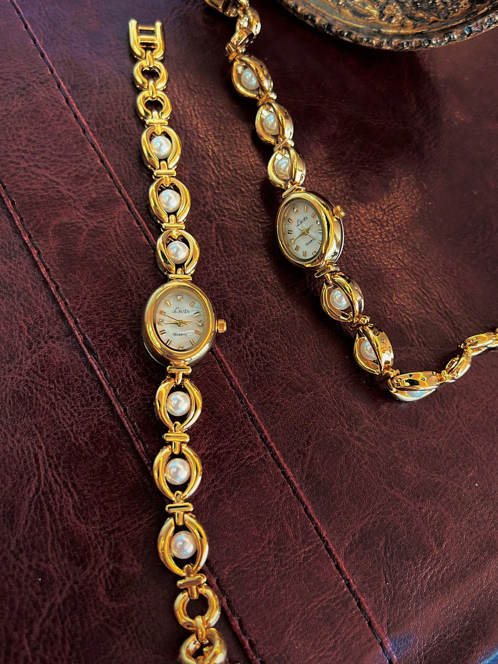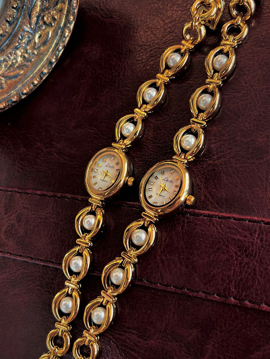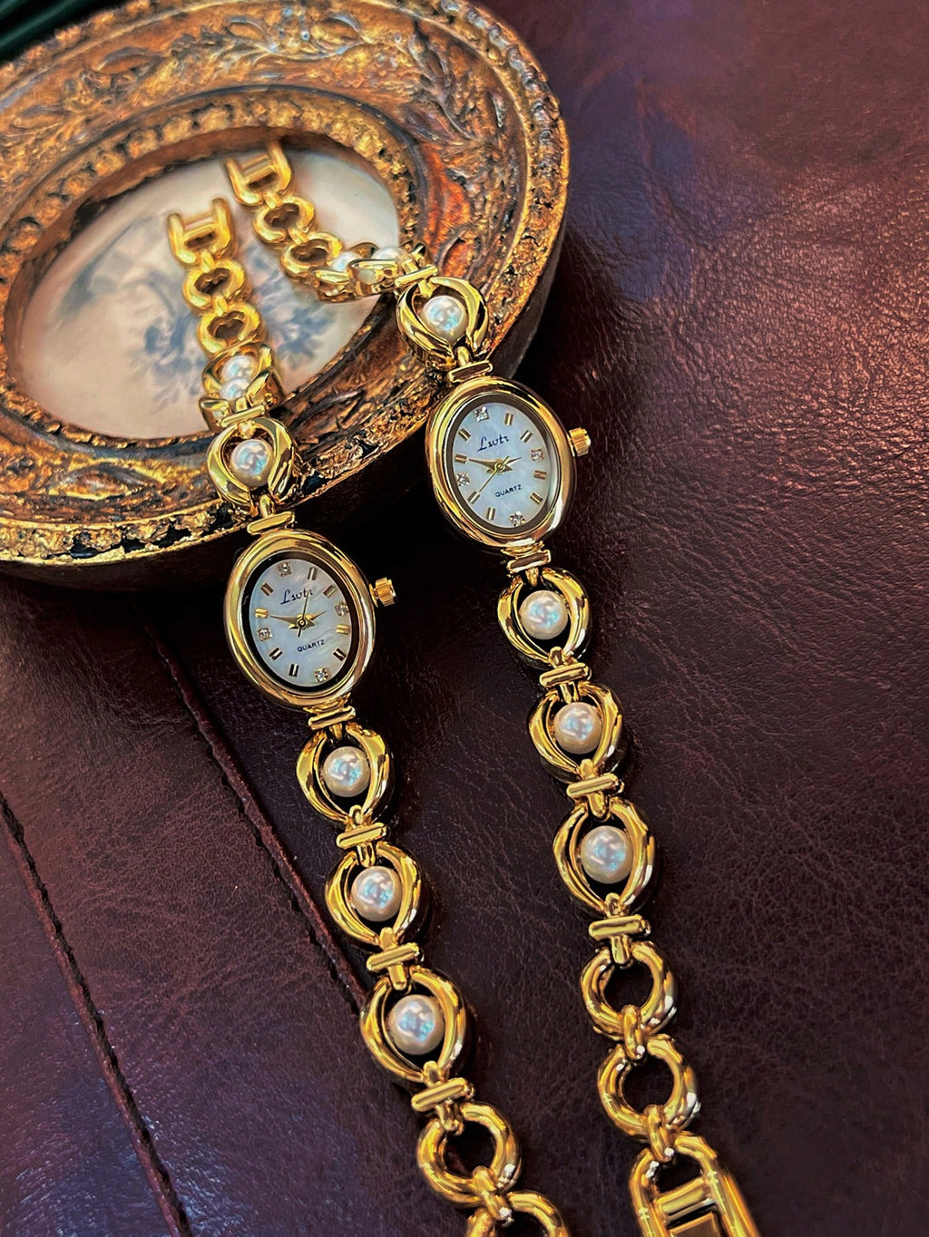 BELLAVOG 1pc French Fashionable Elegant Ladies' Pearl Strap 30m Waterproof Oval Quartz Wristwatch For Daily Wear Holiday