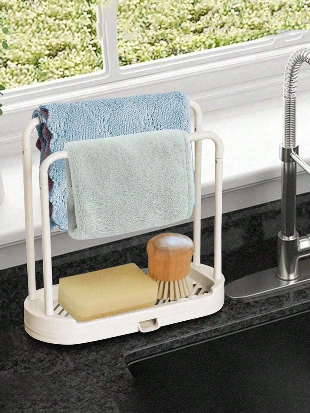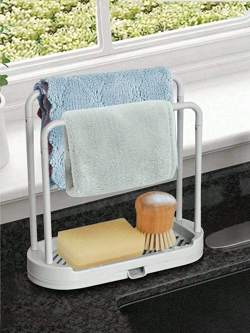 BELLAVOG 1pc Grey Kitchen Sink Rack Tray Organizer Stand,Kitchen Countertop Rust Proof Sink Accessories ,For Sponge, Dish Cloth, Rag, Brush, Scrubber Storage Holder.