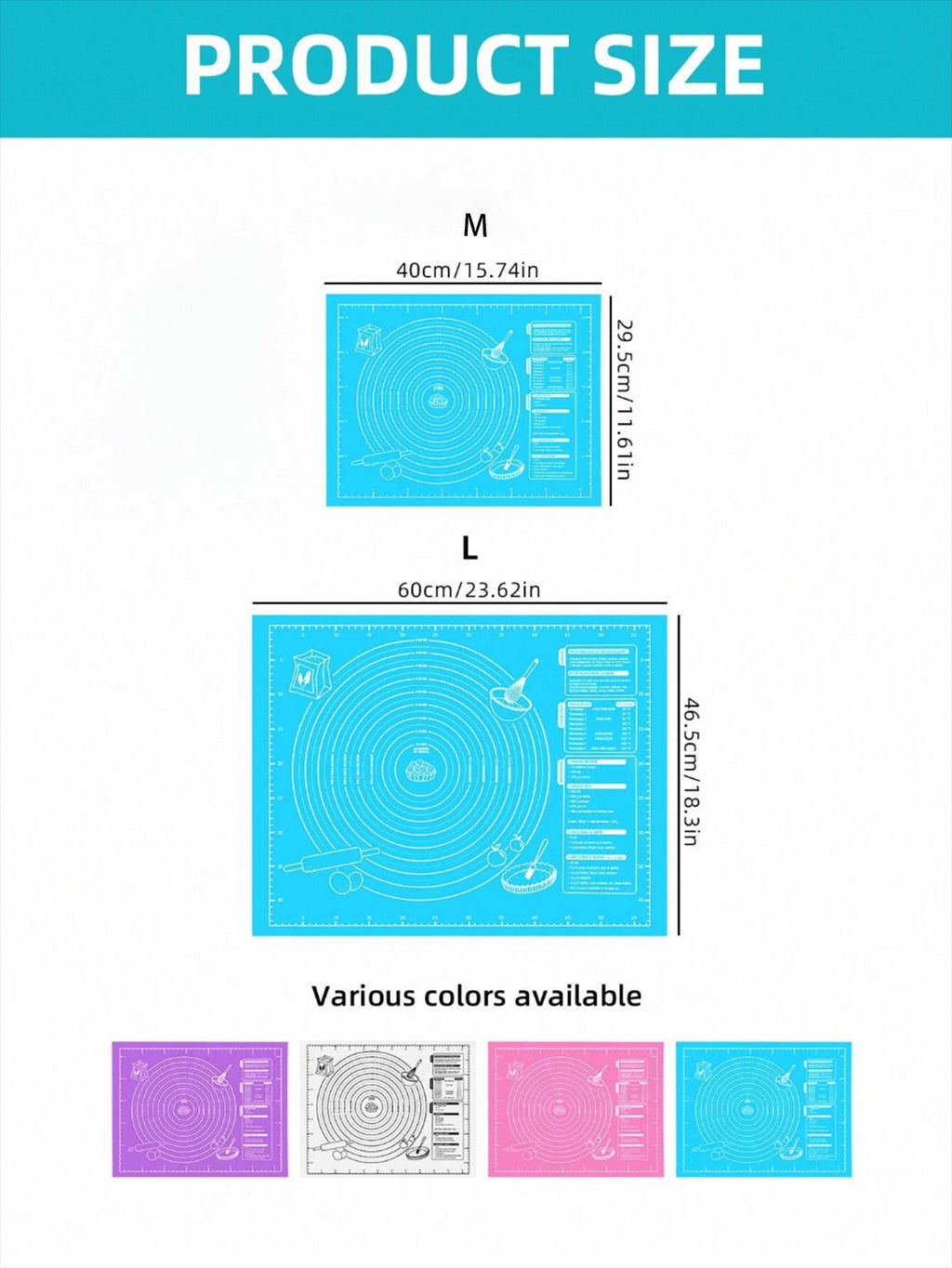 BELLAVOG 1pc Kneading Mat - Non-Stick, Easy To Clean - Blue/Purple/White/Pink Options, Convenient Cleaning, Suitable For Cookie, Dough, Cake Baking, Essential Baking Tool For Chinese Pastries, Great For Christmas, Easter, Thanksgiving