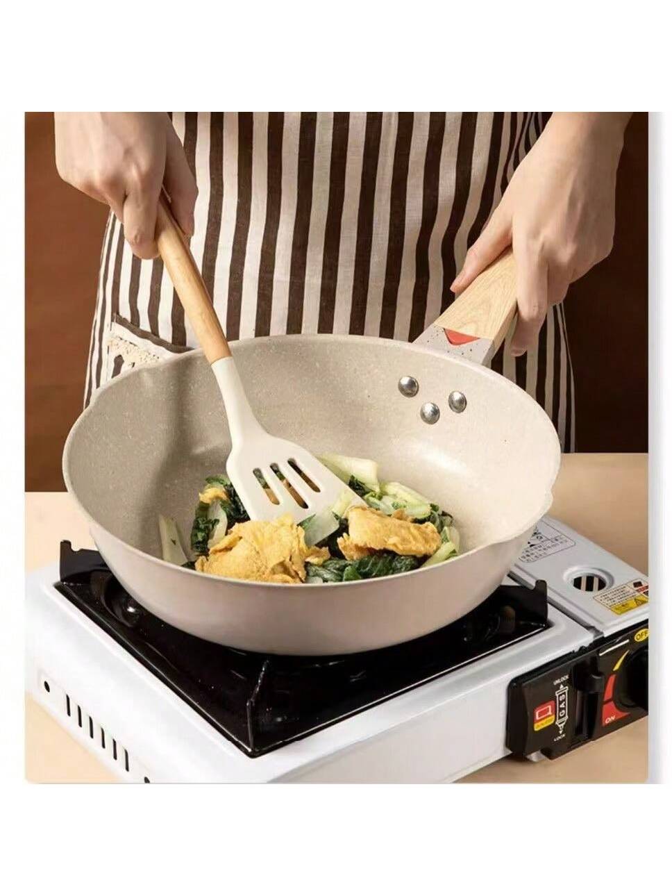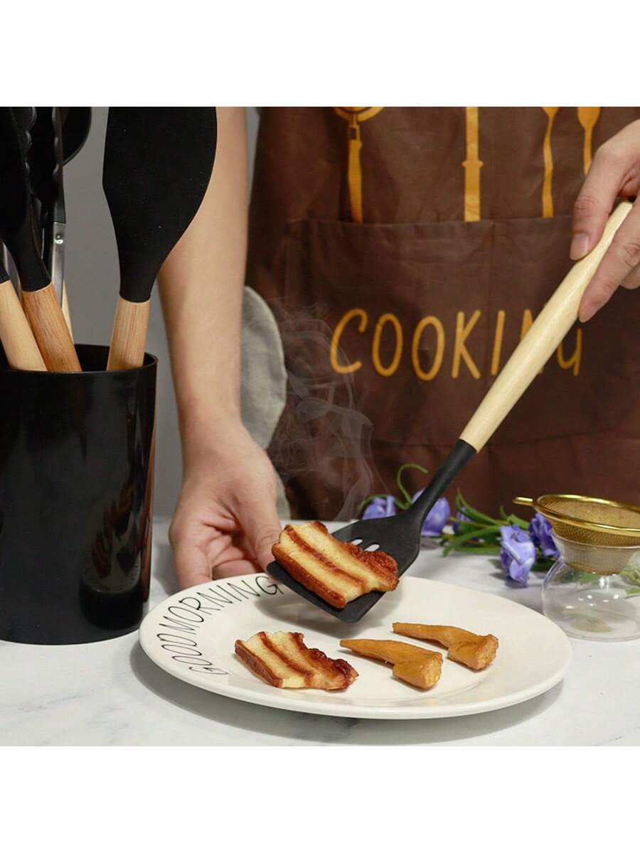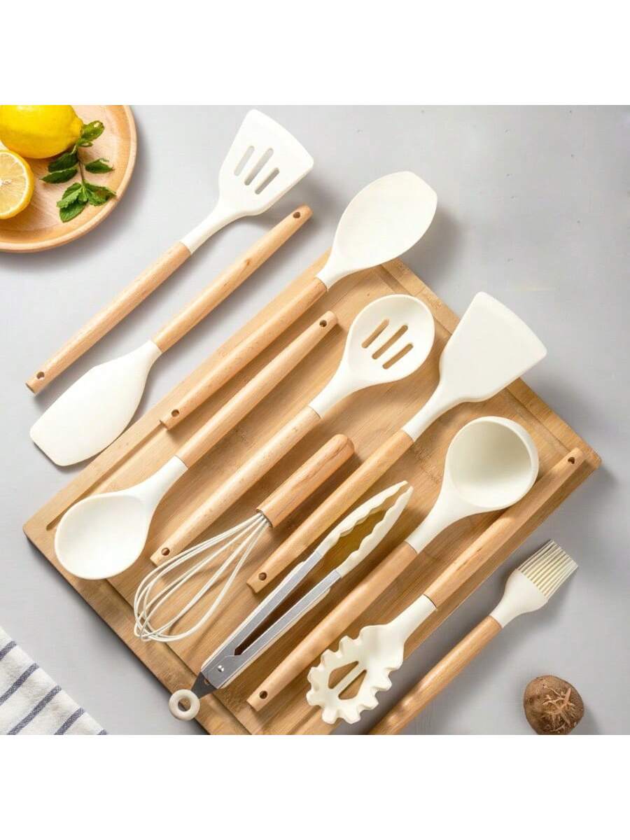 BELLAVOG 1pc Non-Stick Silicone Kitchen Egg Beater Mixer With Wooden Handle - Safe And Easy To Clean