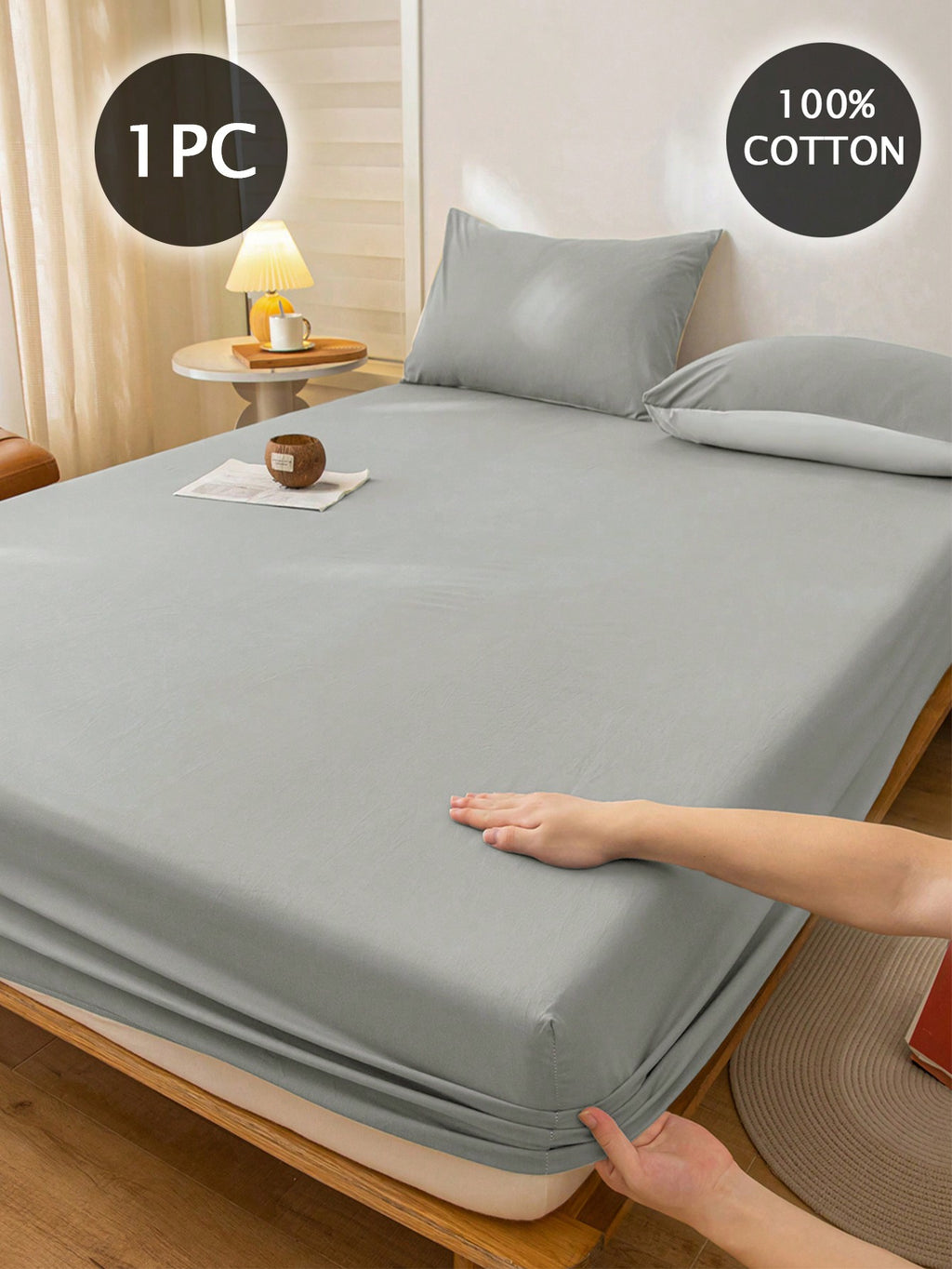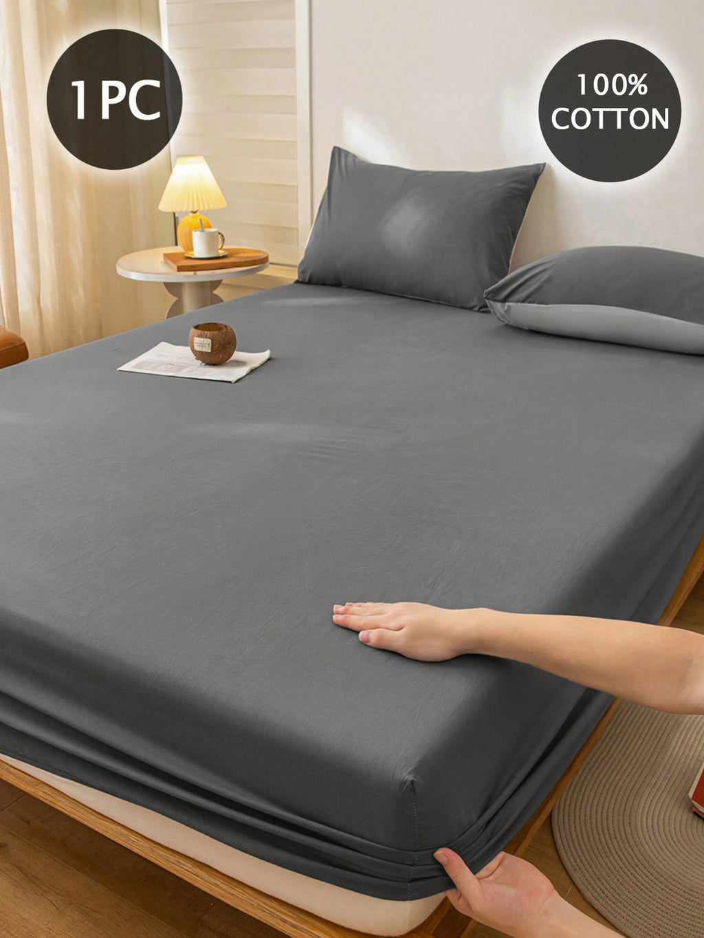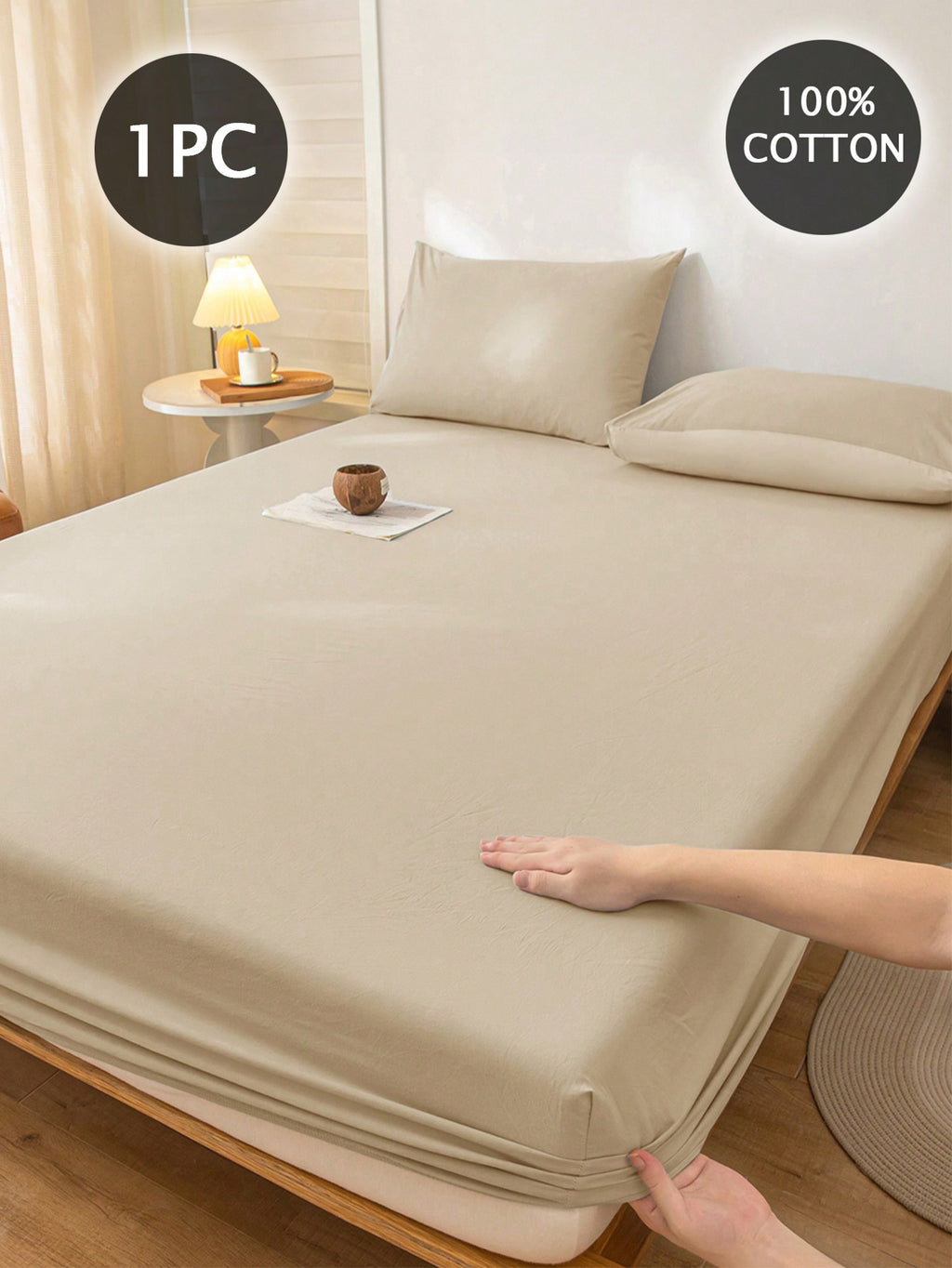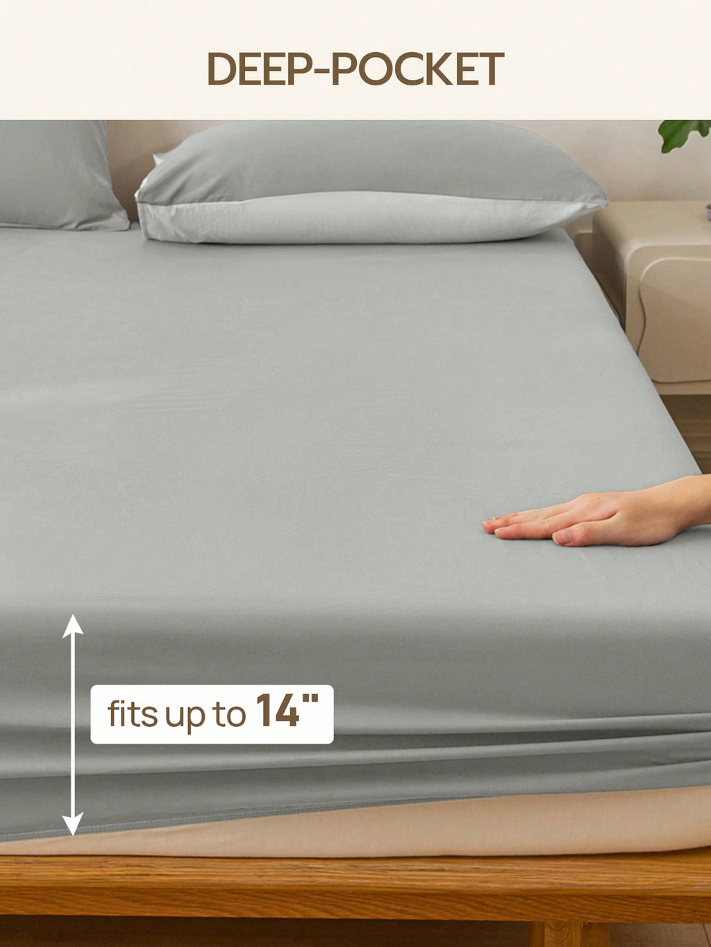 BELLAVOG 1pc Plain Fitted Sheet, Suitable For Mattress Depth Up To 35cm