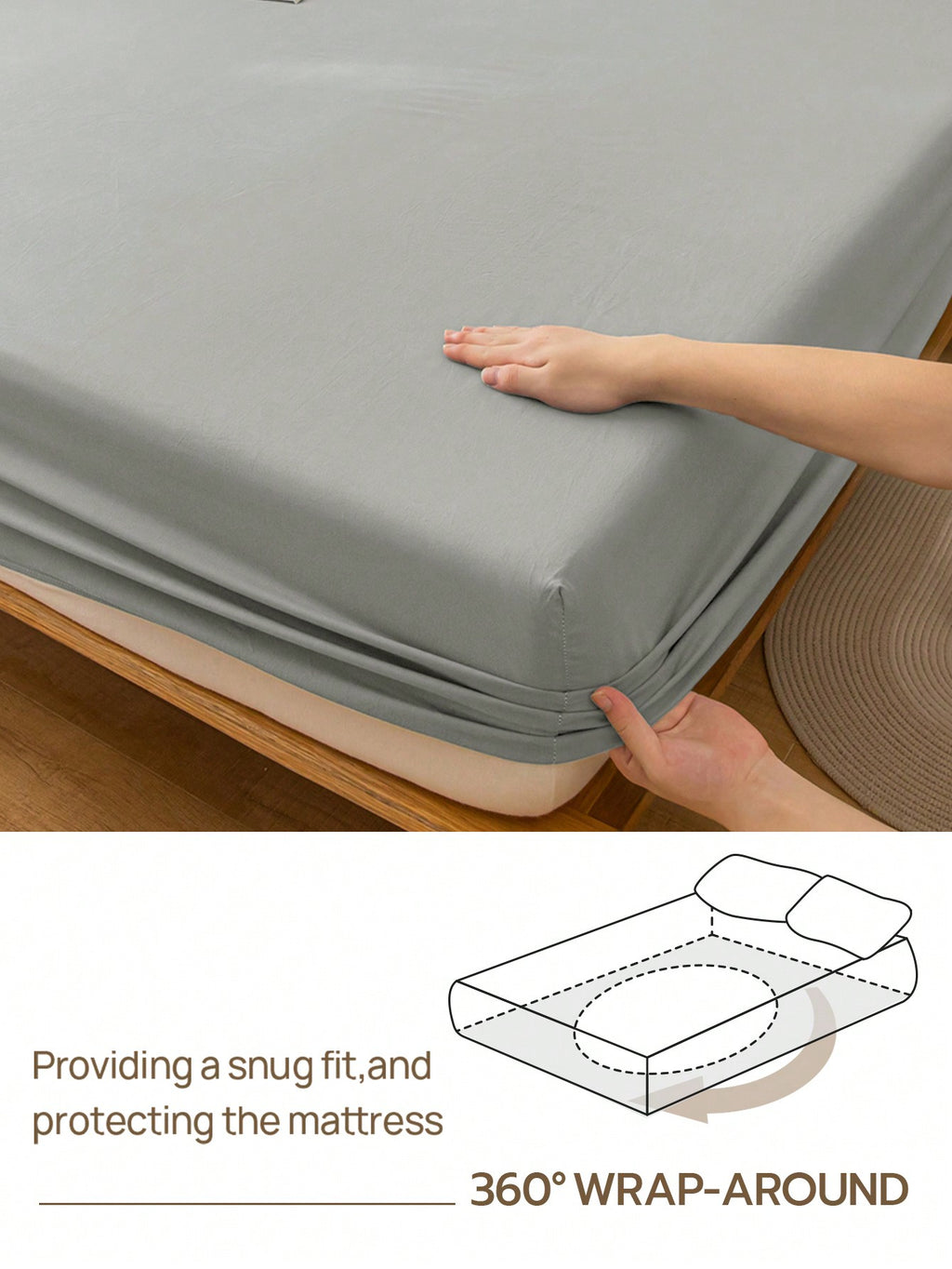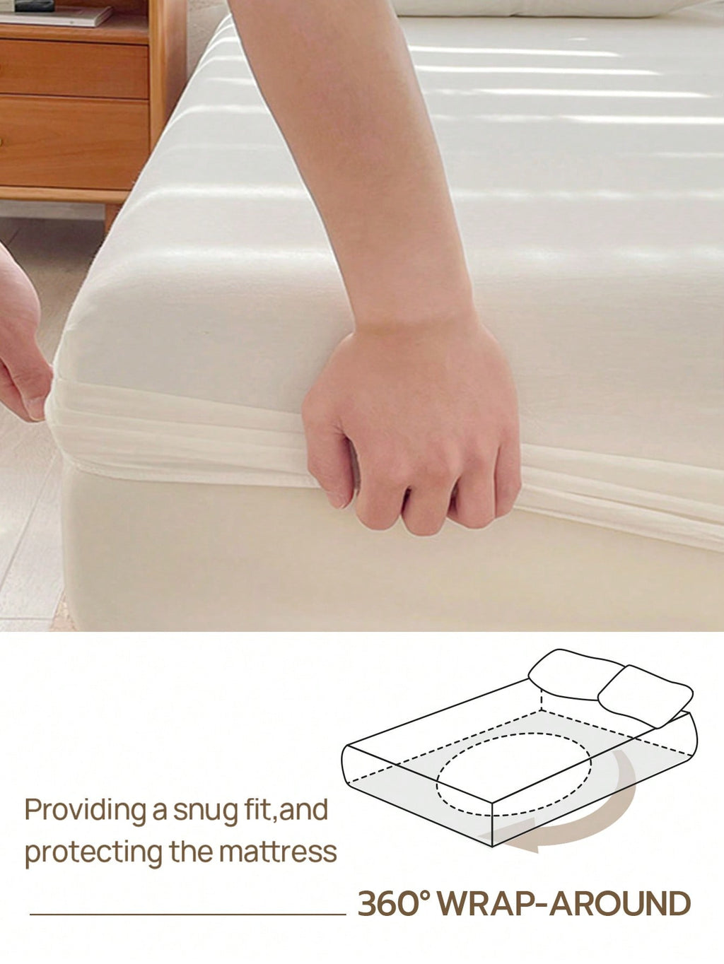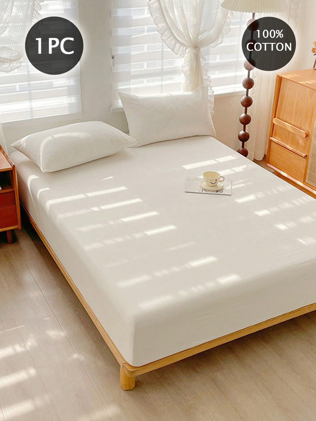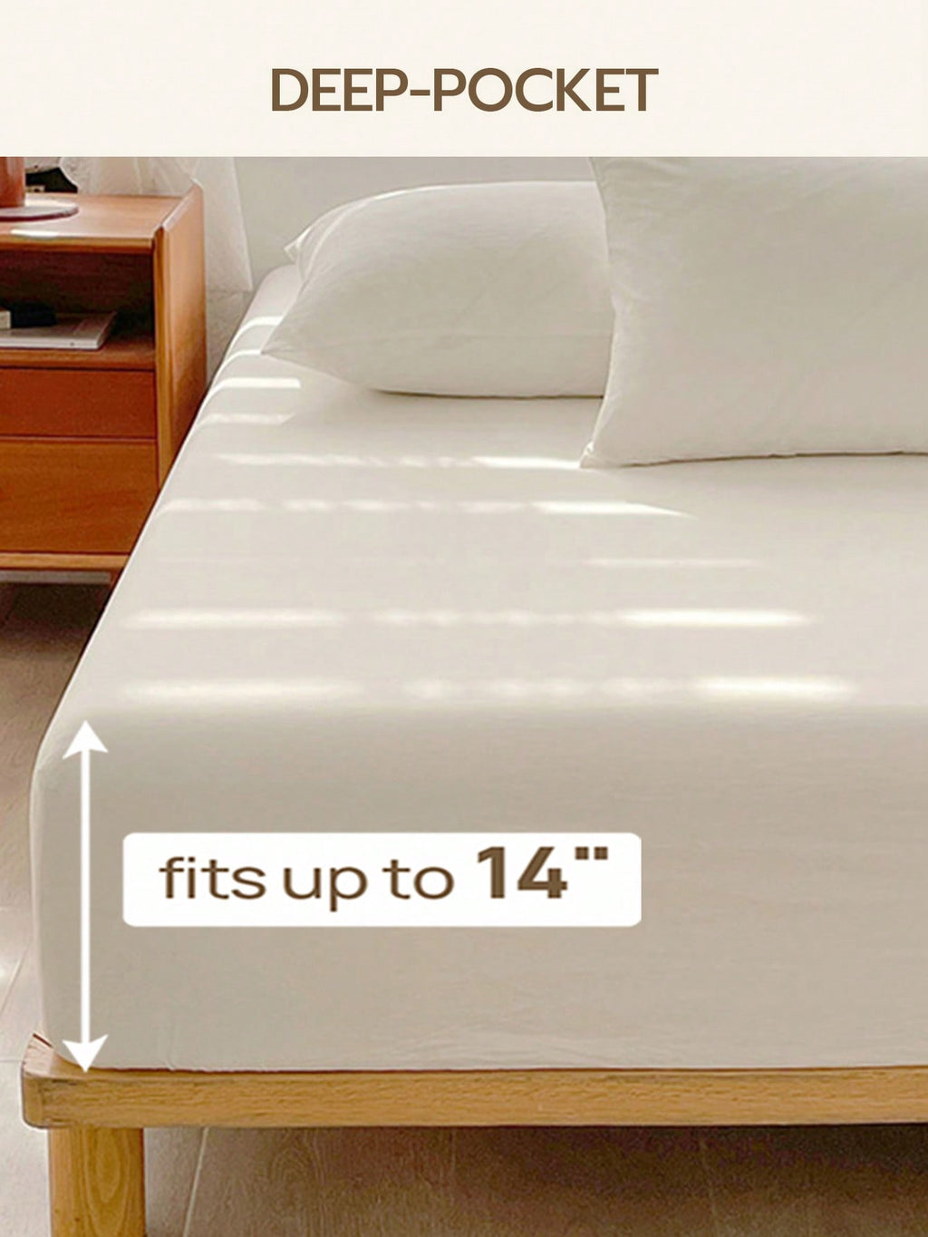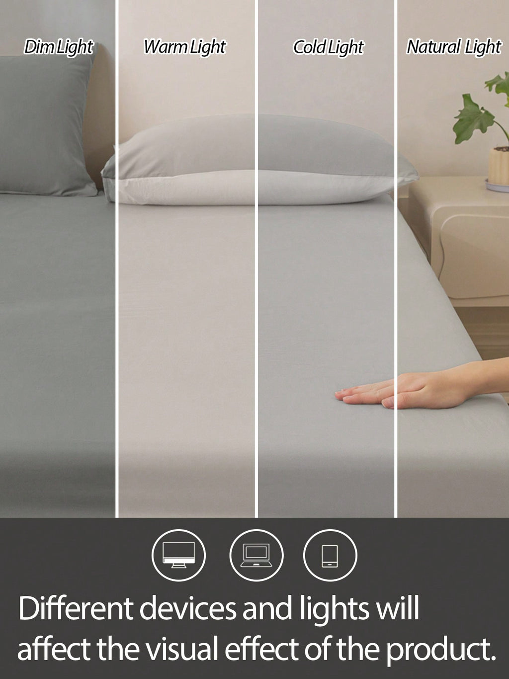 BELLAVOG 1pc Plain Fitted Sheet, Suitable For Mattress Depth Up To 35cm