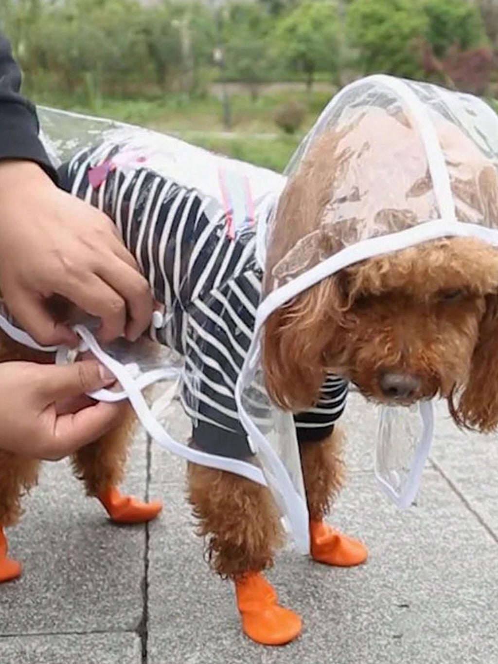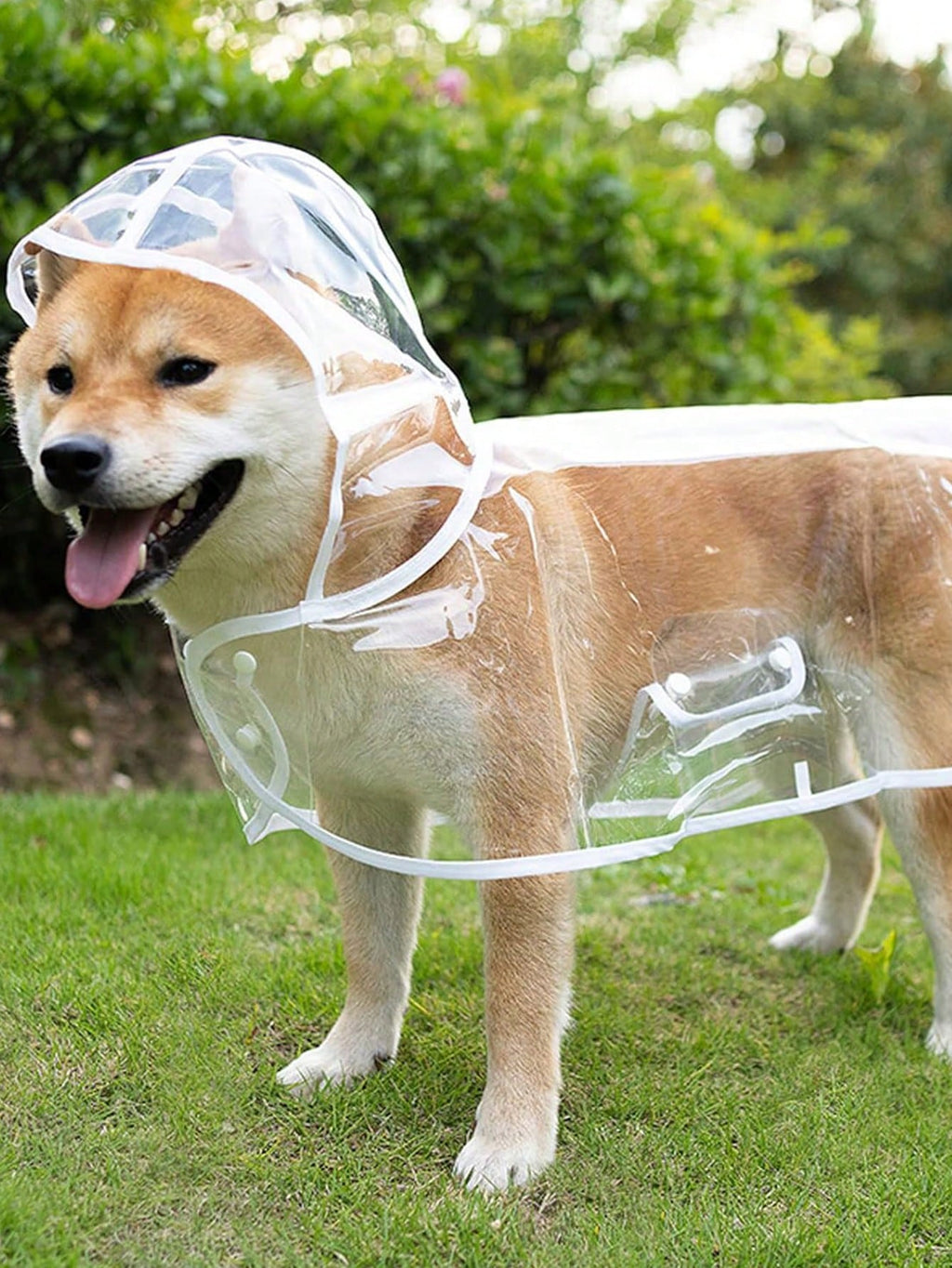 BELLAVOG 1pc PU Waterproof Transparent Pet Raincoat Suitable For Dogs On Rainy Days Use Pet Dog Puppy Raincoat Pet Hooded Waterproof Jacket Clothes Soft