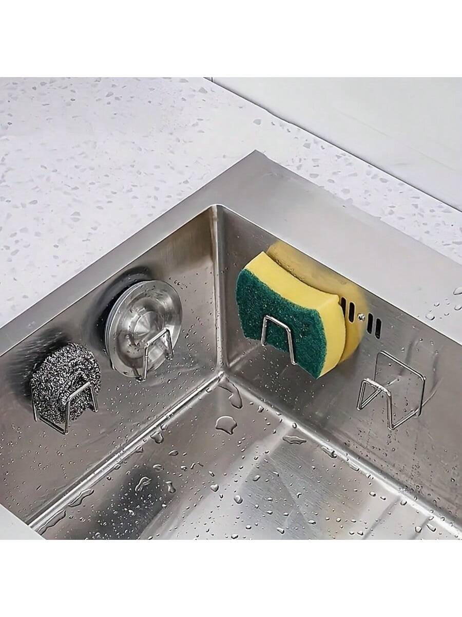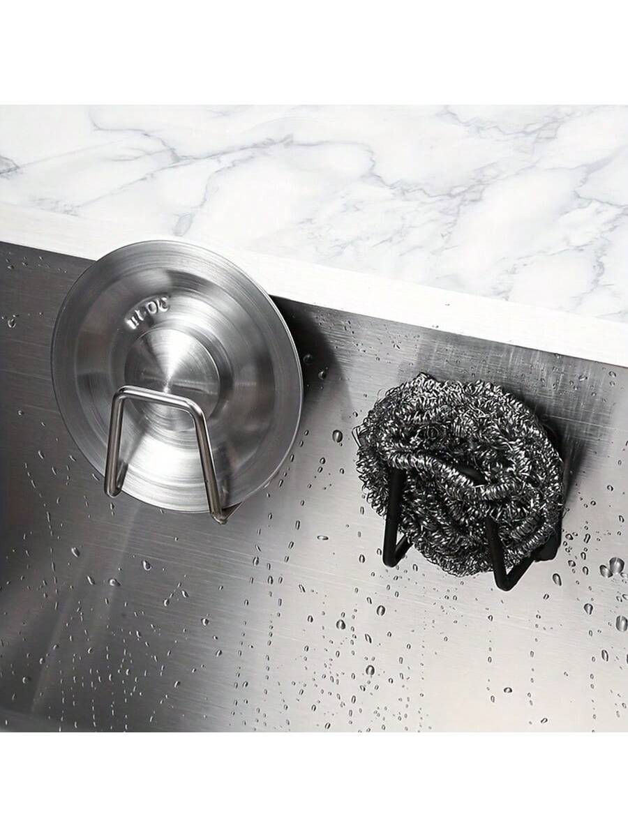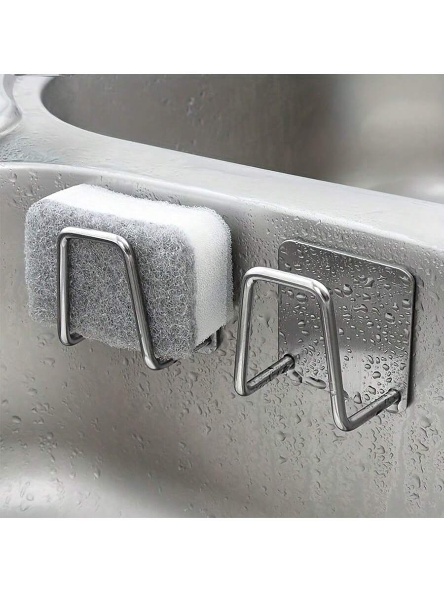 BELLAVOG 1pc Stainless Steel Sink Sponge Holder, Durable Self-Adhesive Dish Drying Rack For Kitchen Sink, Bathroom Accessories