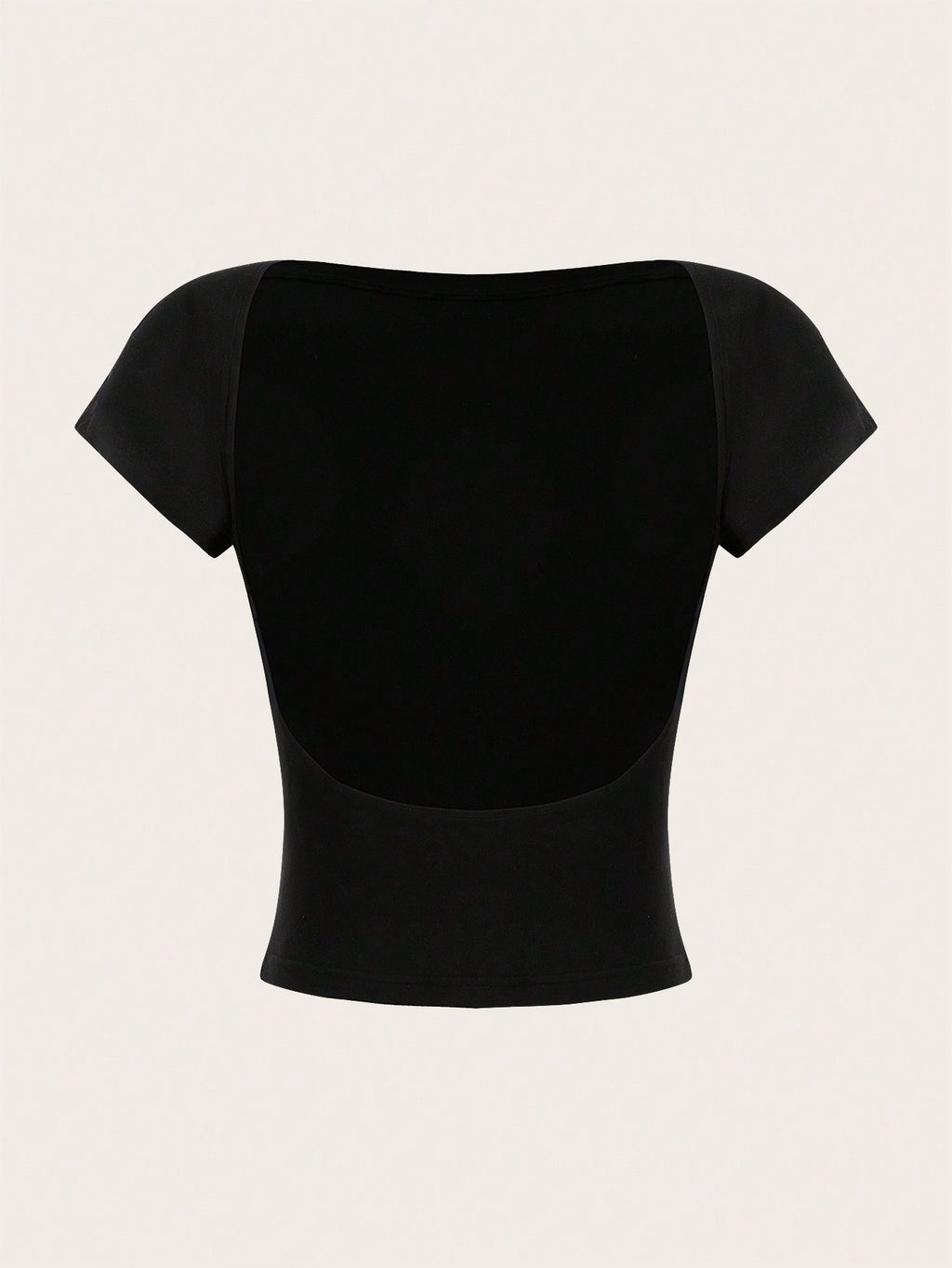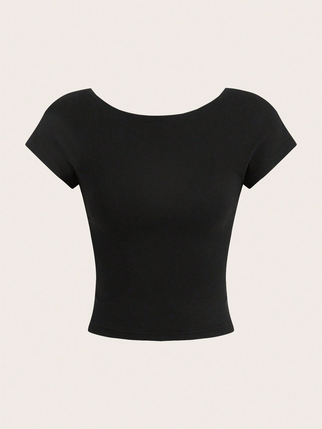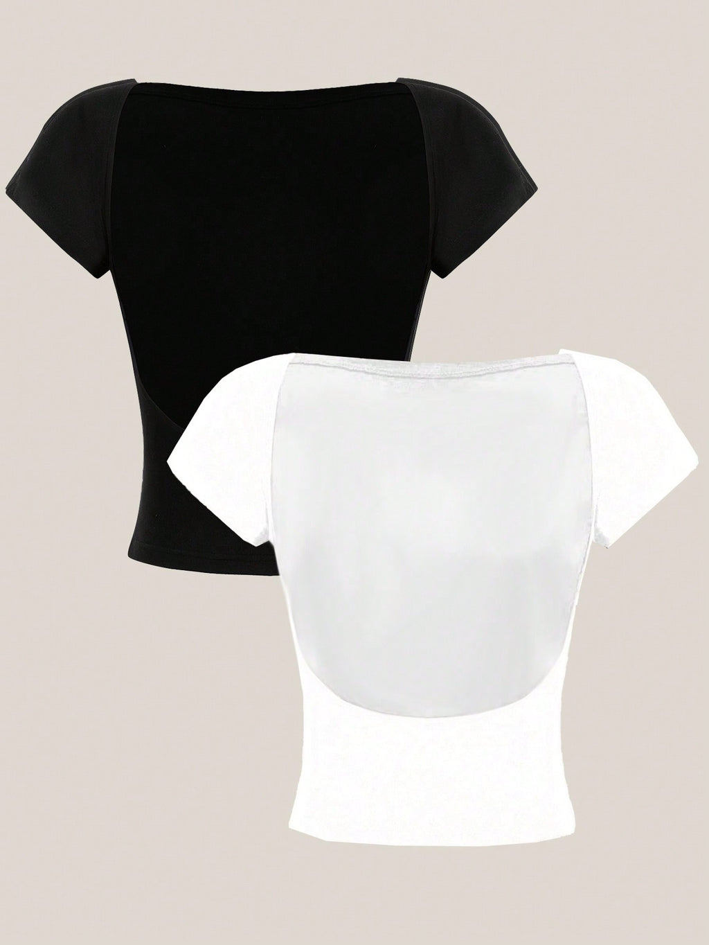 BELLAVOG 2 Piece Sexy Petite Women Short Sleeve Cropped Backless Round Neck T-Shirt Set, Fitted For Summer