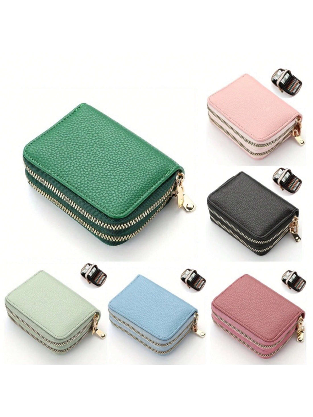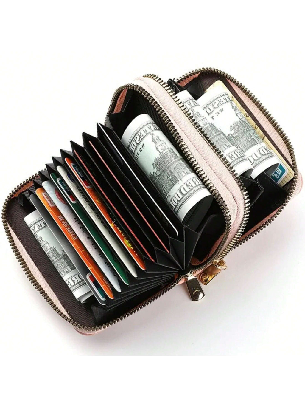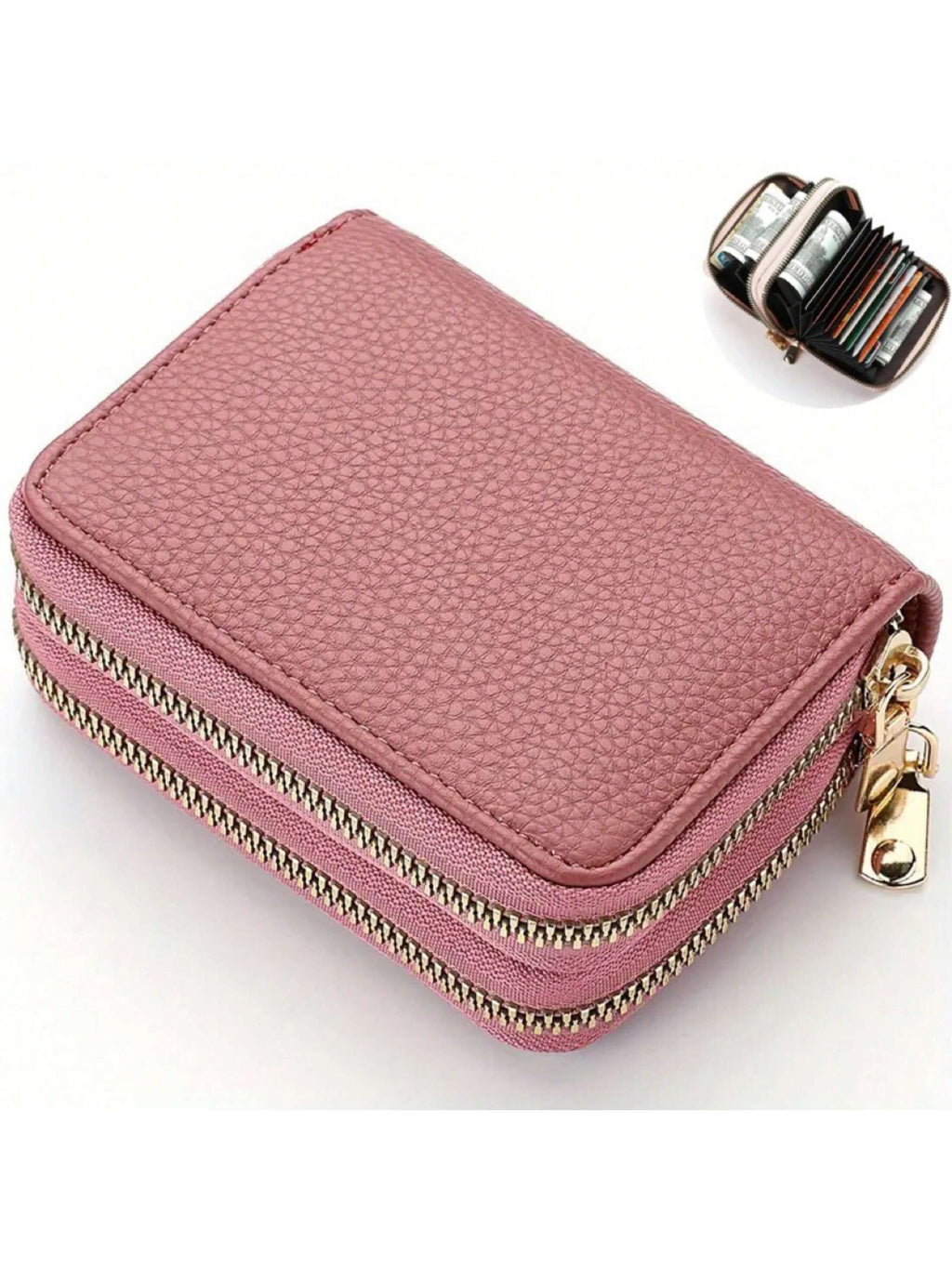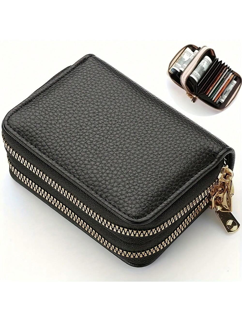BELLAVOG 2023 New Lychee Pattern Accordion With Double Zipper For Large Capacity Pu Leather Card Organizer Multi-Functional Wallet Card Holder Card Holder Wallet Business Card Holder Credit Card Holder Card Holder Women