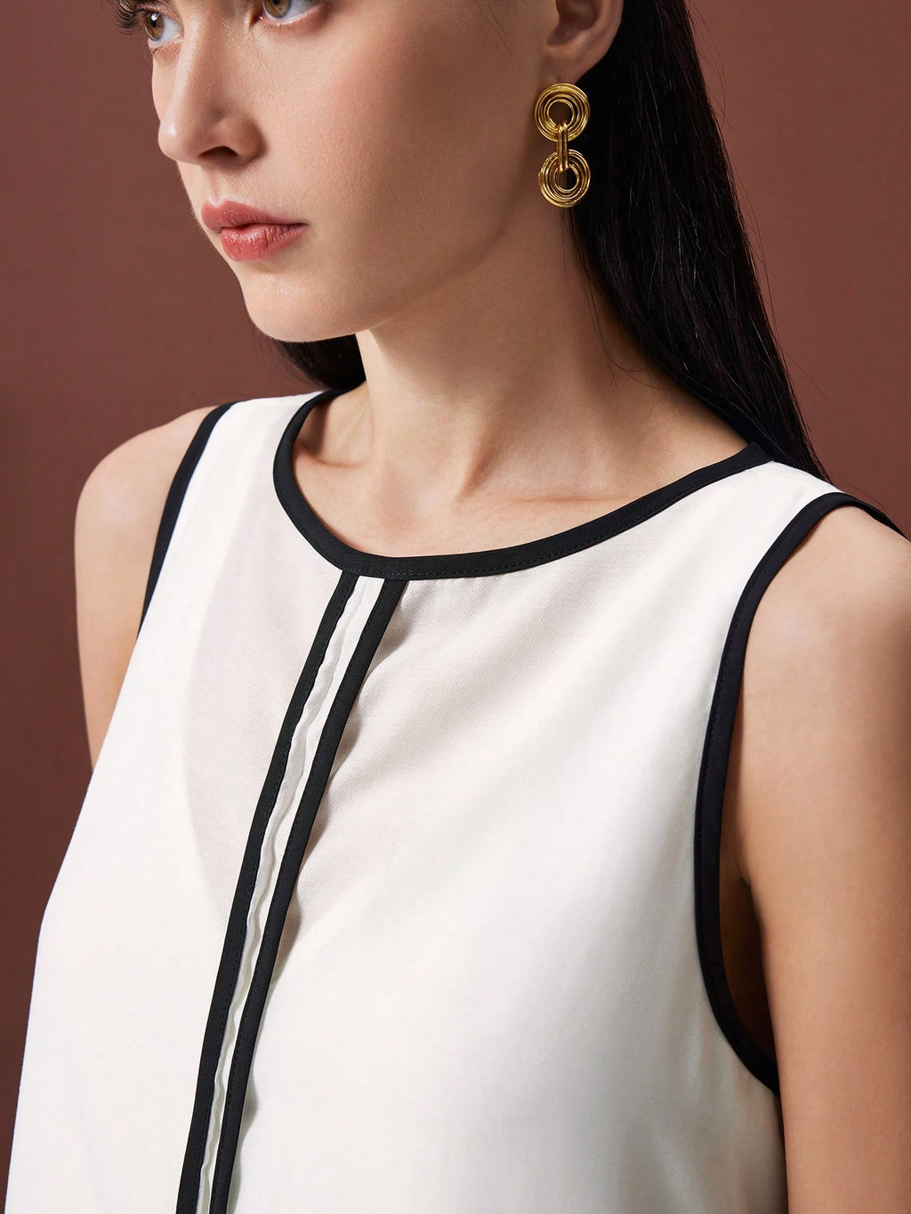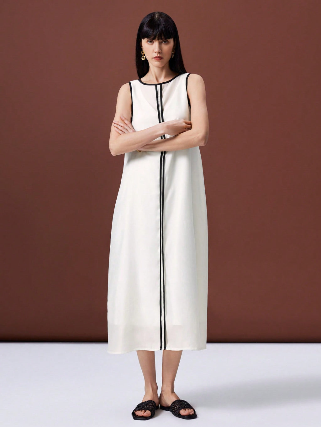 BELLAVOG 2025 New Music Festival, Concert, Country Music Festival Dress For Women, Urban Style Scoop Neck Sleeveless Contrast Trim Dress, Daily Wear, Spring