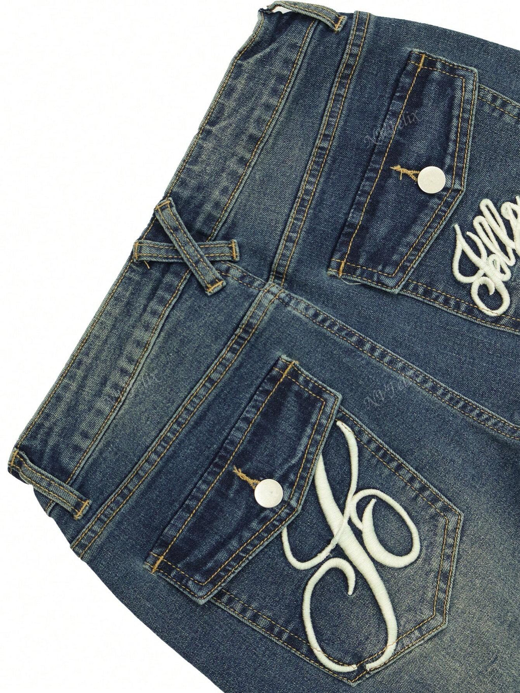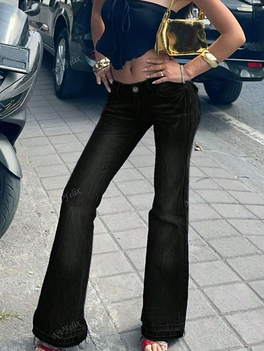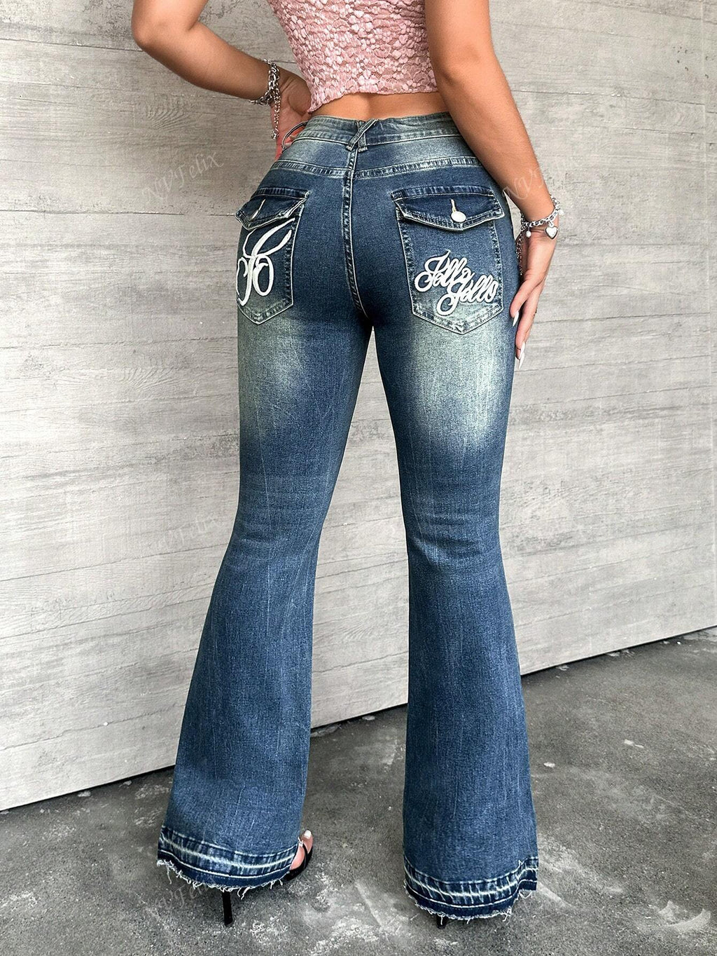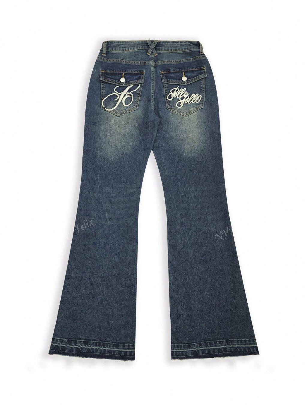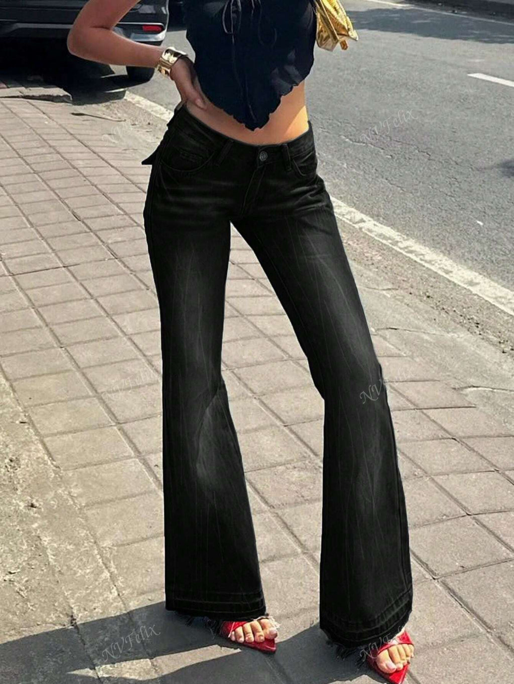 BELLAVOG 2025 New Women's Summer Y2K Fashion Streetwear Casual Versatile Embroidered Pocket Long Stretch Flared Jeans