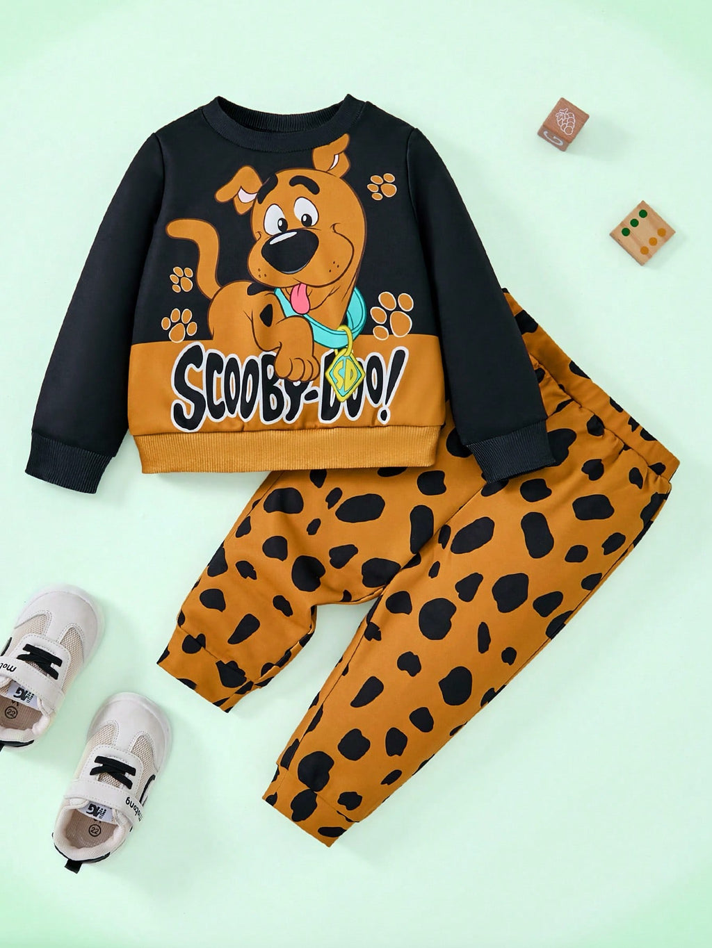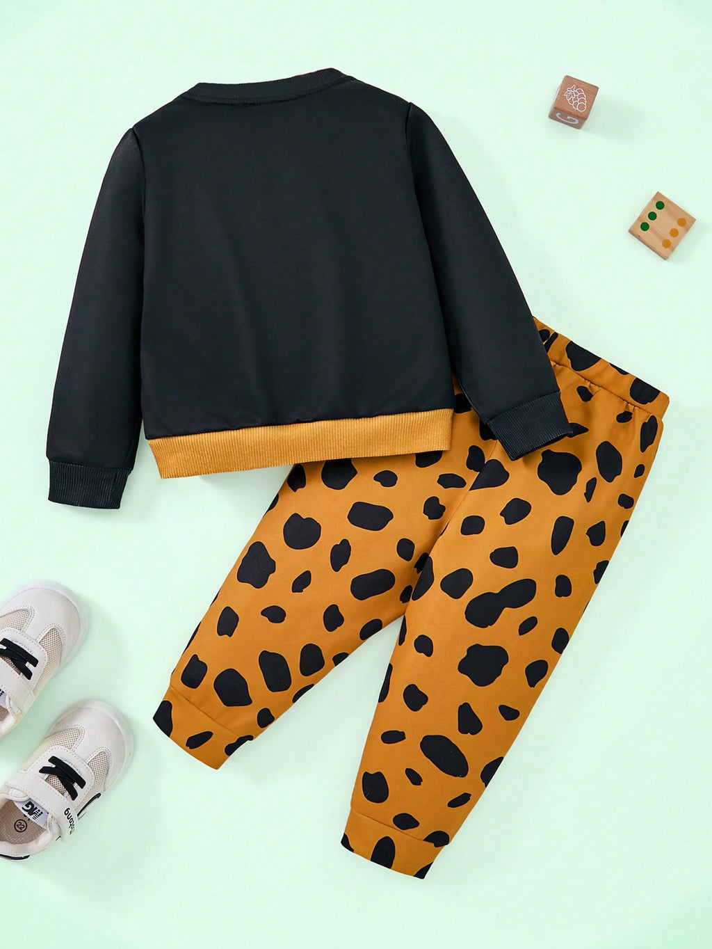 BELLAVOG 2pcs Baby Boy Casual Cute Dog Print Black Sweatshirt And Pants Set, Suitable For Autumn/Winter