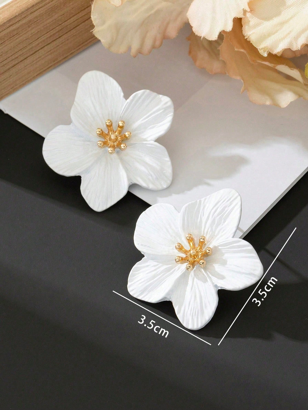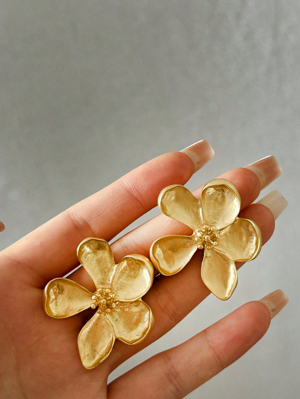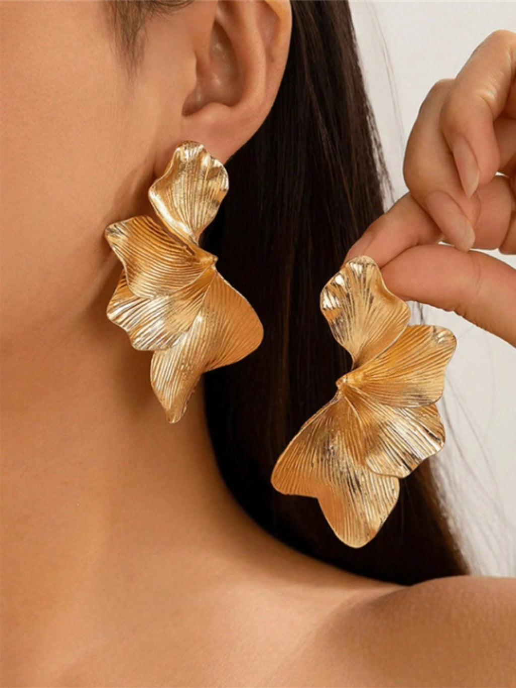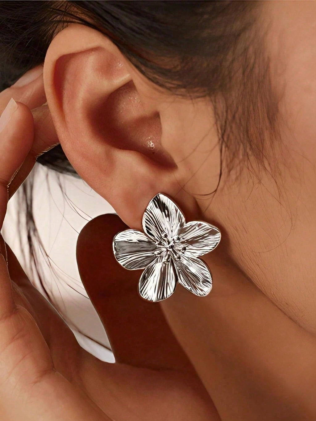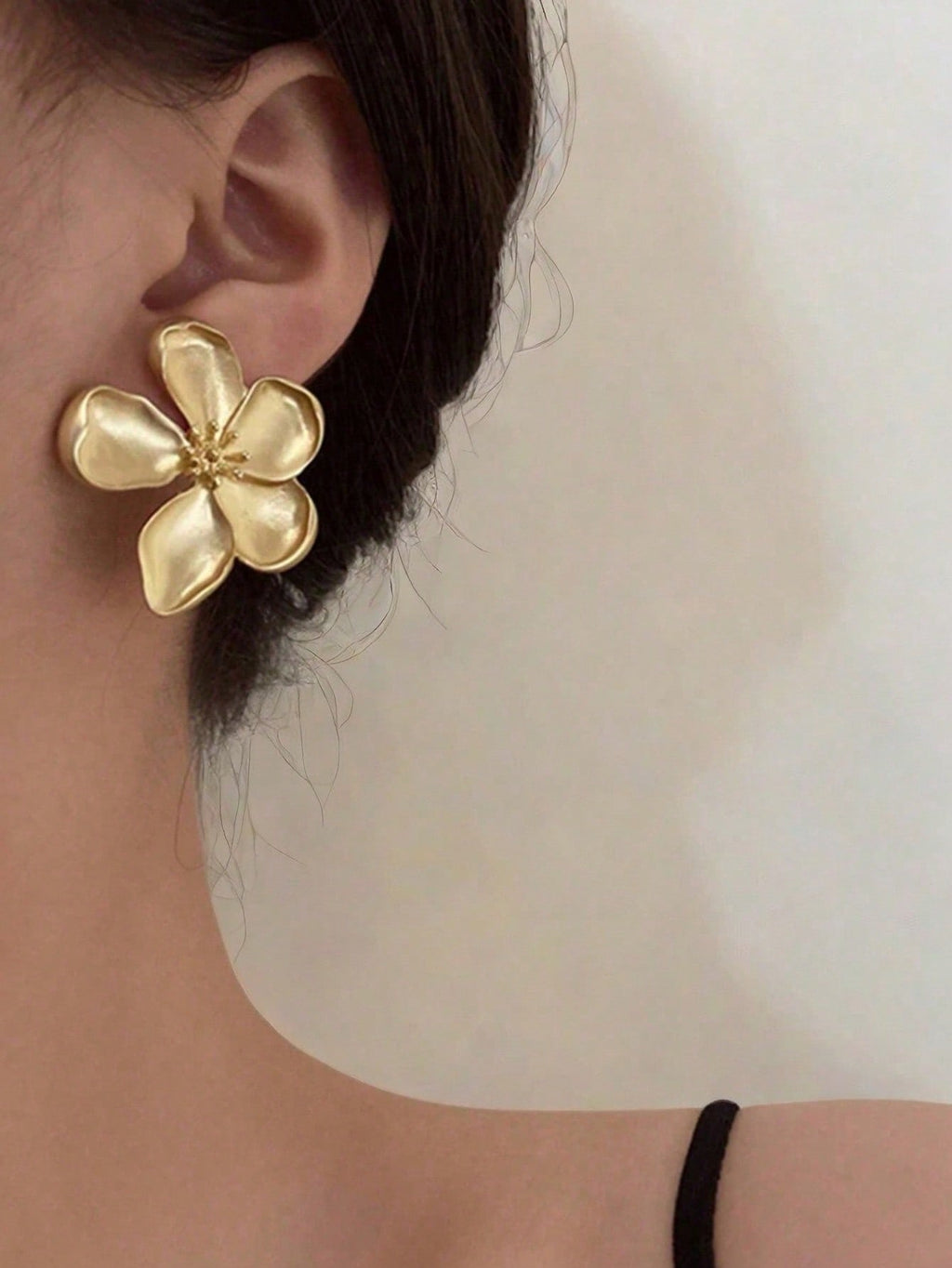 BELLAVOG 2pcs Golden Stainless Steel Women Earrings With Flower
