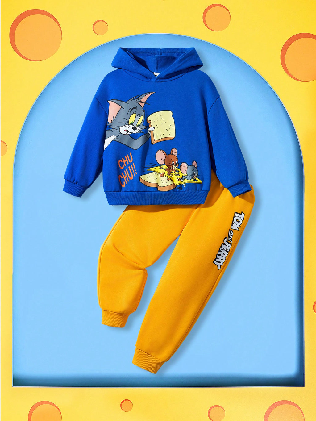 BELLAVOG 2pcs Set Young Boy Cartoon Cat Mouse Print Casual Hooded Sweatshirt And Relaxed Fit Pants Winter Outfit