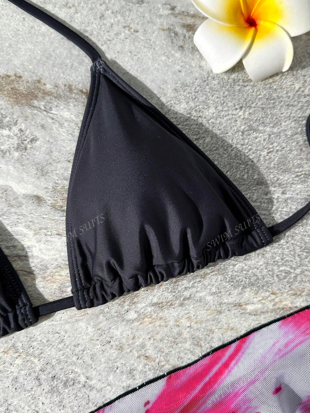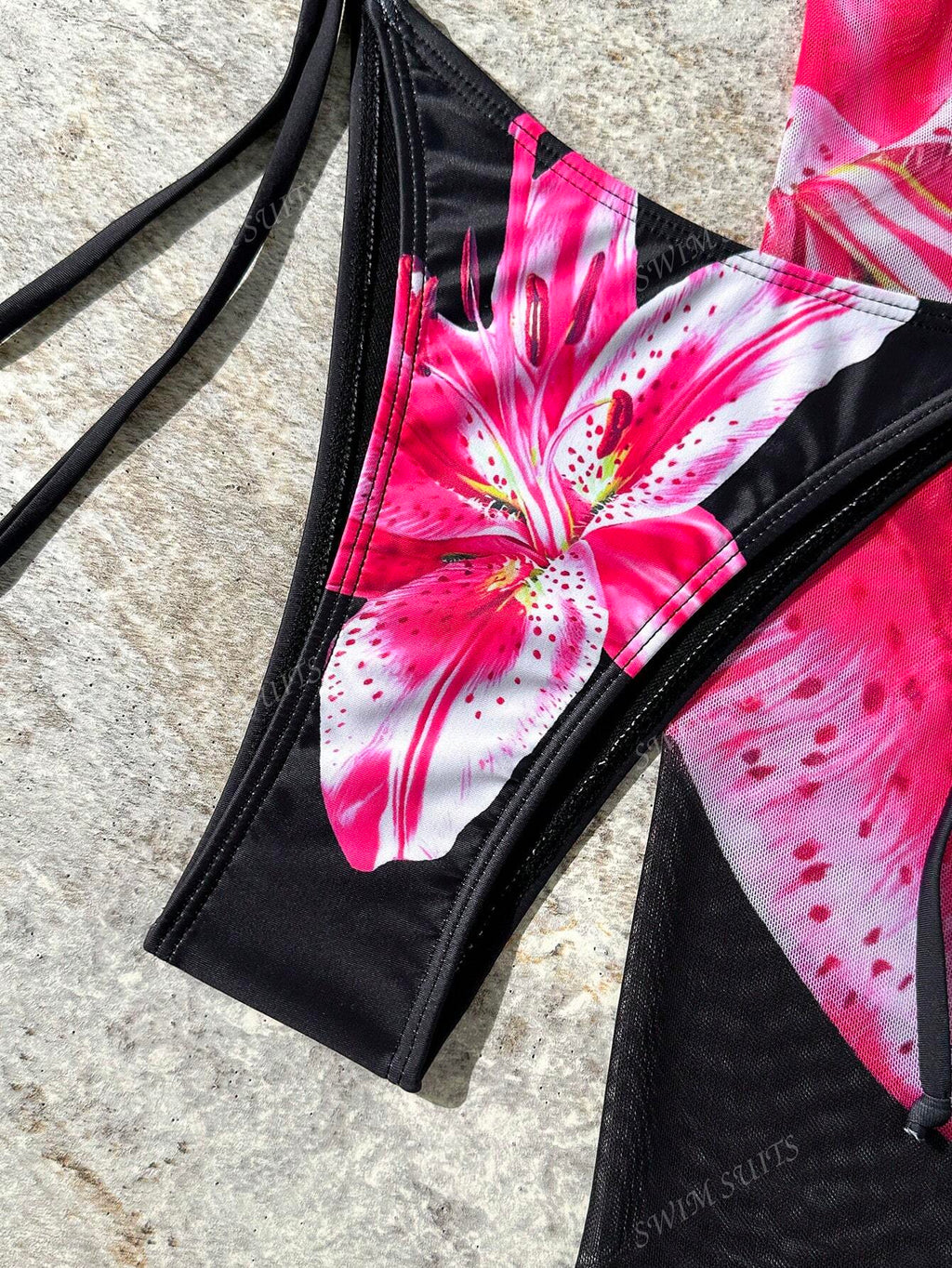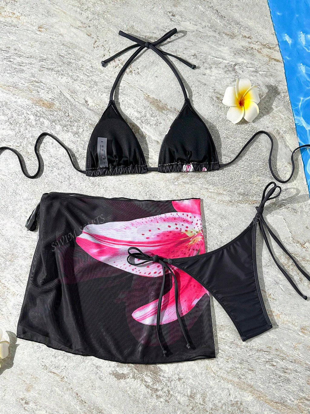 BELLAVOG 3pcs Floral Ombre Print Bikini Set For Women, Adjustable Bikini Top, Tie Side Bottom, And High Coverage Skirt For Beach