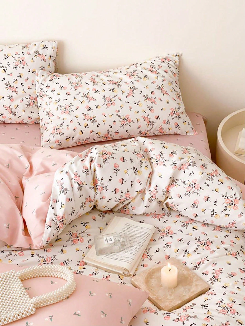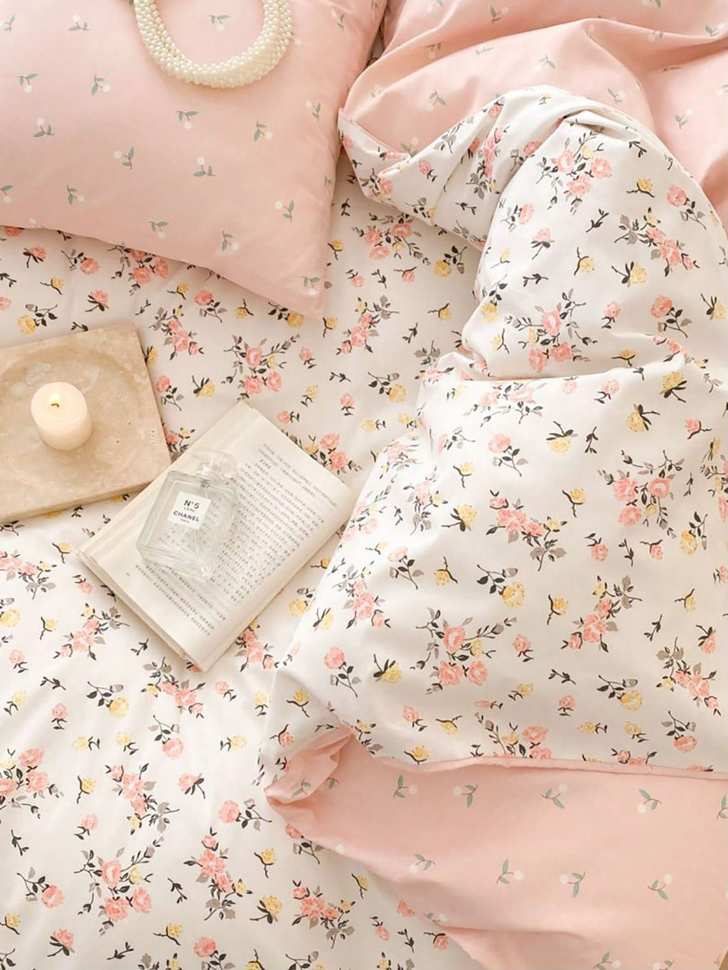 BELLAVOG 3pcs Korean Style Floral Bedding Set, Soft