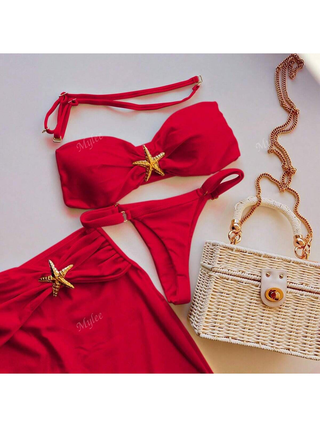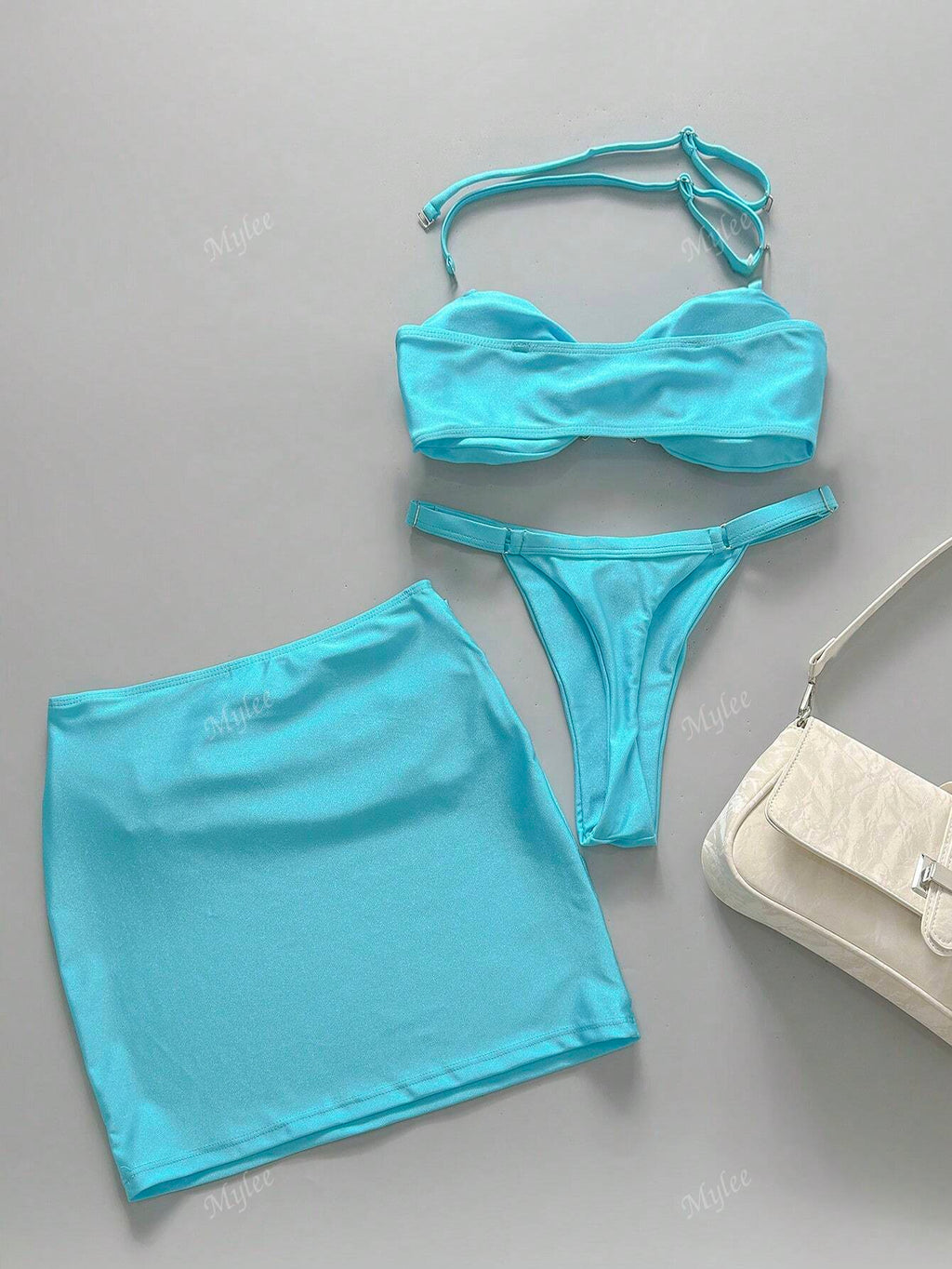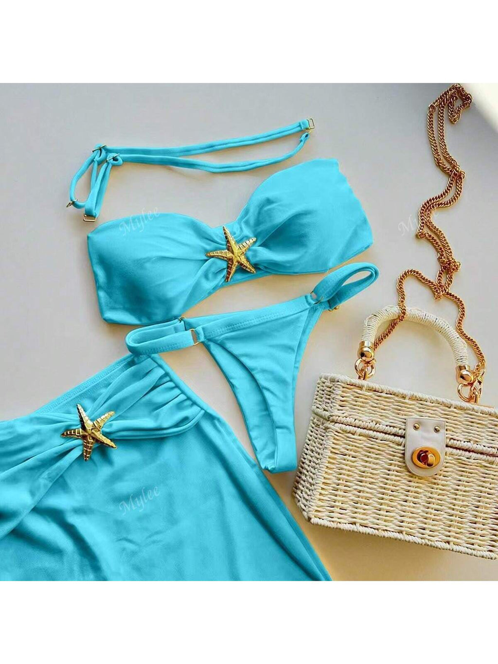 BELLAVOG 3pcs/Set 2025 New Style Sexy Bikini, Metal Decor 2 Pieces Swimwear With Cover Up Skirt For Women, Cross-Border