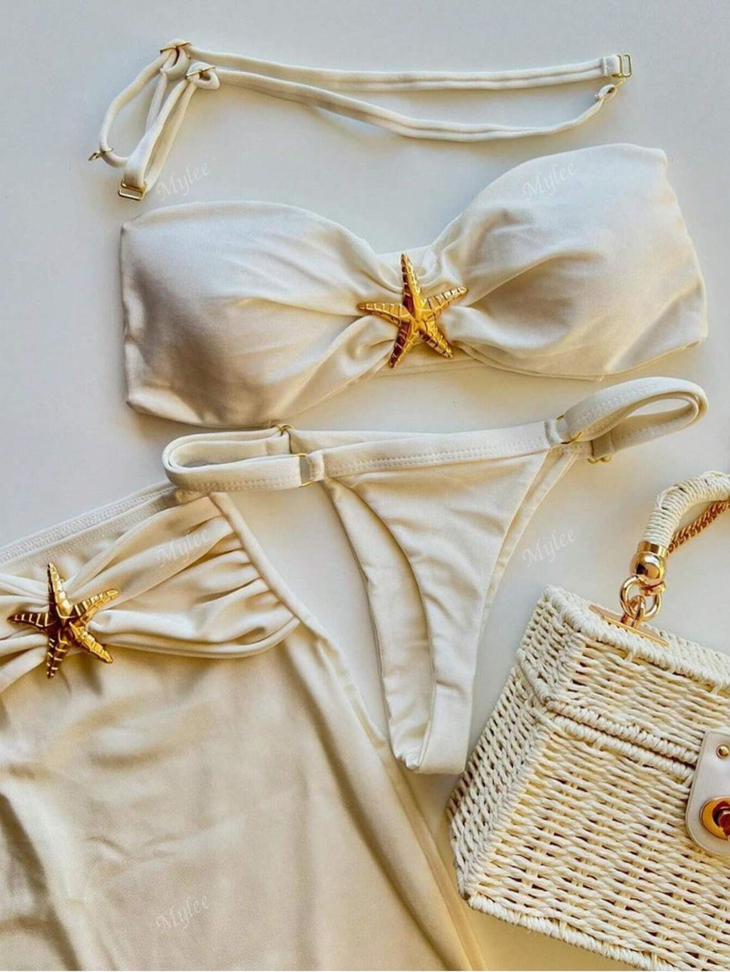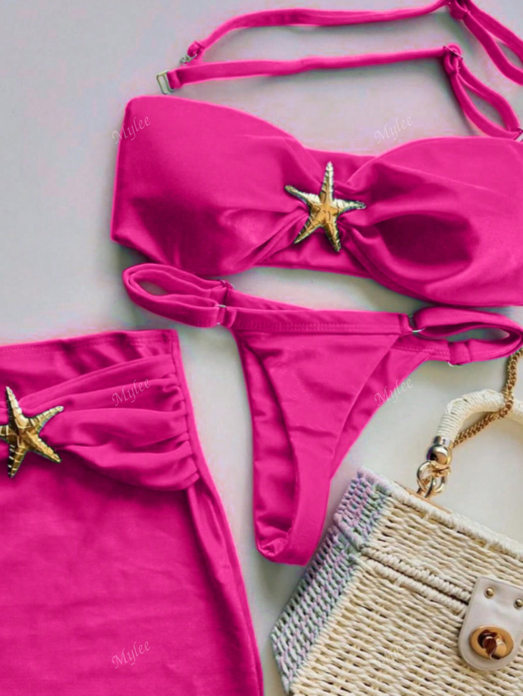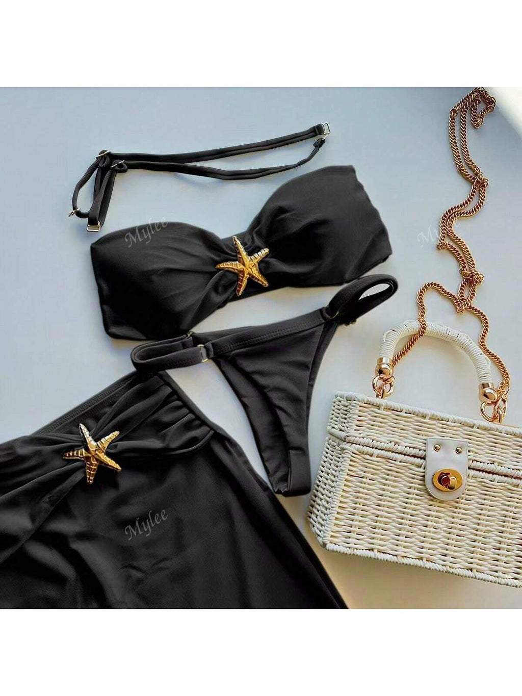 BELLAVOG 3pcs/Set 2025 New Style Sexy Bikini, Metal Decor 2 Pieces Swimwear With Cover Up Skirt For Women, Cross-Border