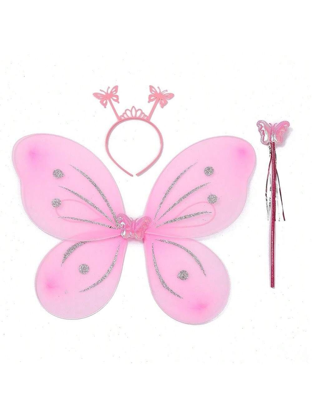 BELLAVOG 3Pcs/Set Kids Butterfly Headband Wings Wand Girls Summer Photography Outfit Children Yellow Green Purple Pink Fairy Tale Props