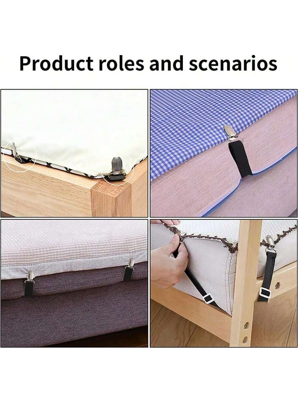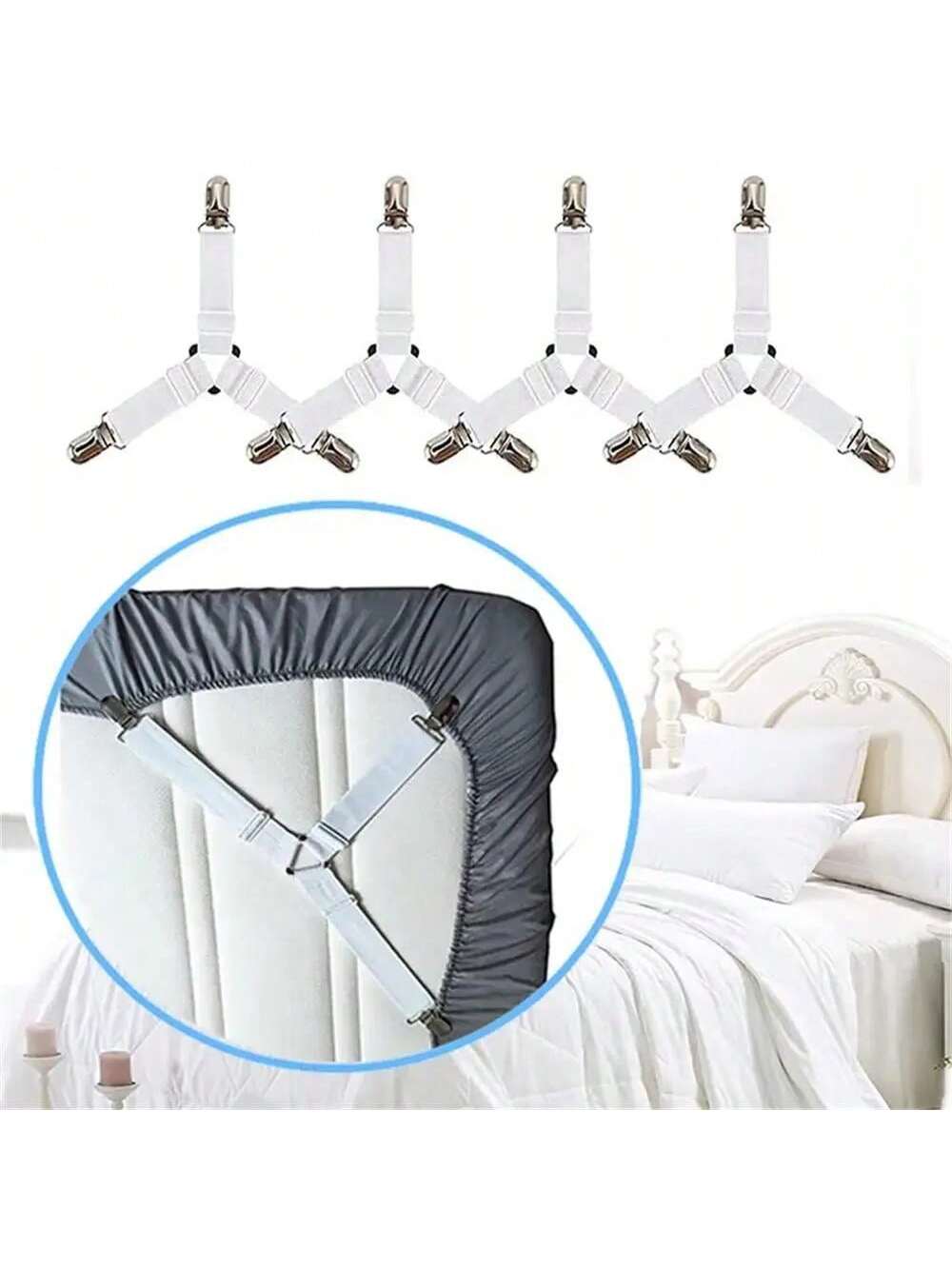 BELLAVOG 4Pcs Adjustable Bed Sheet Grippers Belt Fastener Bed Sheet Clips Mattress Cover Blankets Quilt Holder Organize Gadgets