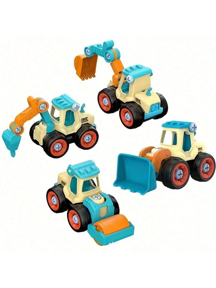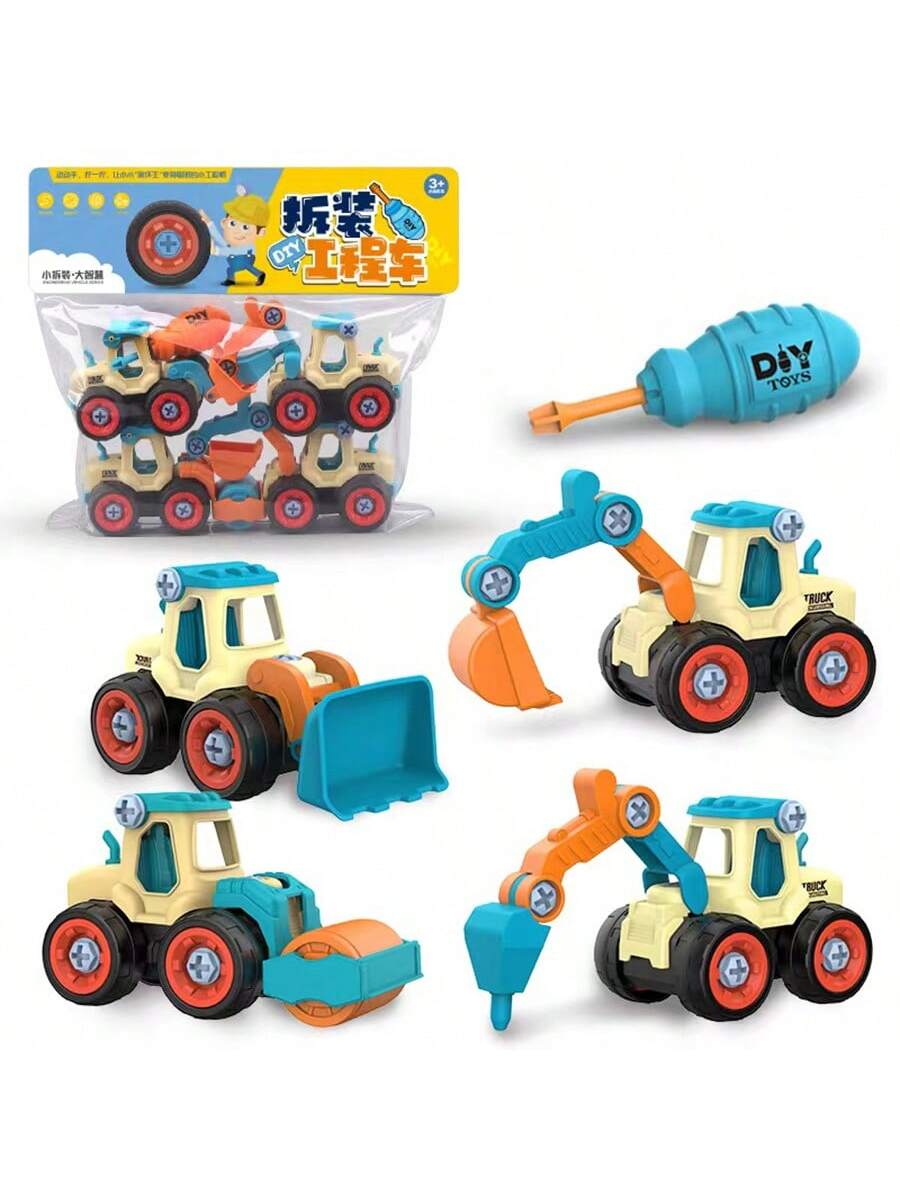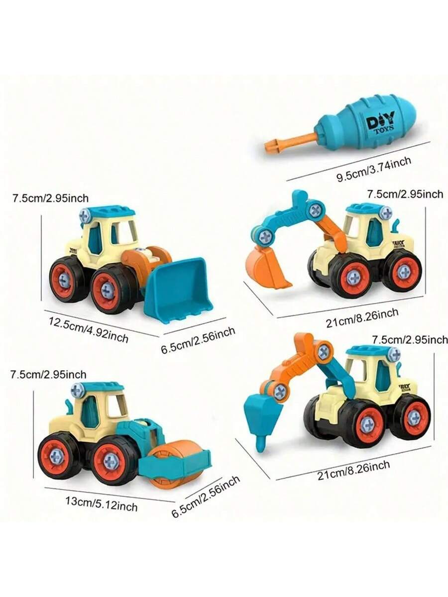 BELLAVOG 4pcs Engineering Cars Plus 1pc Screwdriver - Removable Screw Assembly, Disassembly, And Rebuild Educational Toy With Excavator Splicing Building Blocks - Perfect Gift For Christmas, New Year, And Birthday