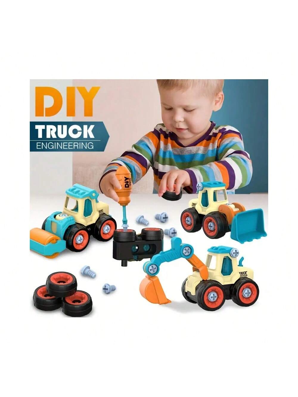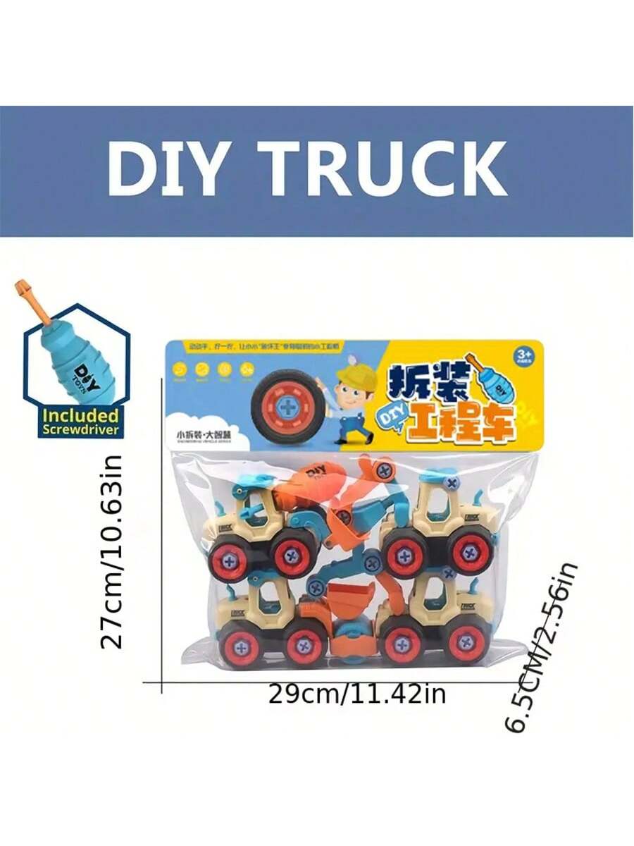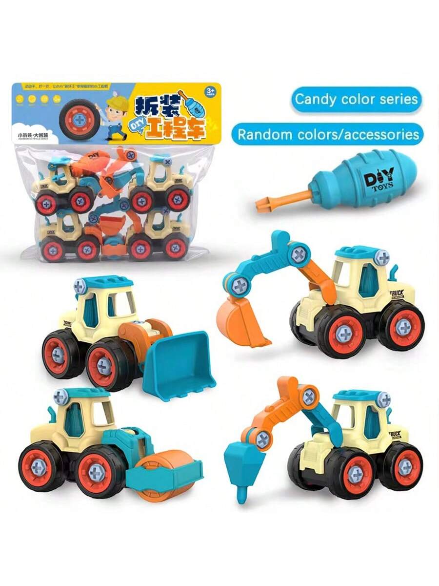 BELLAVOG 4pcs Engineering Cars Plus 1pc Screwdriver - Removable Screw Assembly, Disassembly, And Rebuild Educational Toy With Excavator Splicing Building Blocks - Perfect Gift For Christmas, New Year, And Birthday