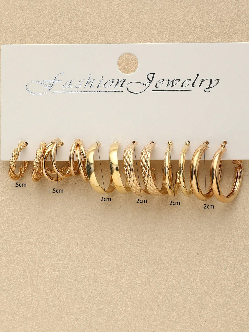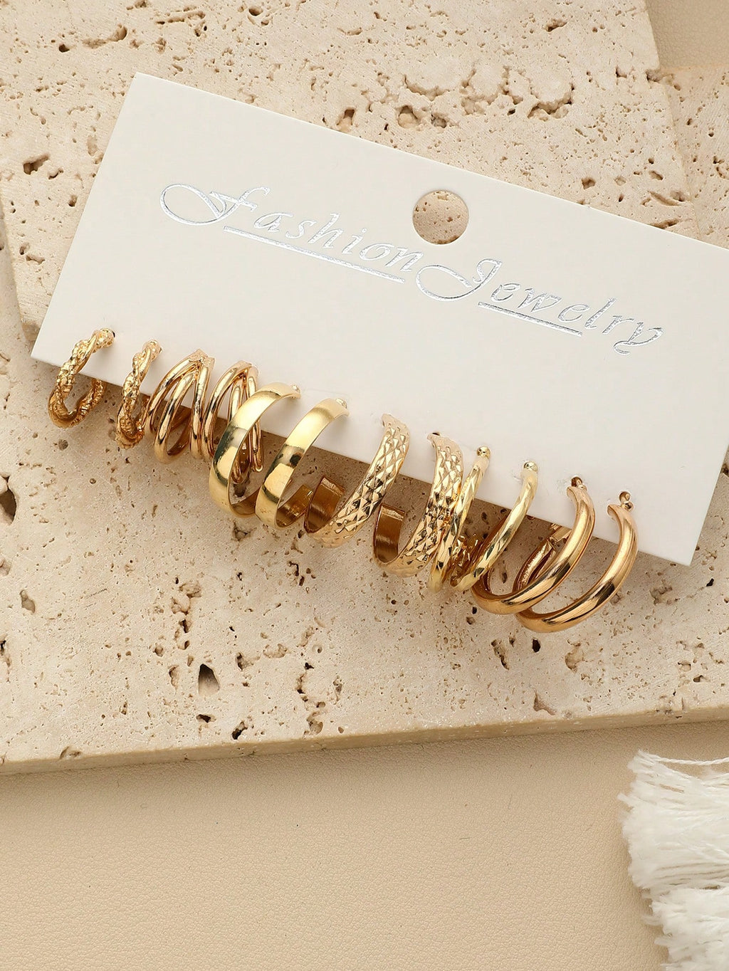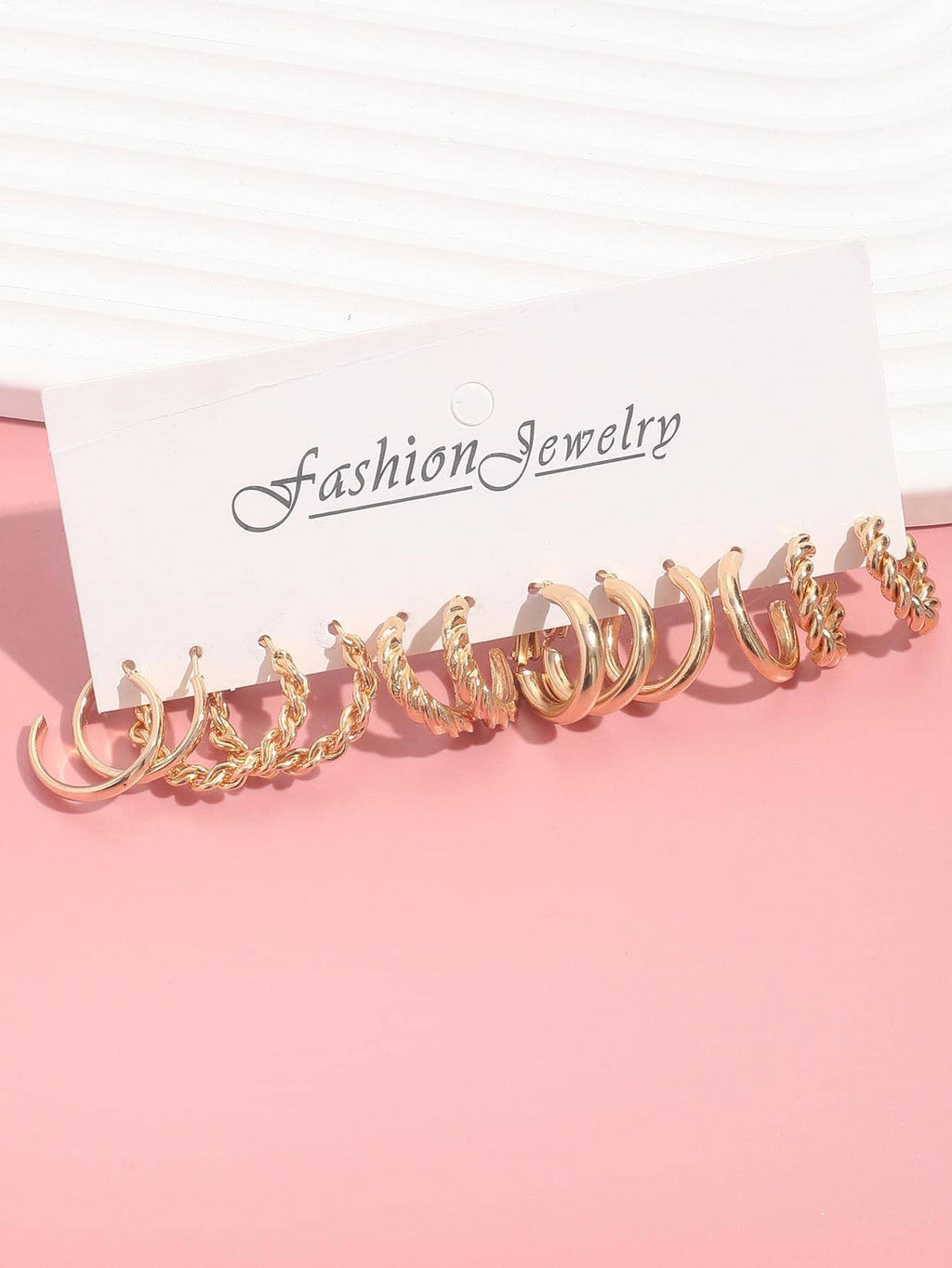 BELLAVOG 6pairs/set Simple Geometric Twisted Wire Hoop Earrings With High-End Minimalist Style