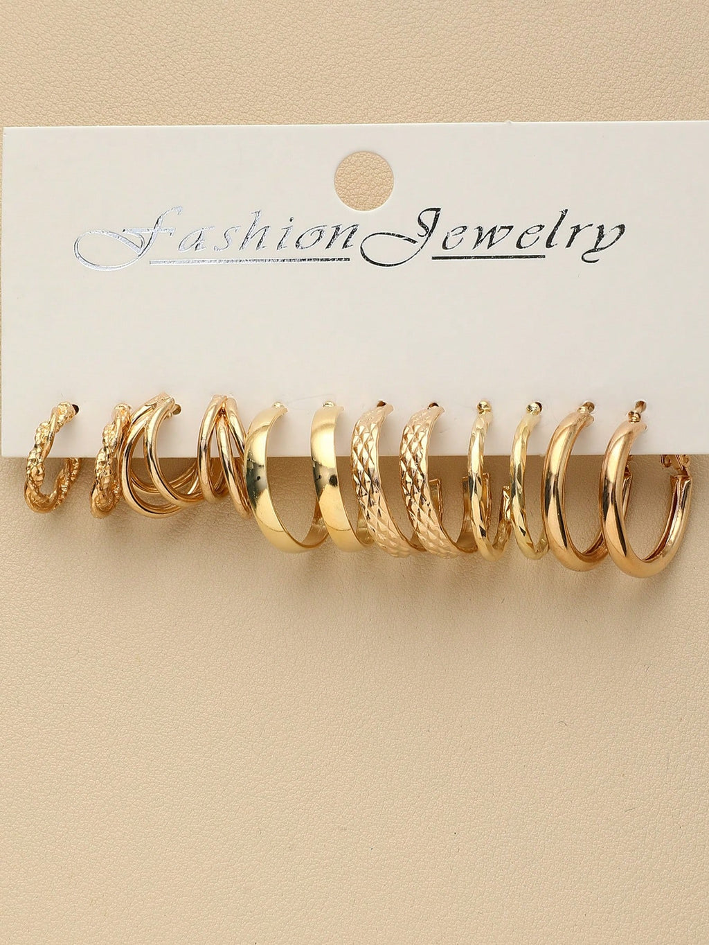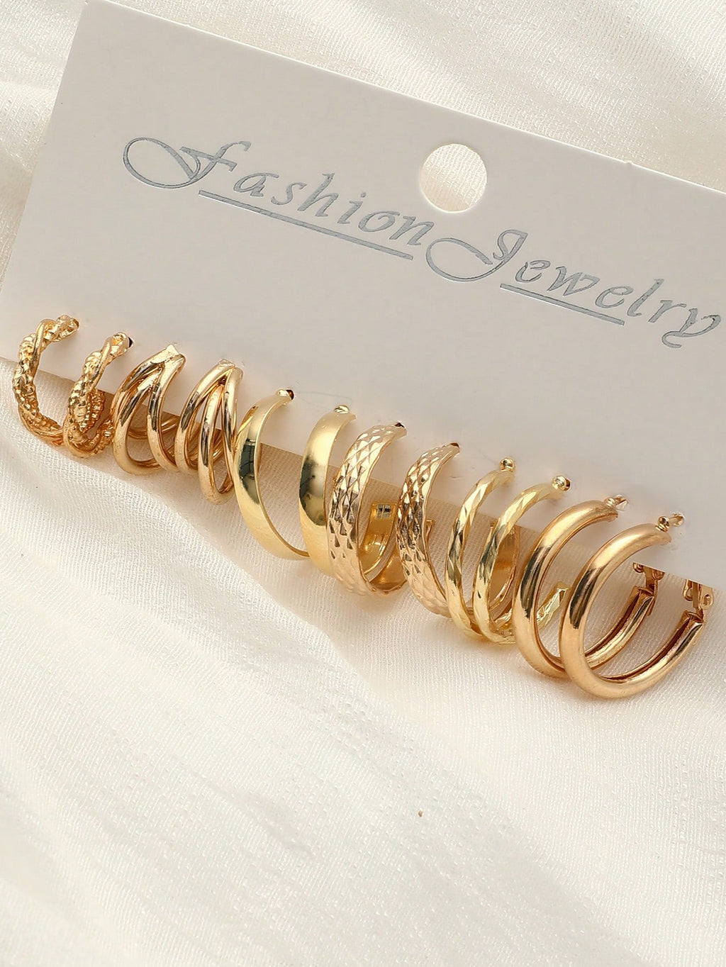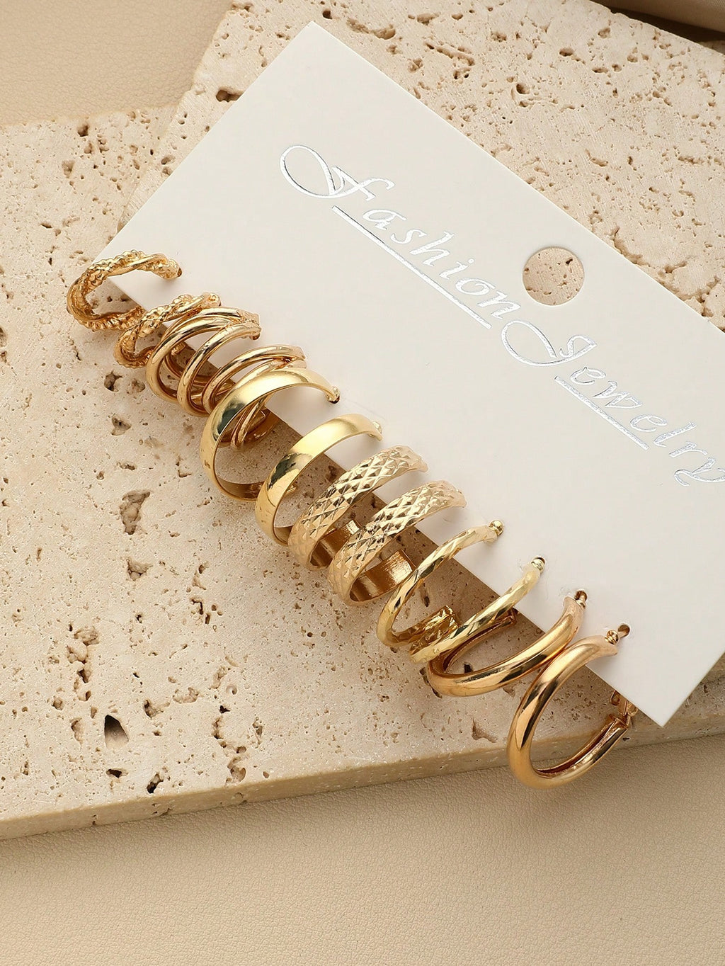 BELLAVOG 6pairs/set Simple Geometric Twisted Wire Hoop Earrings With High-End Minimalist Style