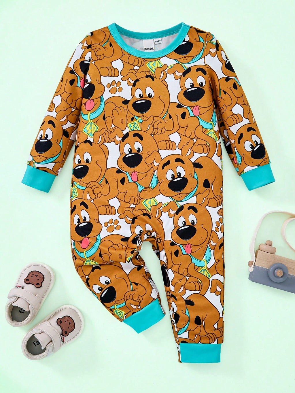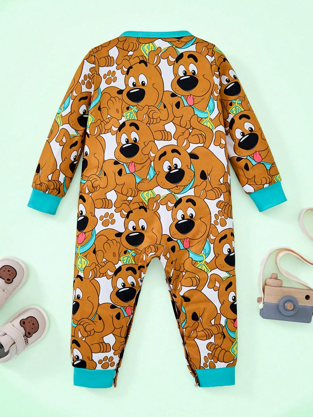 BELLAVOG Baby Boy Cartoon Puppy Allover Print Cute Casual Long Sleeve Jumpsuit