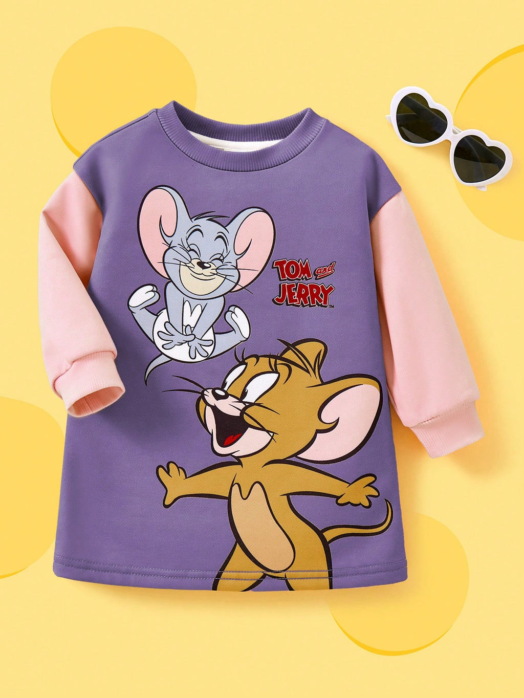 BELLAVOG Baby Girl Cartoon Mouse Print Contrast Color Casual Comfy Long Sleeve Dress