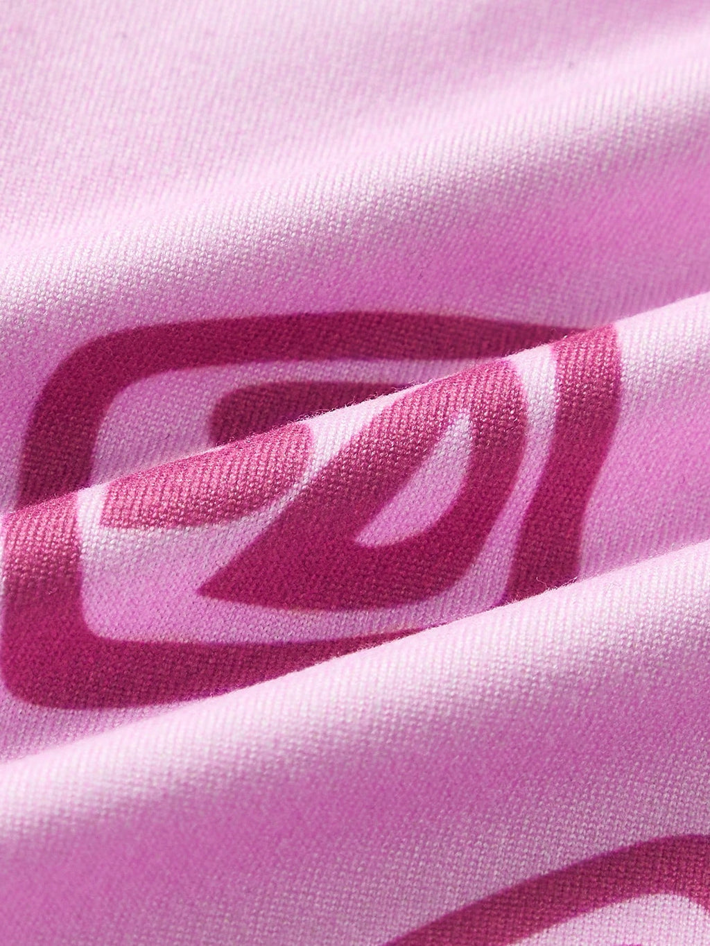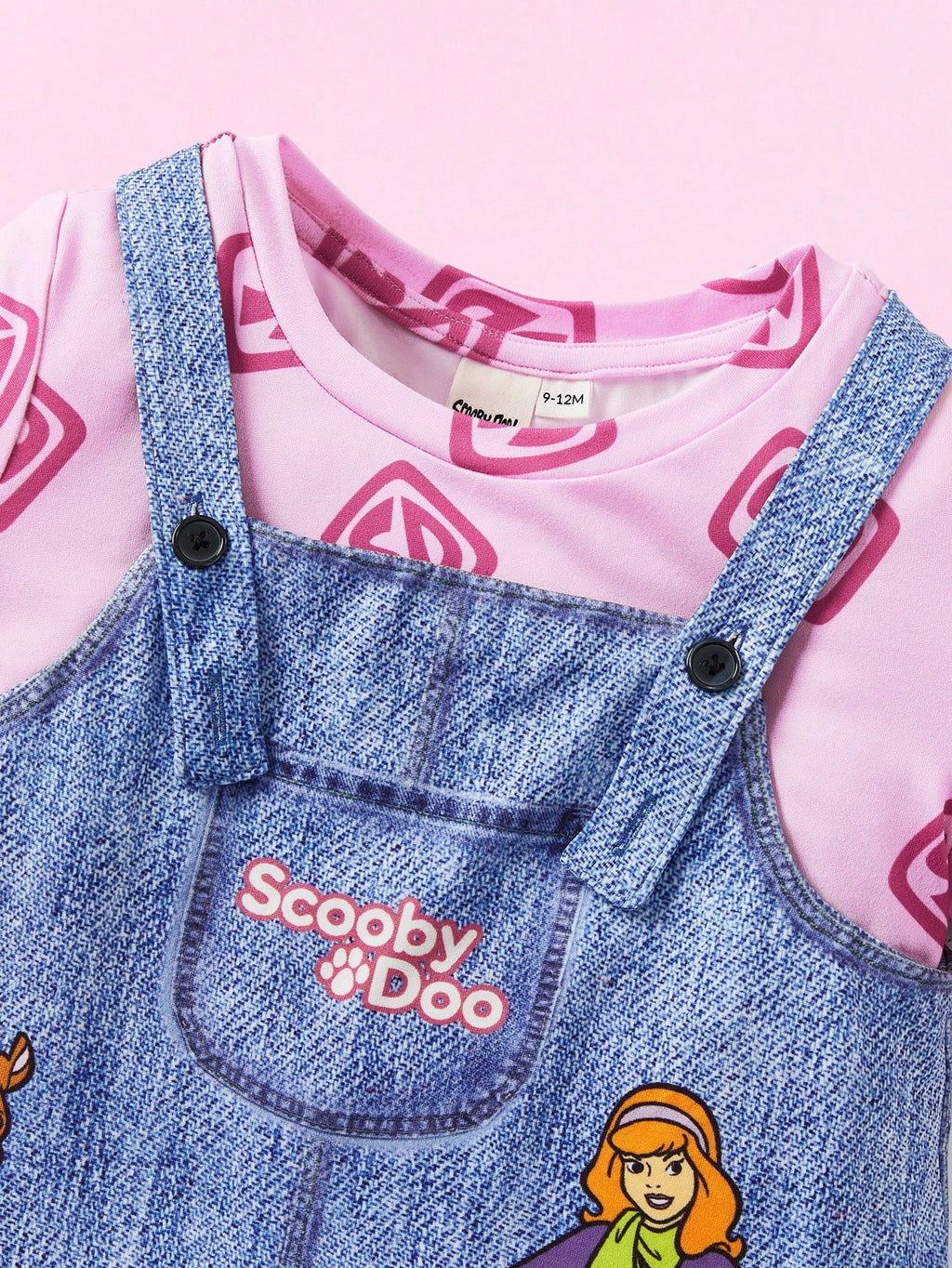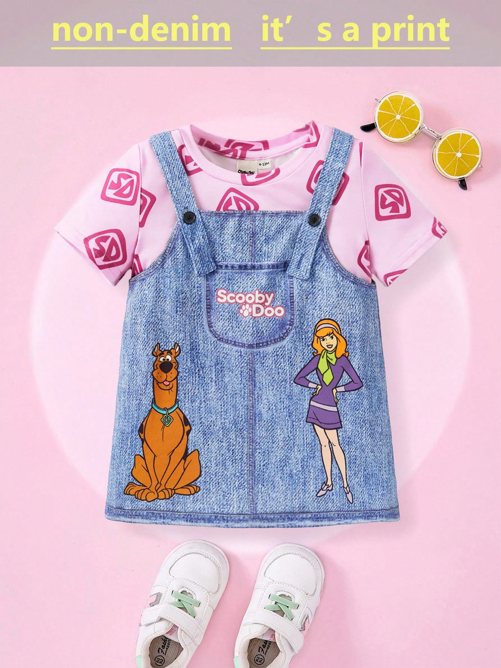BELLAVOG Baby Girl Pink Allover Print Knitted Round Neck Short Sleeve T-Shirt And Cartoon Character