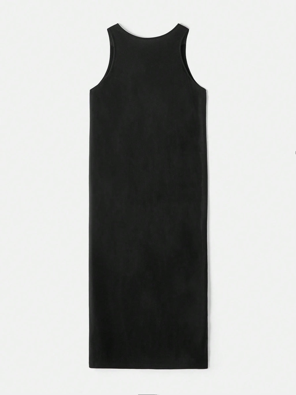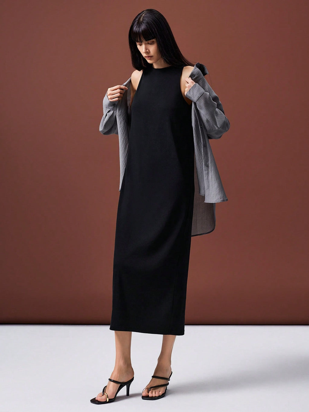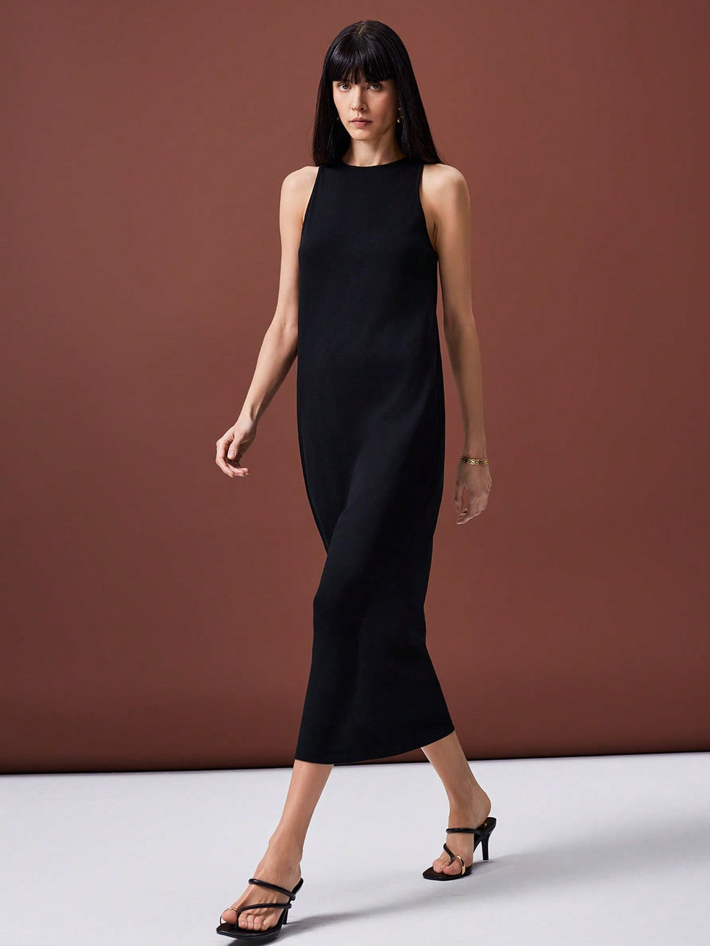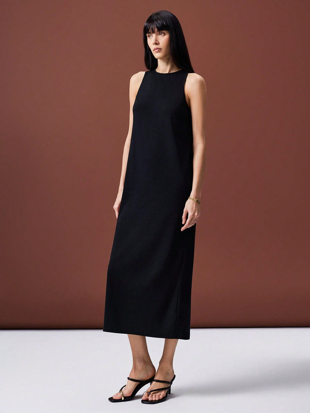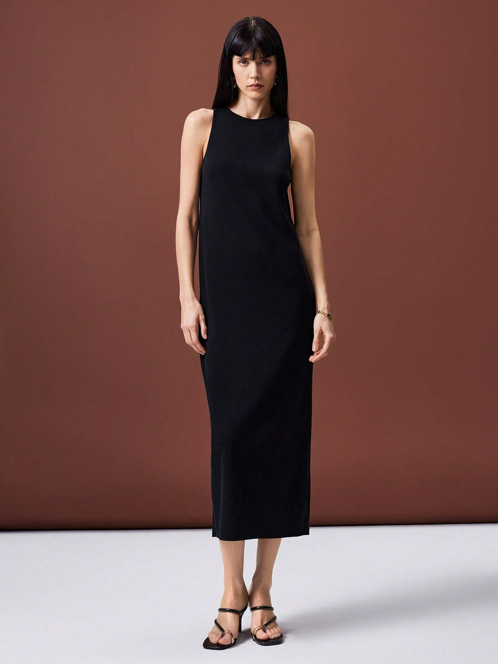 BELLAVOG Black Minimalist V-Neck Tie-Up Sleeveless Dress For Commute