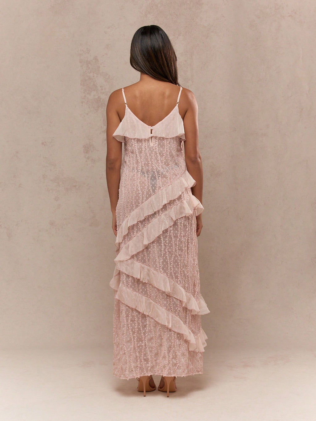 BELLAVOG Boho Sheer Lace Ruffle Detail Cami Maxi Dress