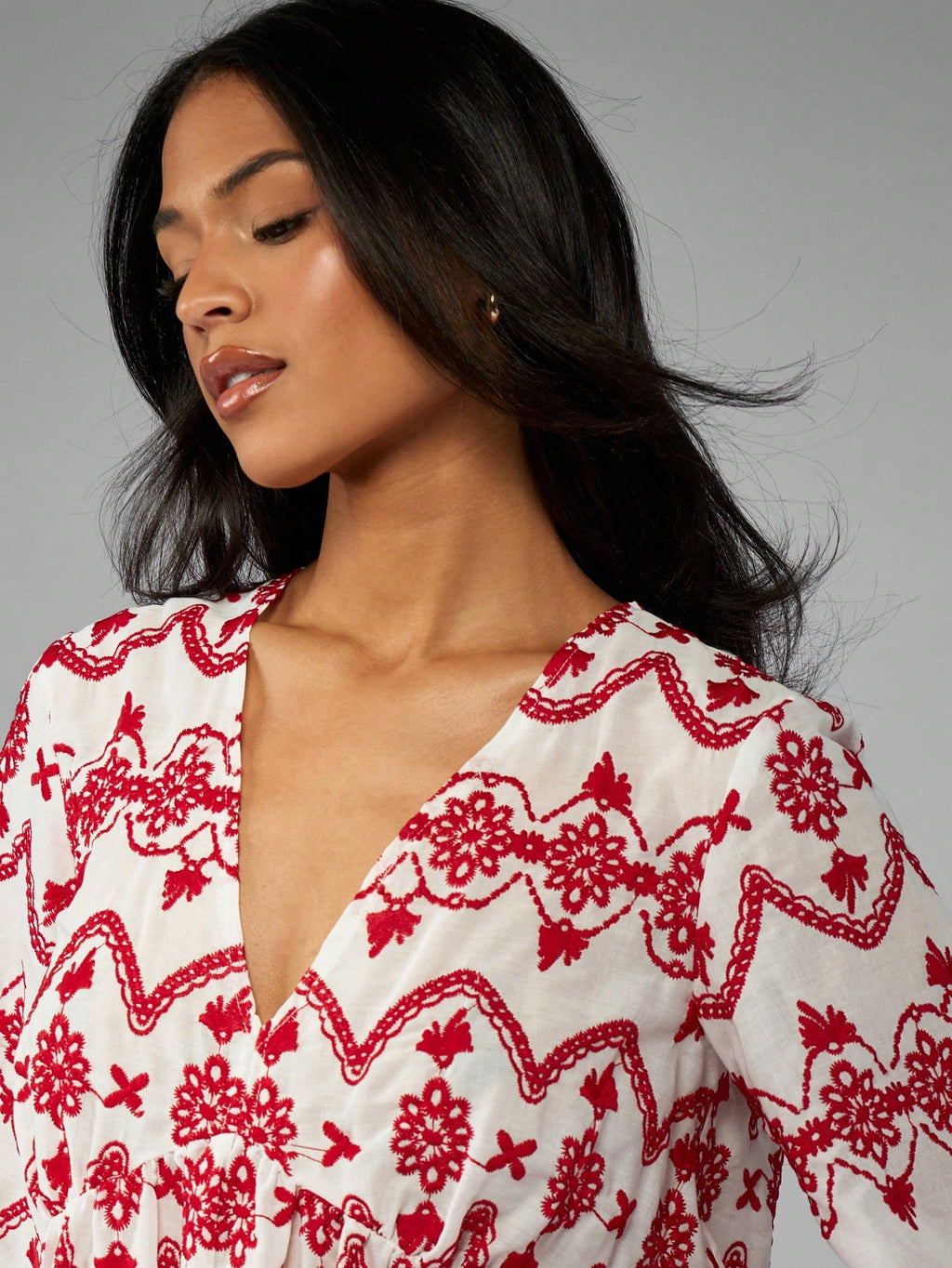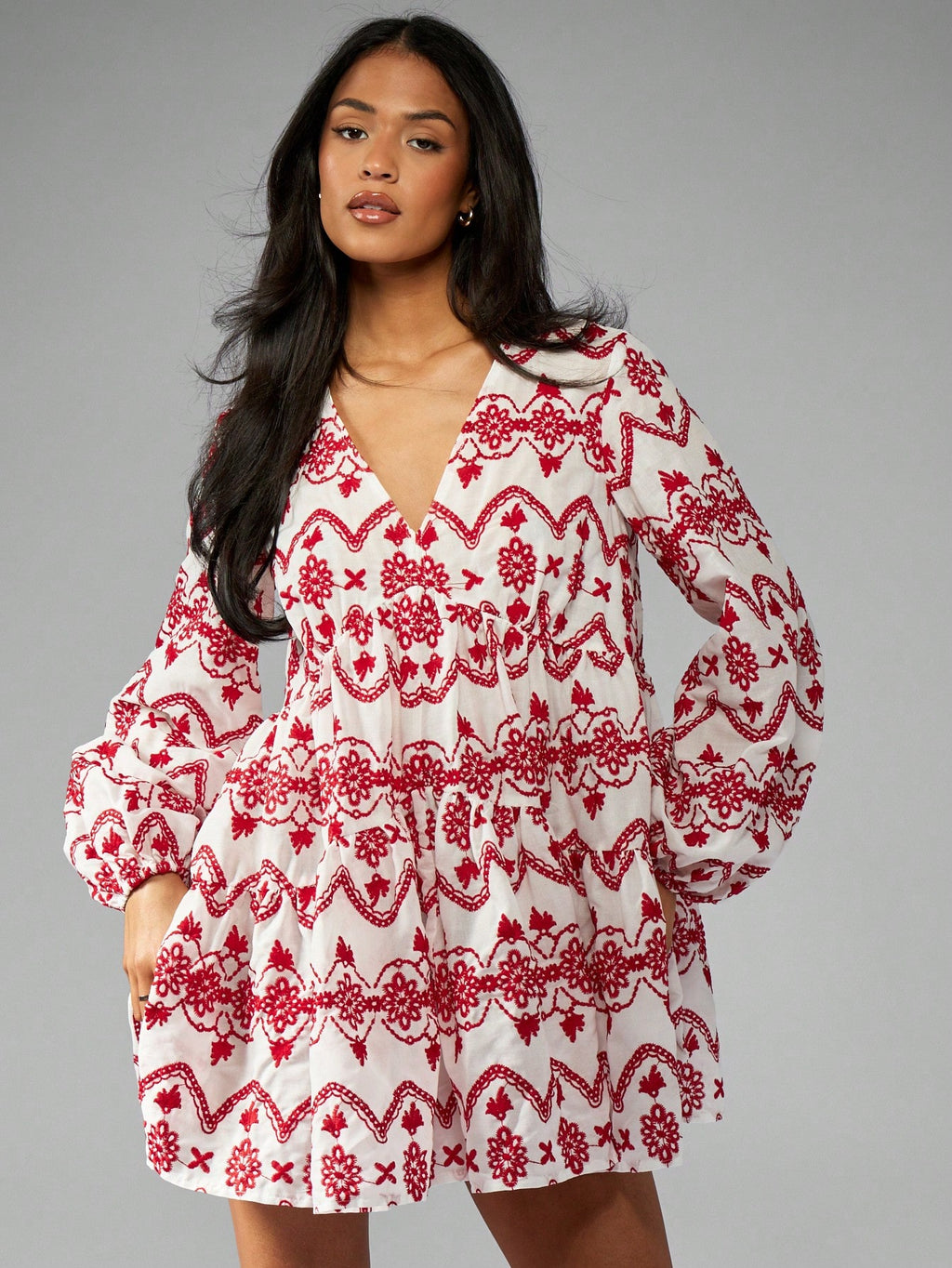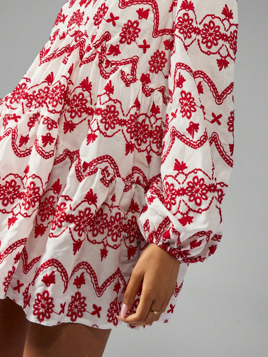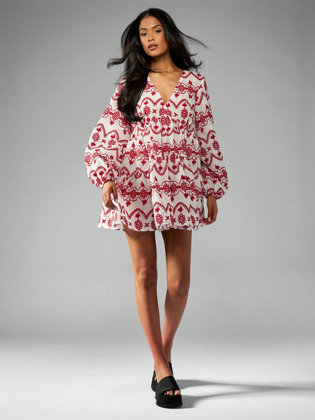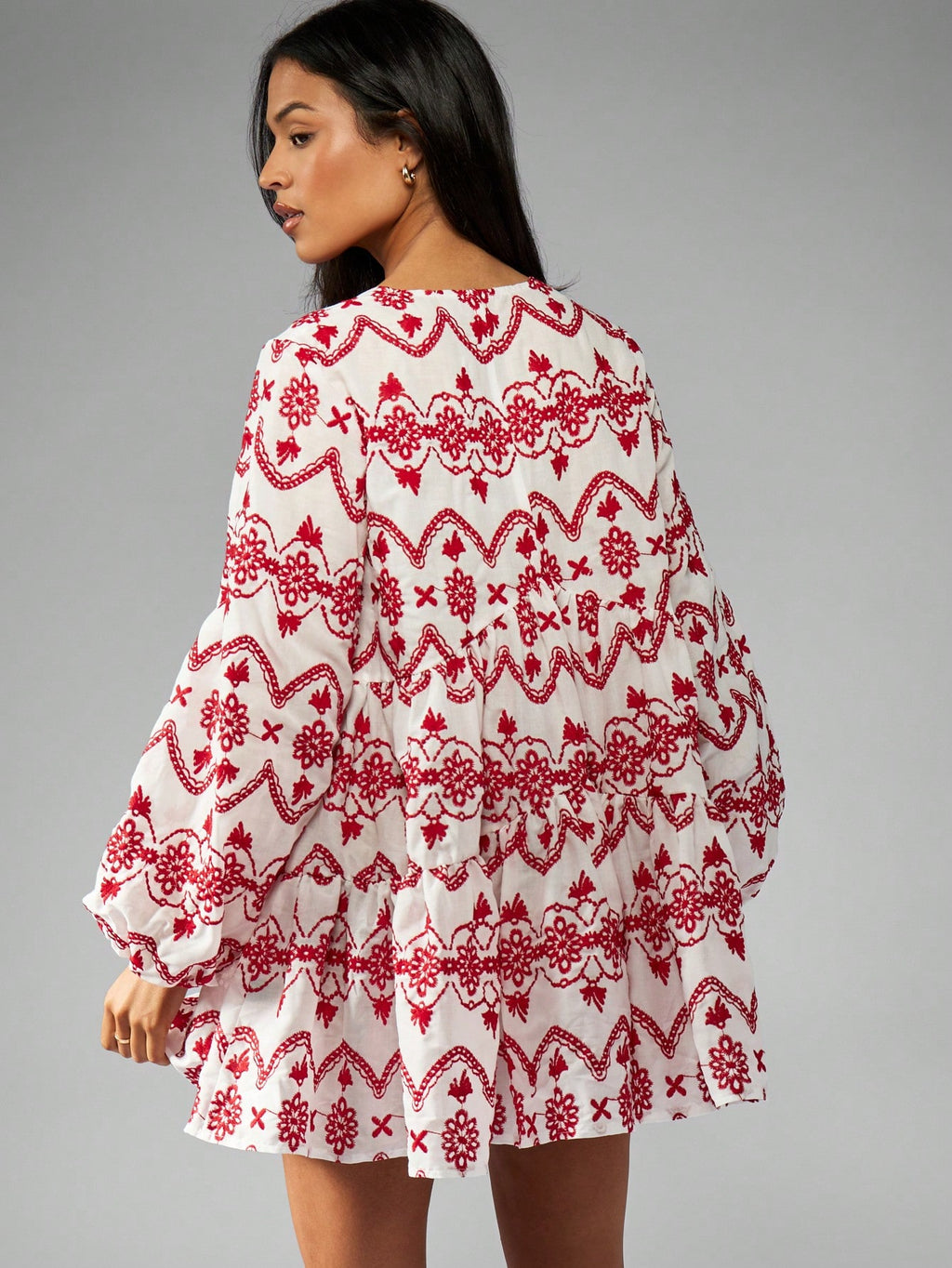 BELLAVOG Brodarie Tiered Ruffle Mini Dress With Volume Balloon Sleeves