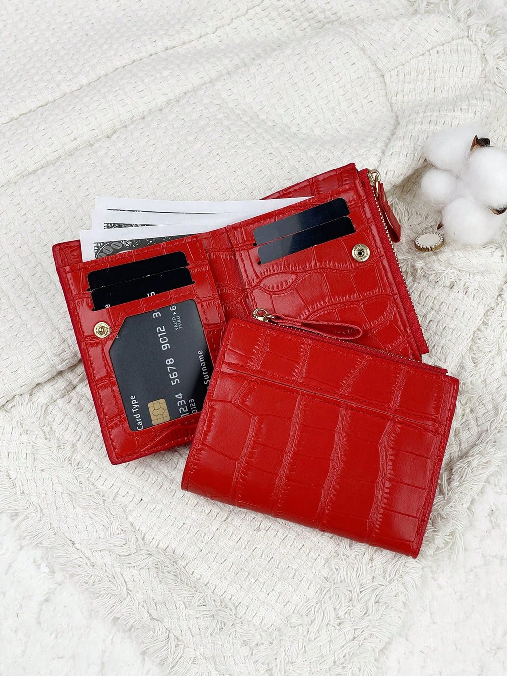 BELLAVOG Burgundy Bag Charry Red Bag Wine Red Bag,Letter Detail Fold Over Small Wallet Pocket Wallet Small Purse Bifold Slim Women Wallet Lightweight Portable Credit Card Key Case Short Wallet Cute Modern Fashion
