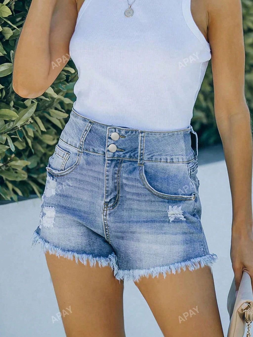 BELLAVOG Button Fly High Waisted Ripped Raw Hem Denim Shorts