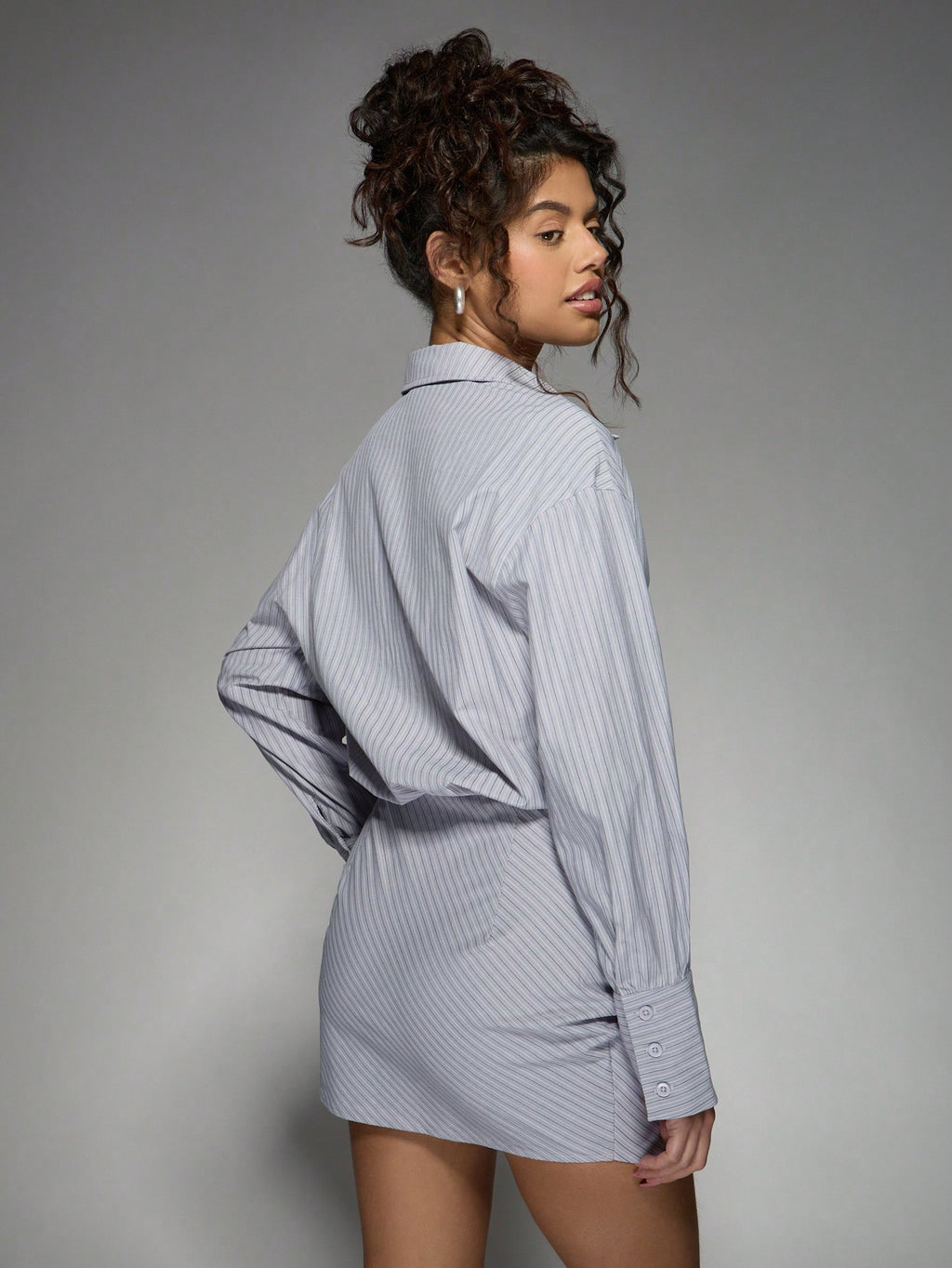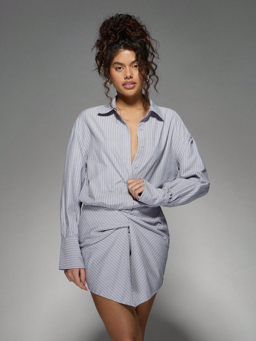 BELLAVOG Chic Button-Down Striped Shirt Dress With Twisted Front Detail Long Sleeve Professional Mini Length Office Wear Party Cocktail Evening Fashion