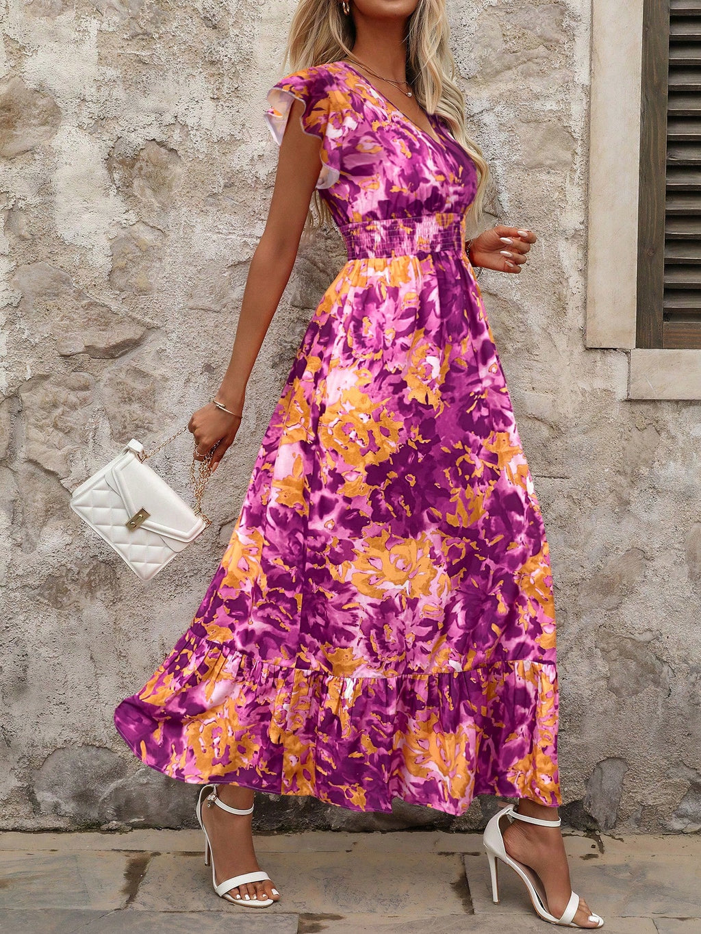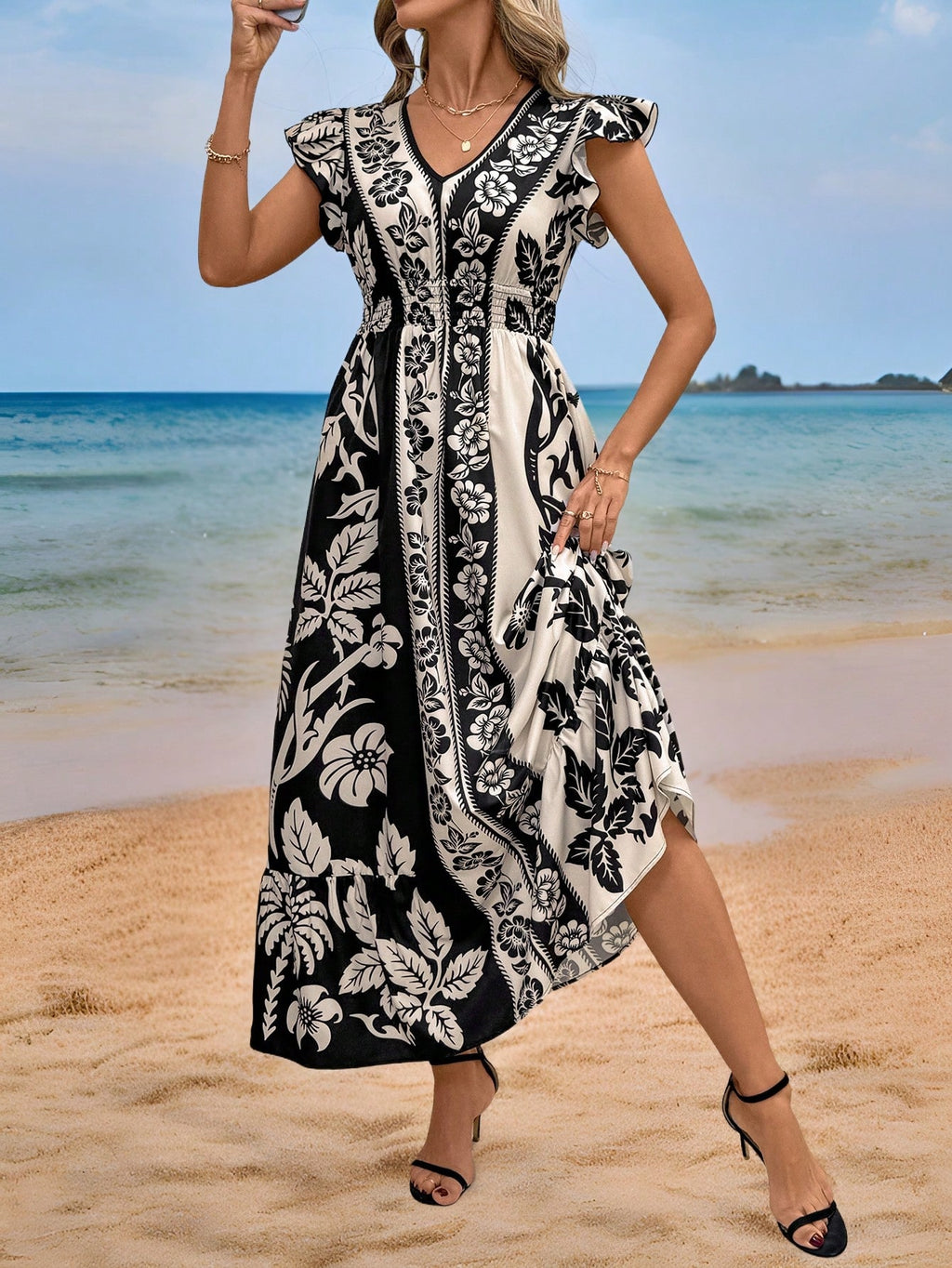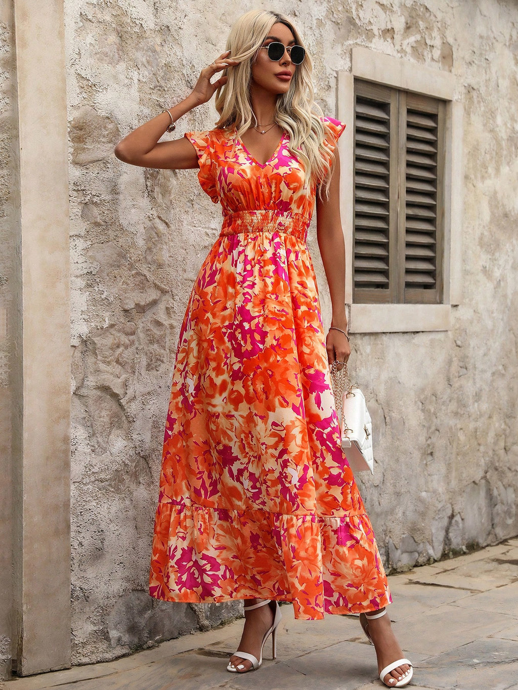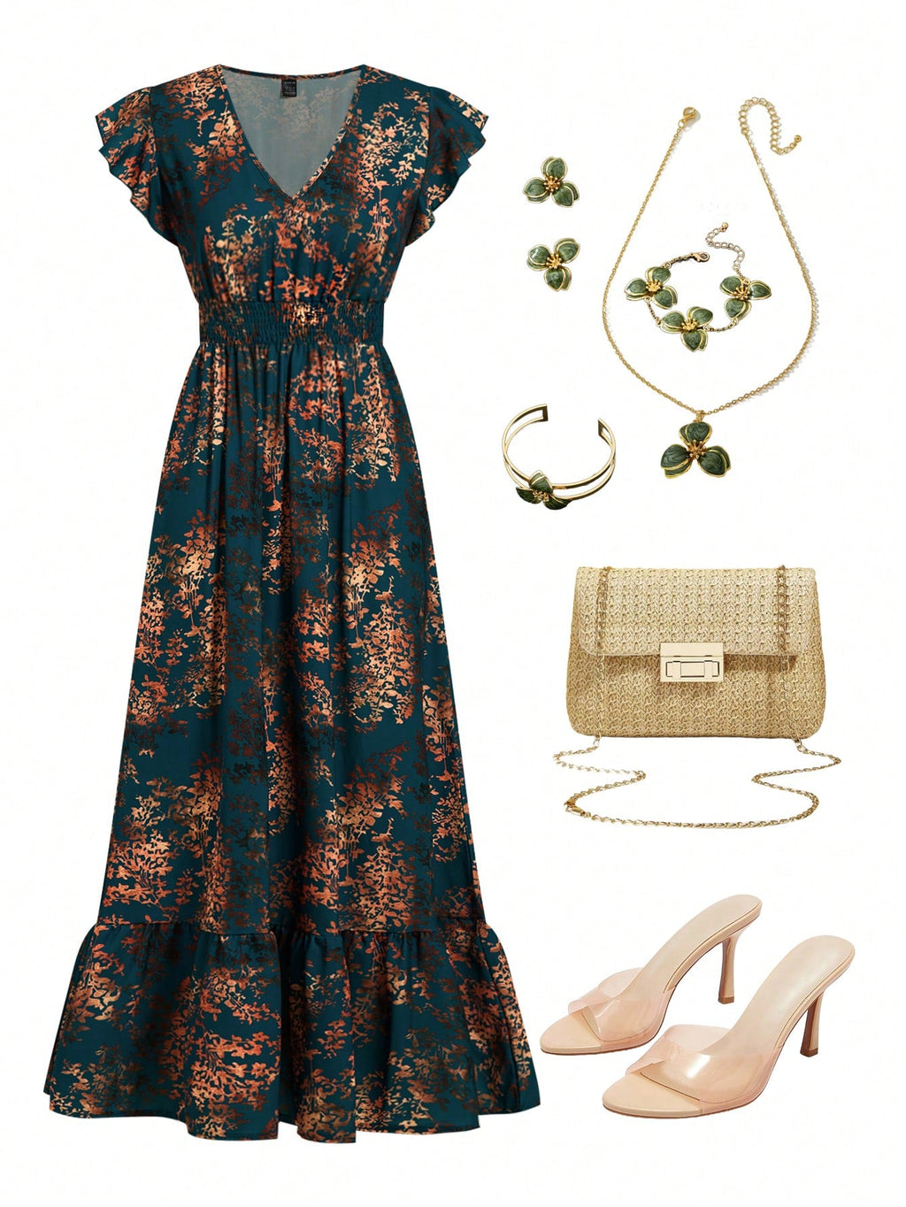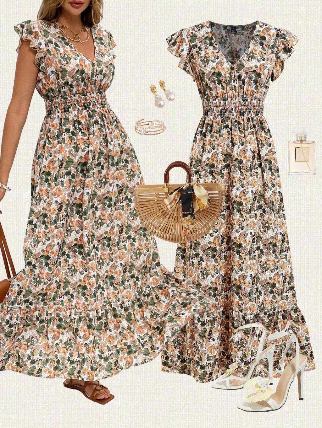 BELLAVOG Clasi Green Floral Print Summer Long Dress For Women,Summer Dresses For Women