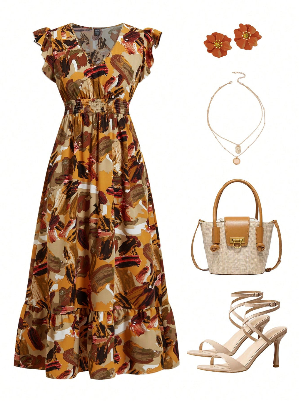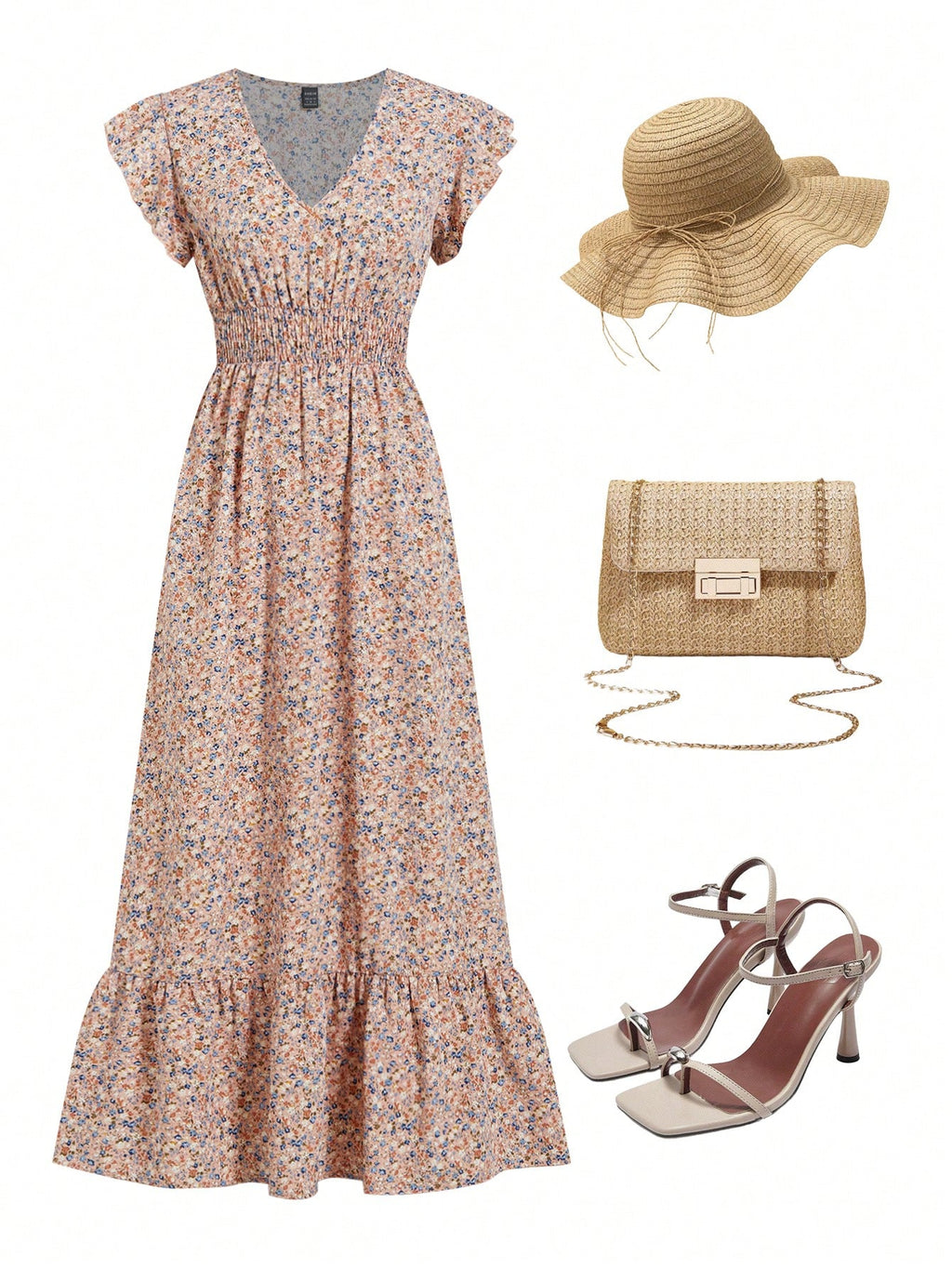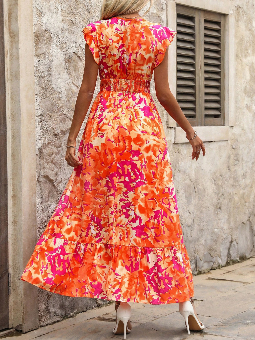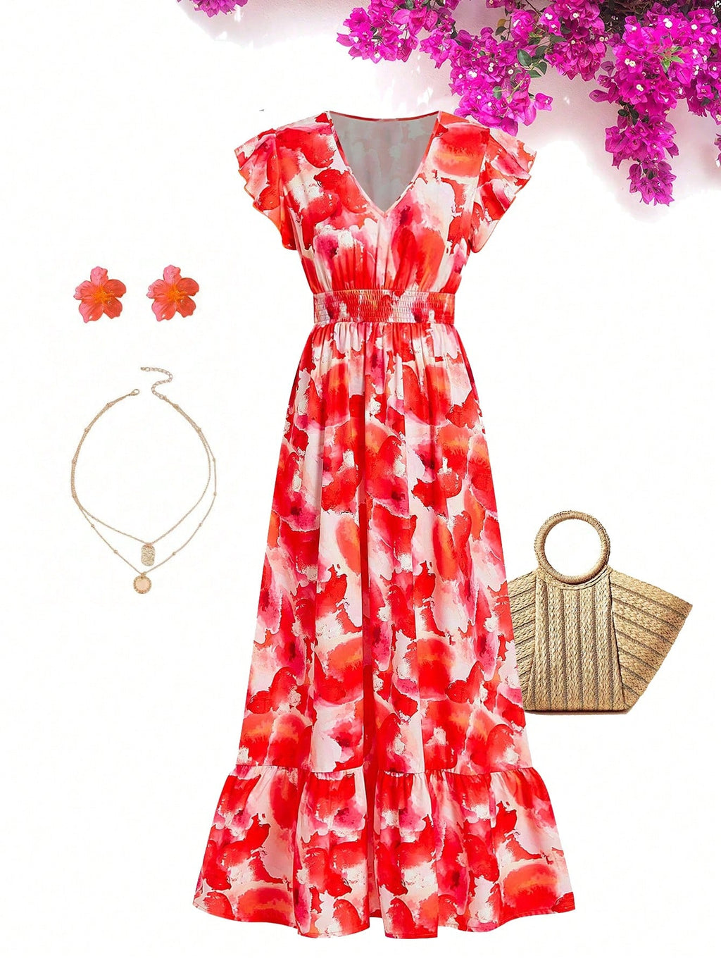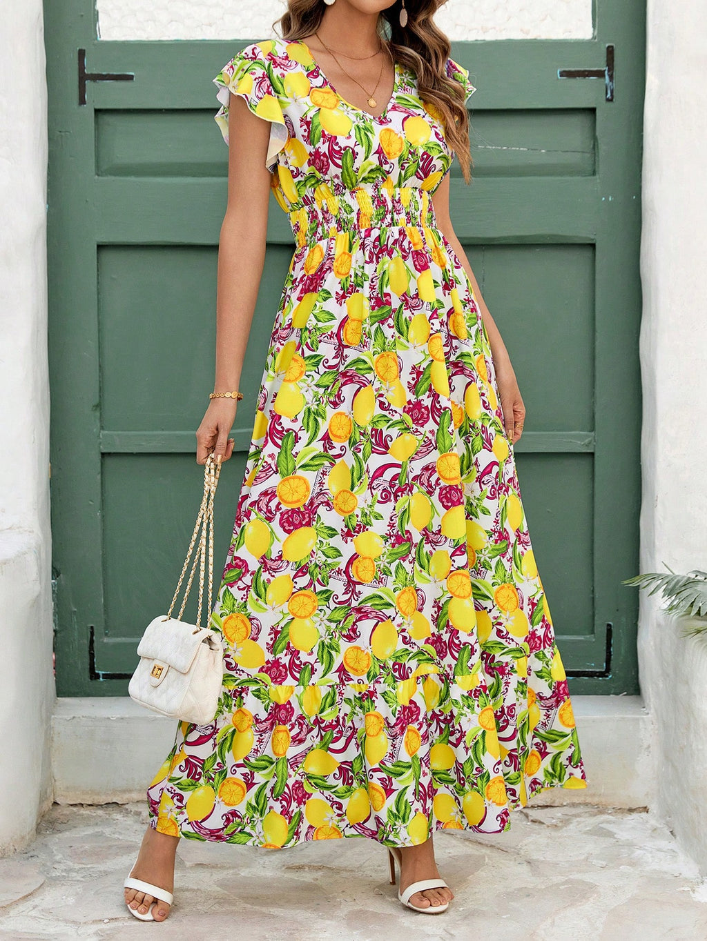 BELLAVOG Clasi Green Floral Print Summer Long Dress For Women,Summer Dresses For Women