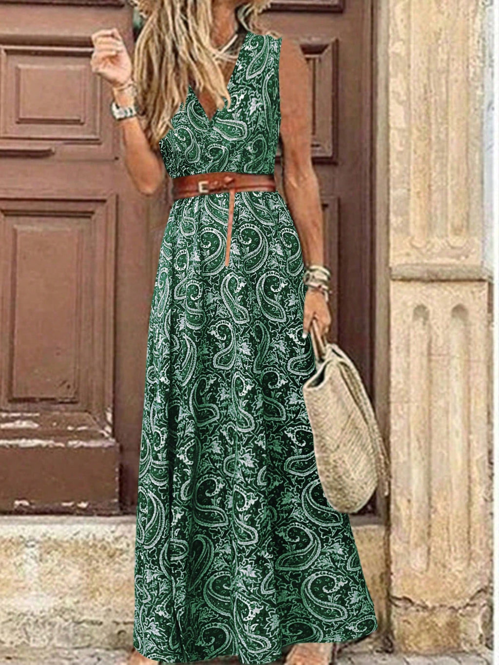 BELLAVOG Clasi V-Neck Sleeveless Paisley Print Dress Maxi Women Outfit