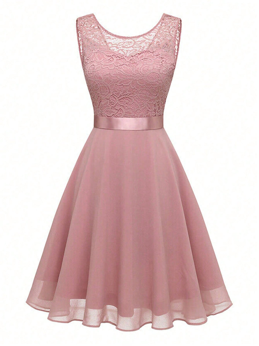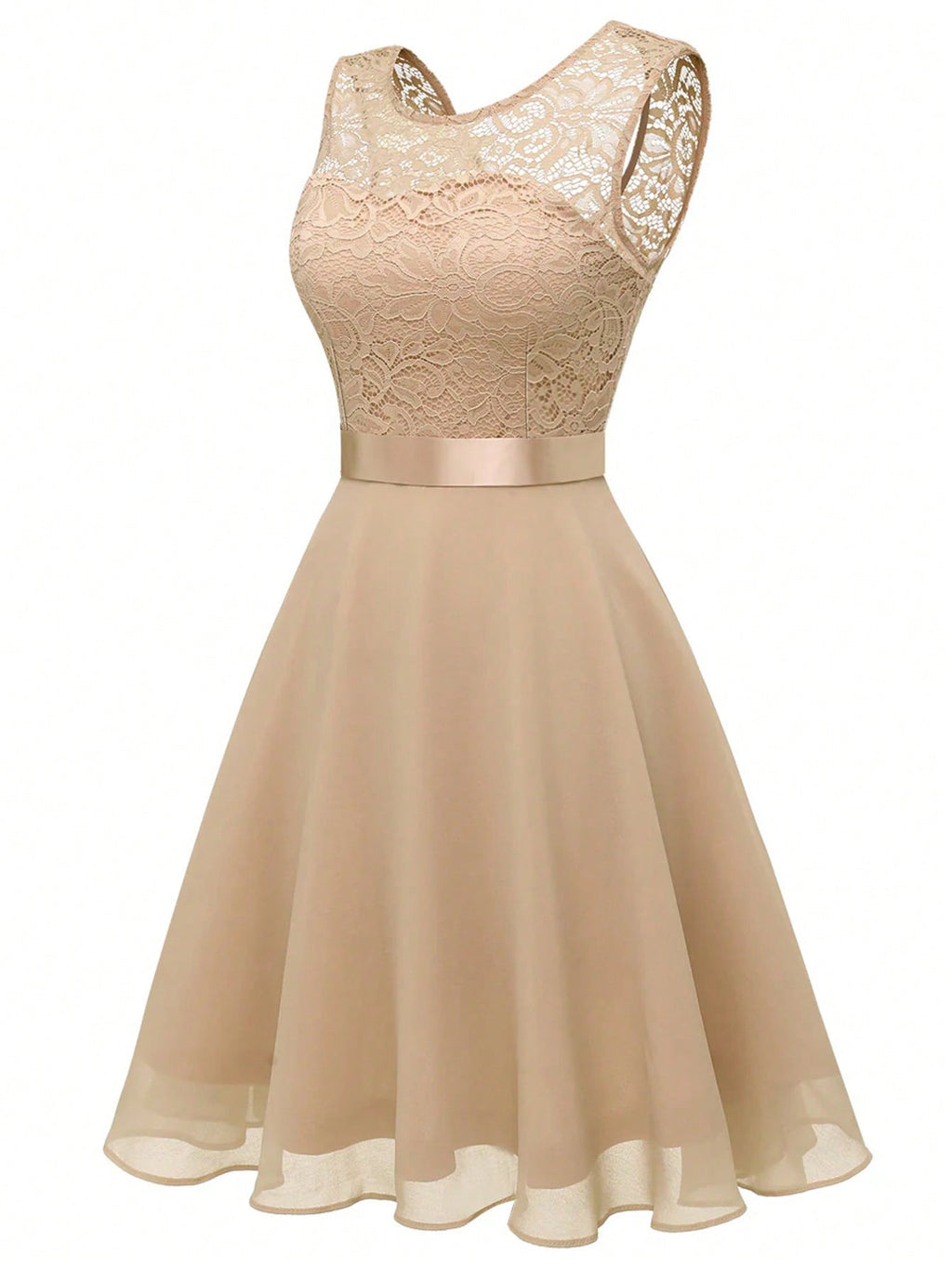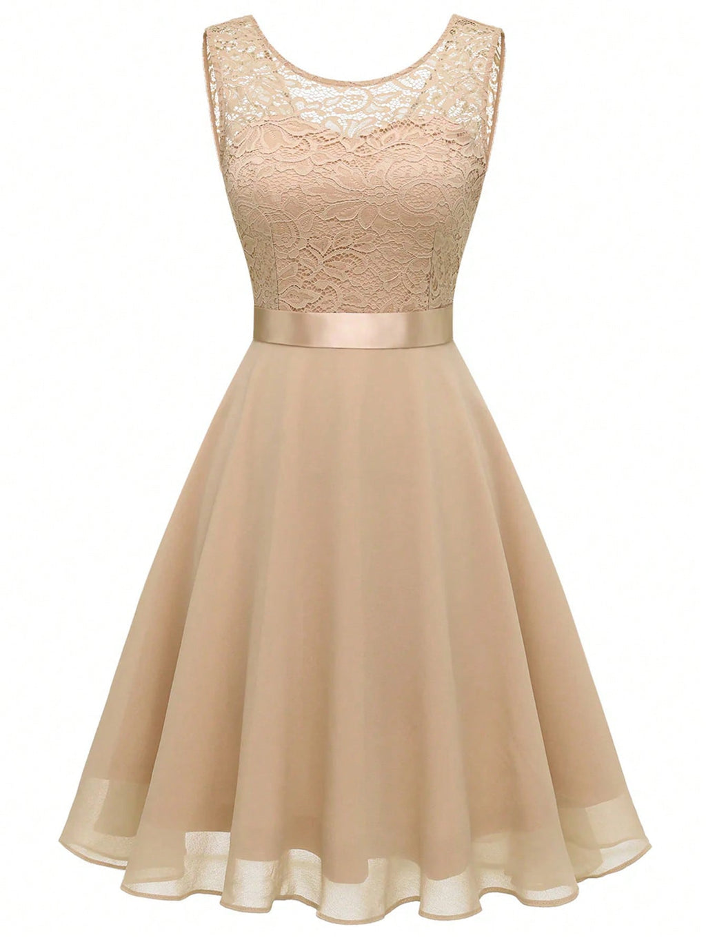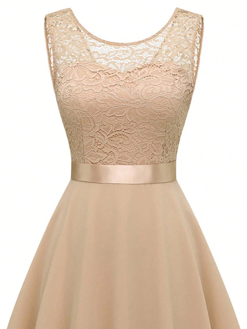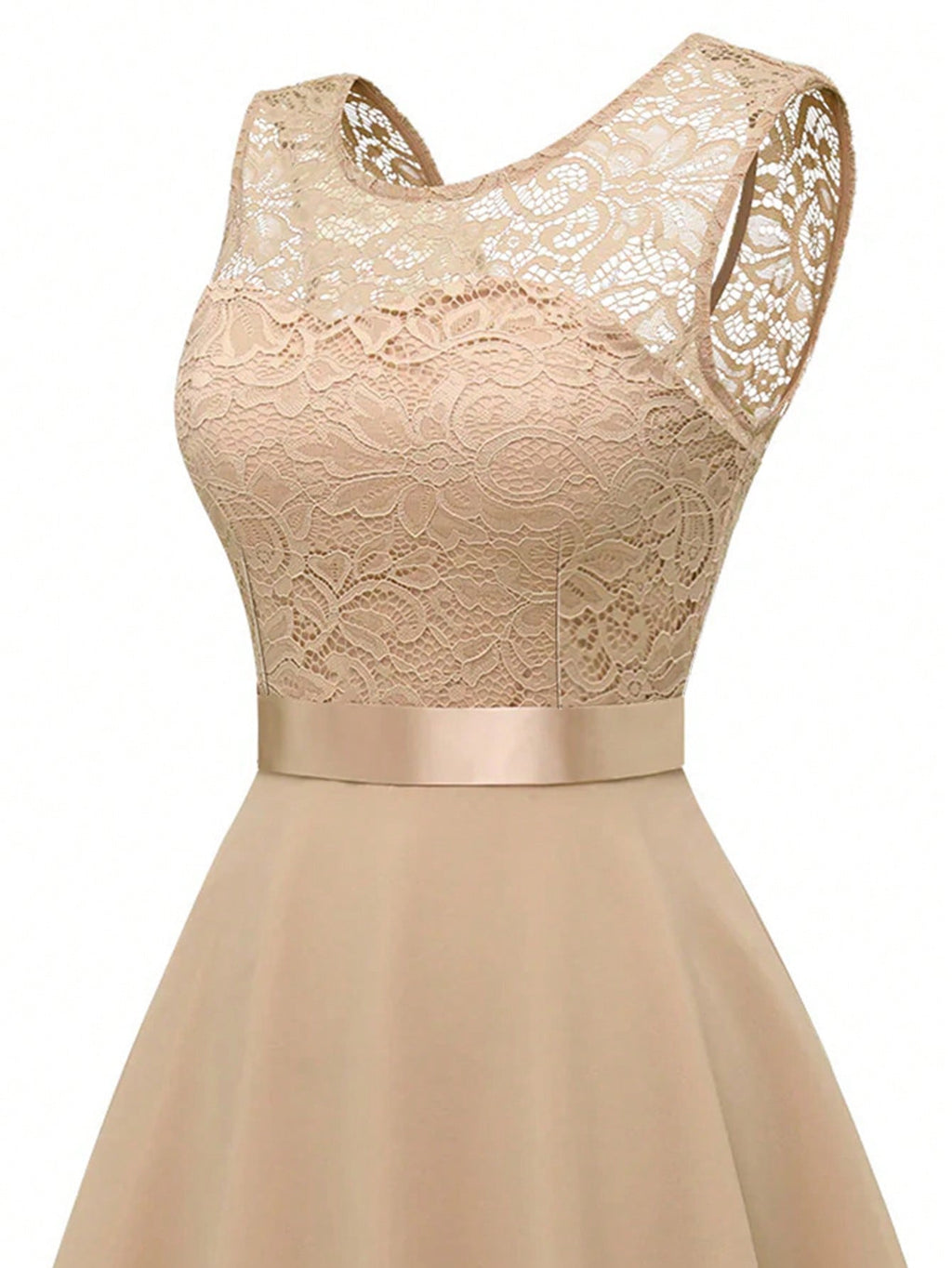 BELLAVOG Clasi Women Summer Sleeveless Champagne Lace Dress