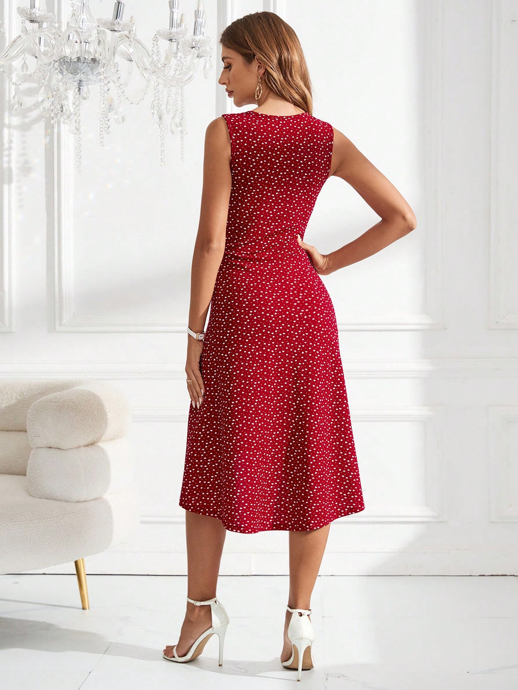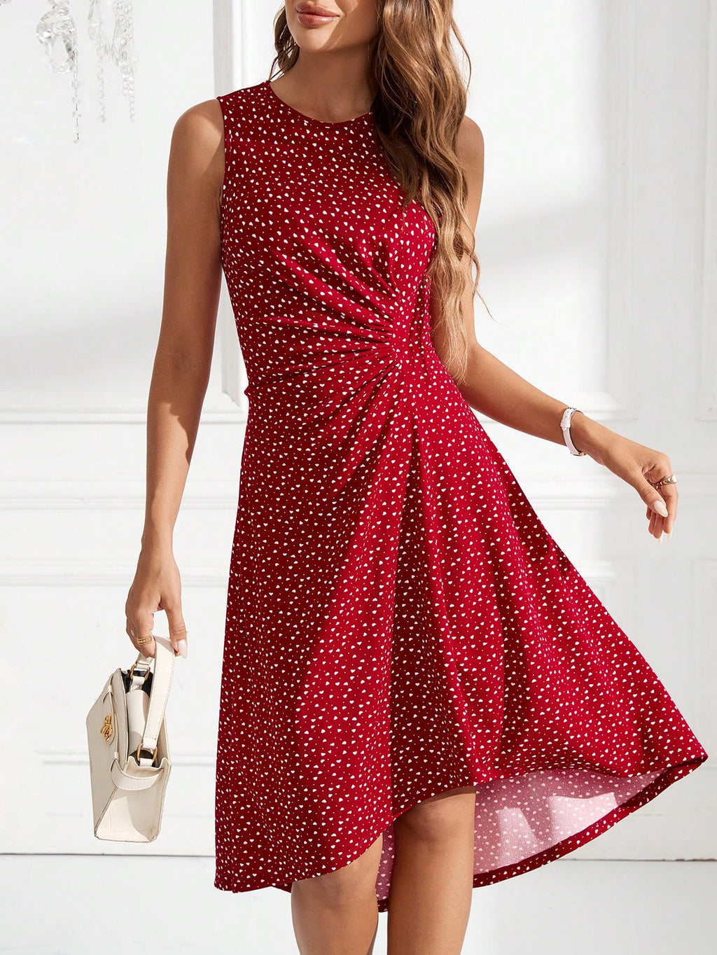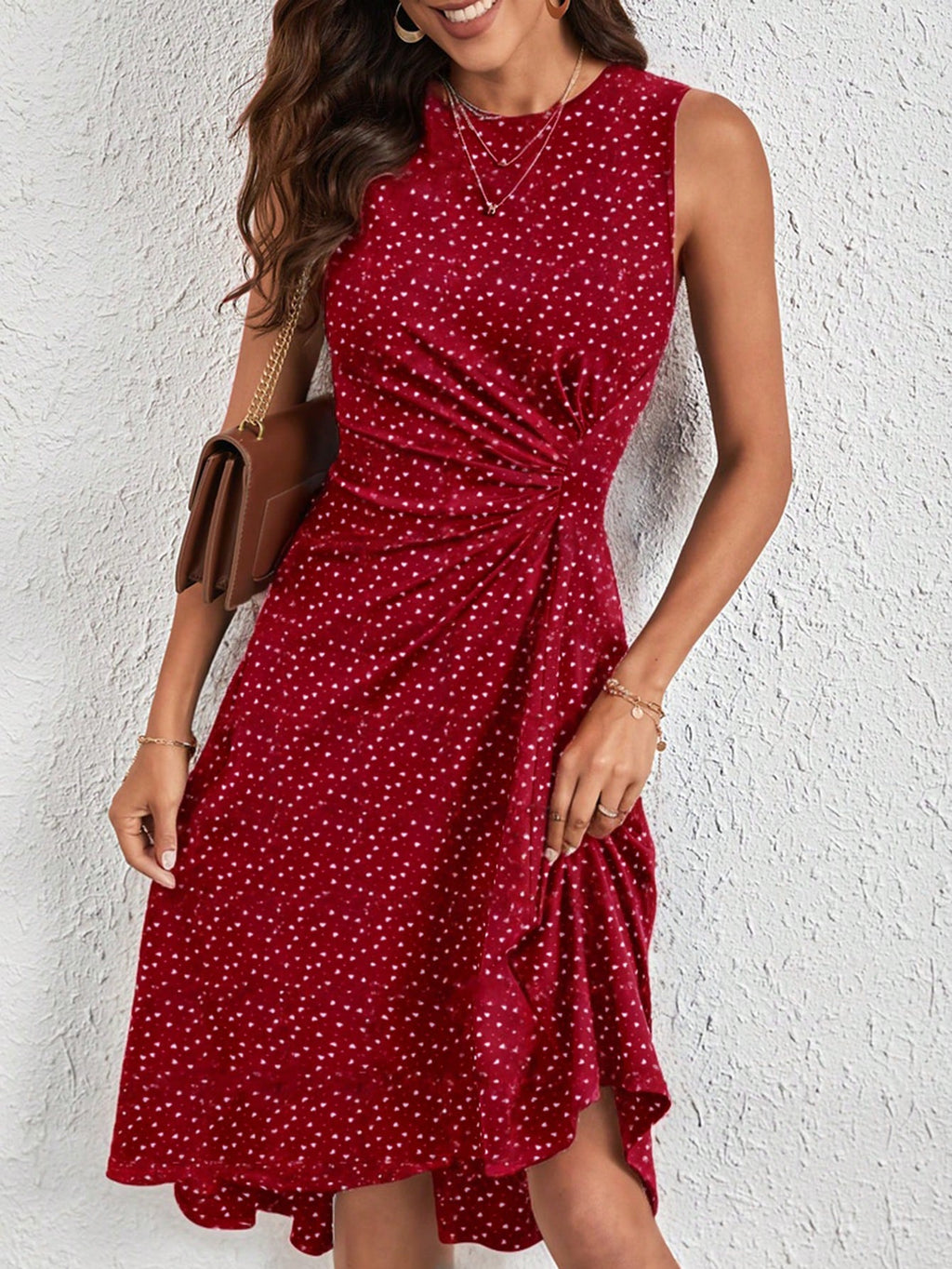 BELLAVOG Clasi Women's Casual Sleeveless Heart Polka Dot Print Ruched Waist Dress, Summer