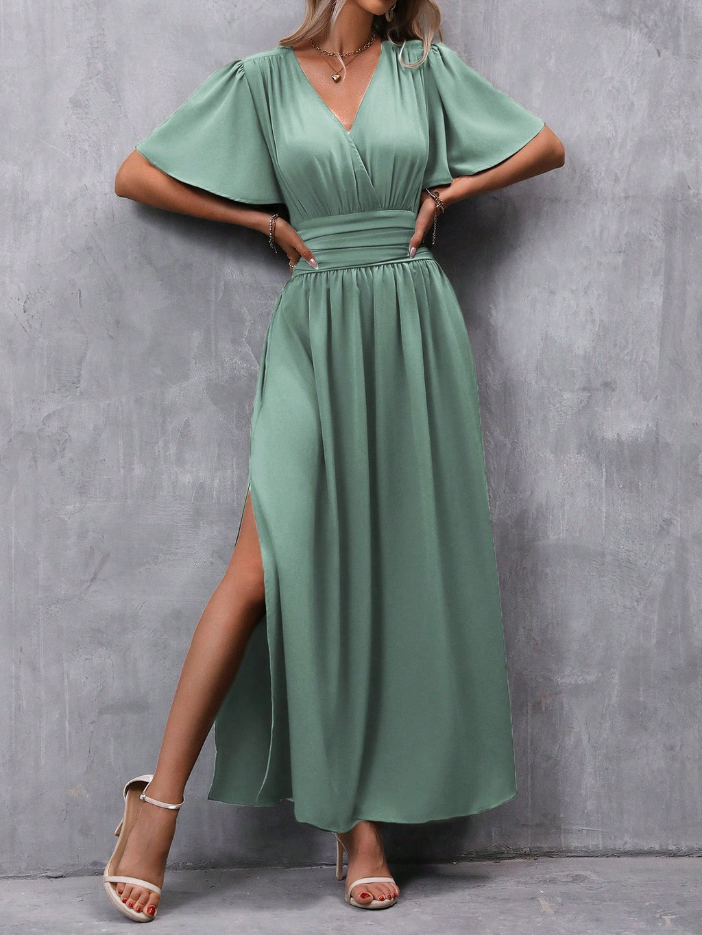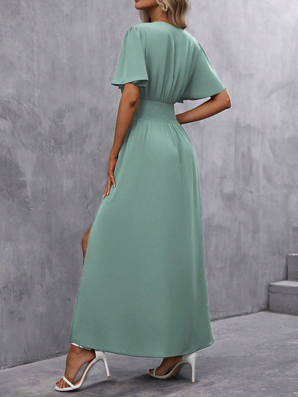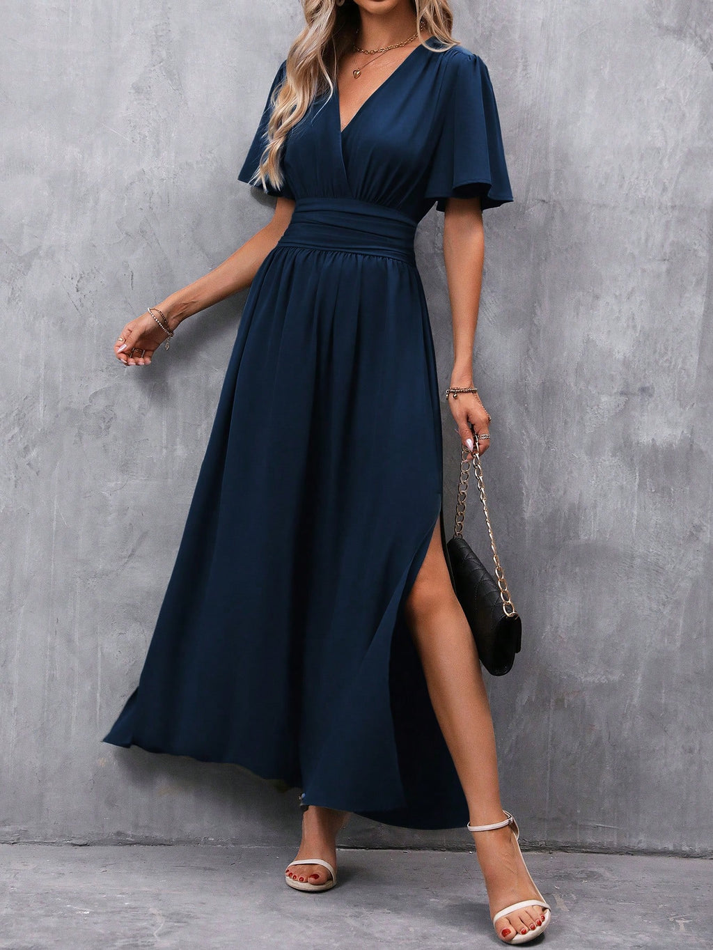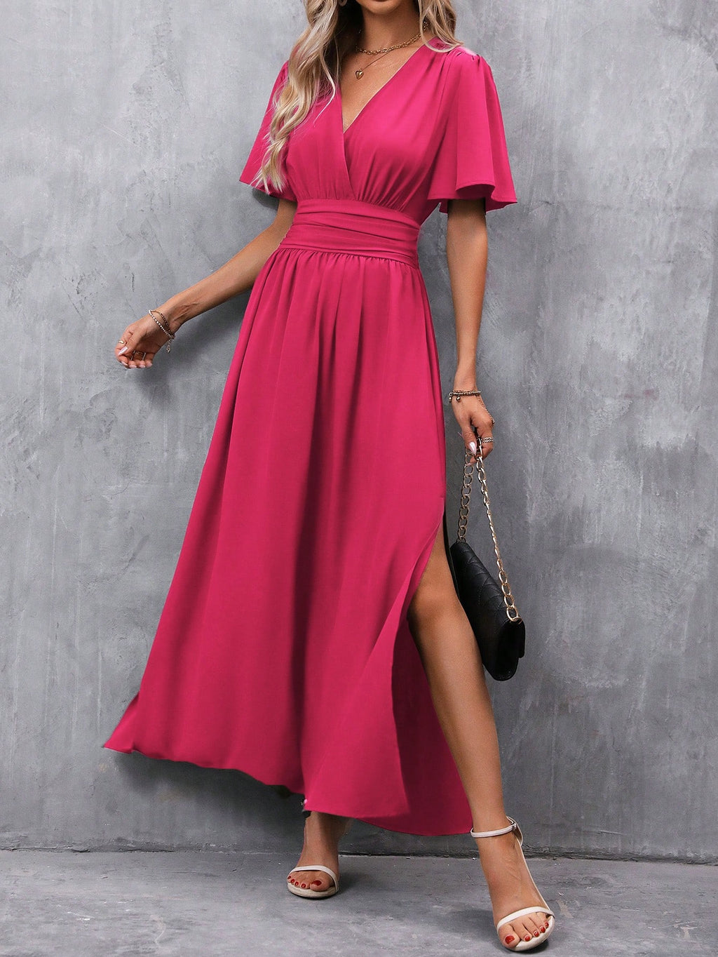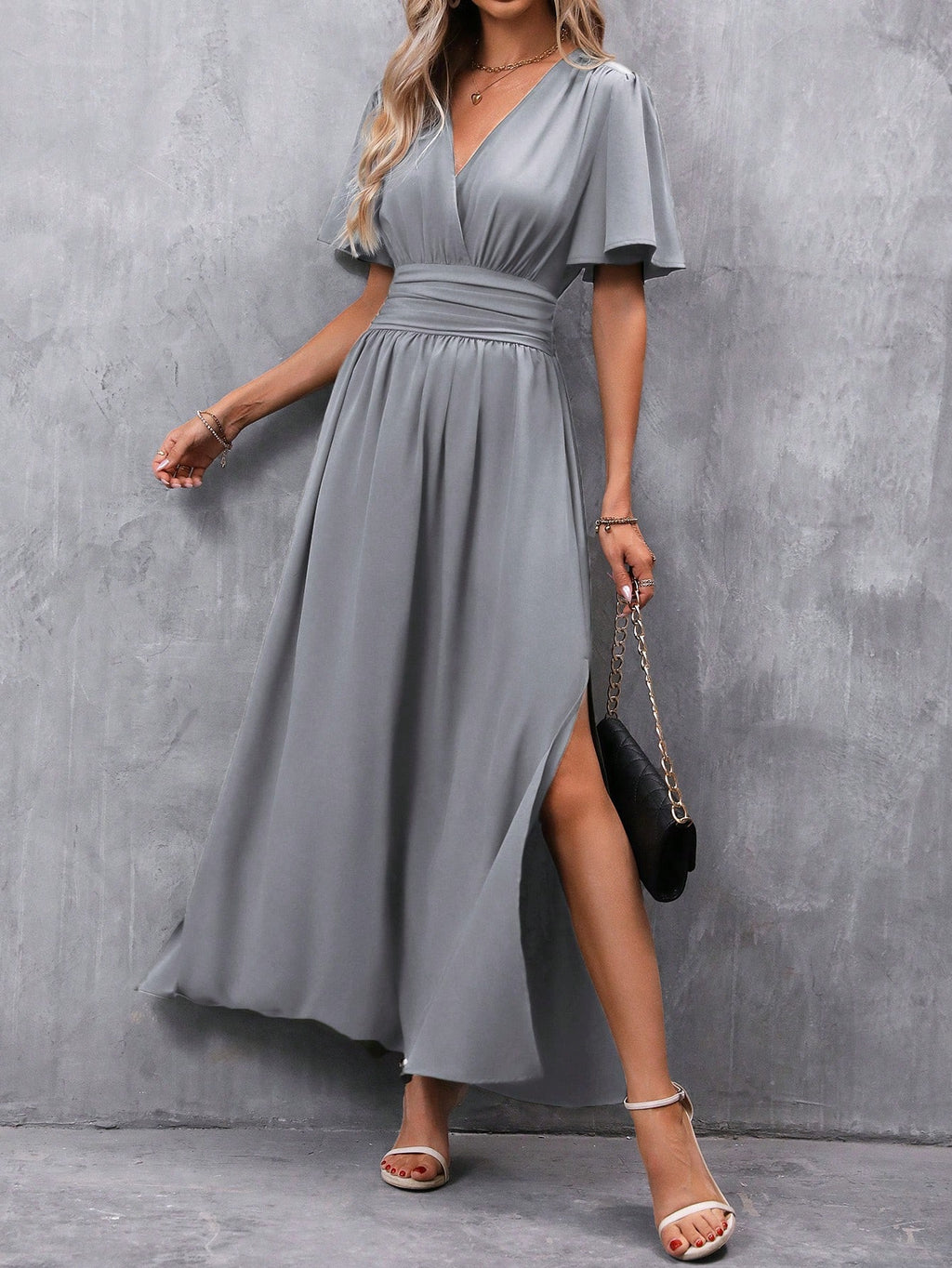 BELLAVOG Clasi Women's Solid Color V-Neck Ruffle Sleeve Short Dress Maxi Women Outfit